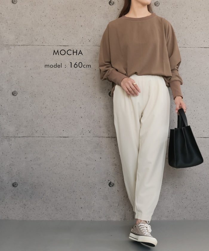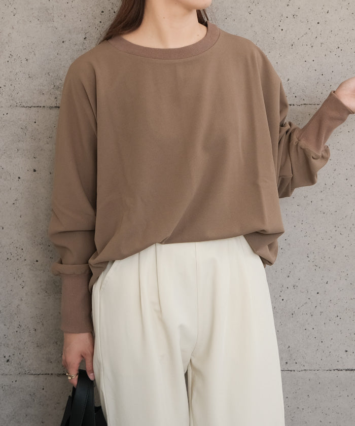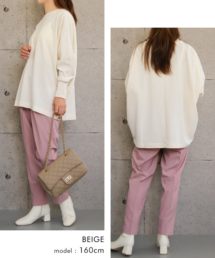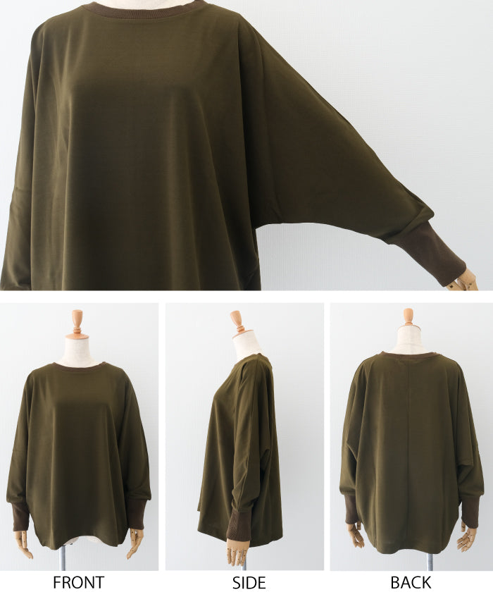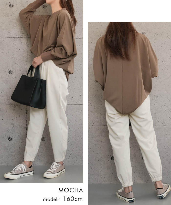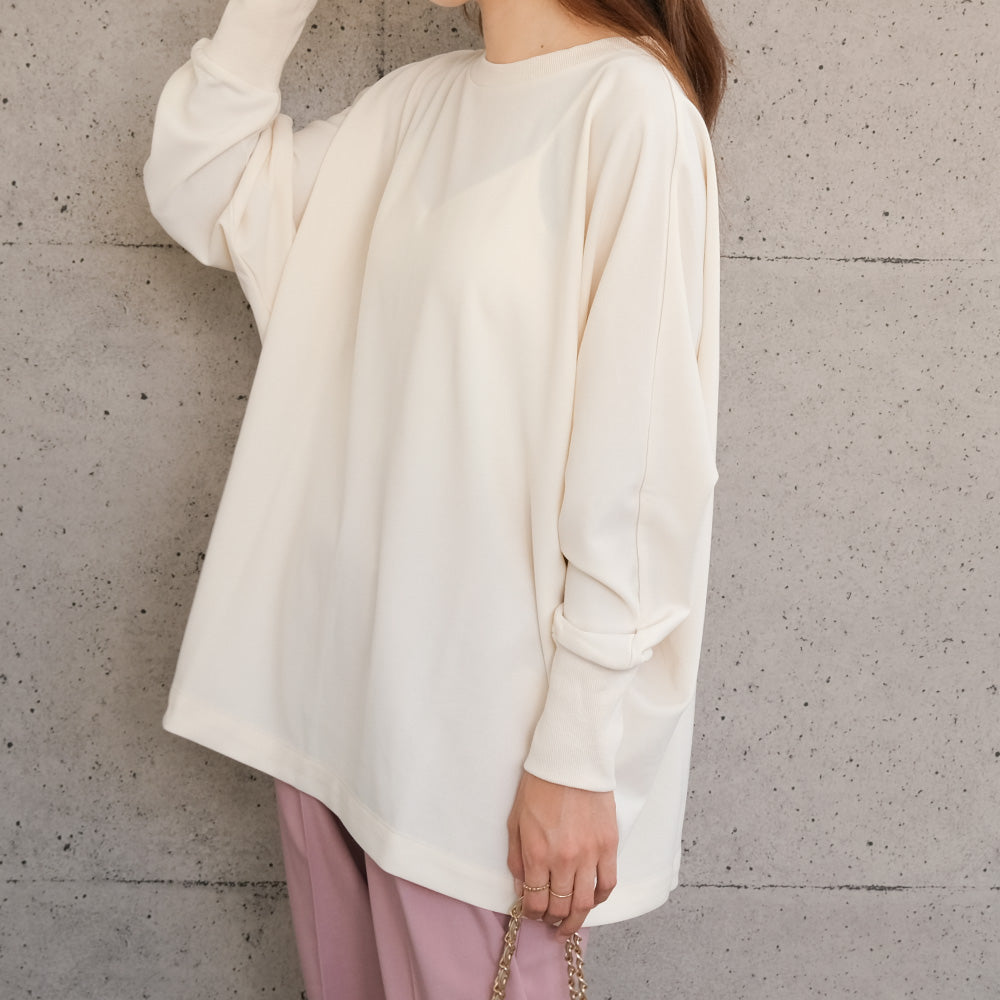 Dolan sleeve tops for women, spring, autumn, long sleeve, round neck, dolan sleeve, body cover, simple, loose, relaxed, slender appearance, slim look, style up, neat, feminine, elegant, pure, plus size, arm cover, casual