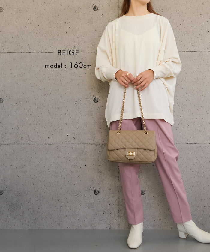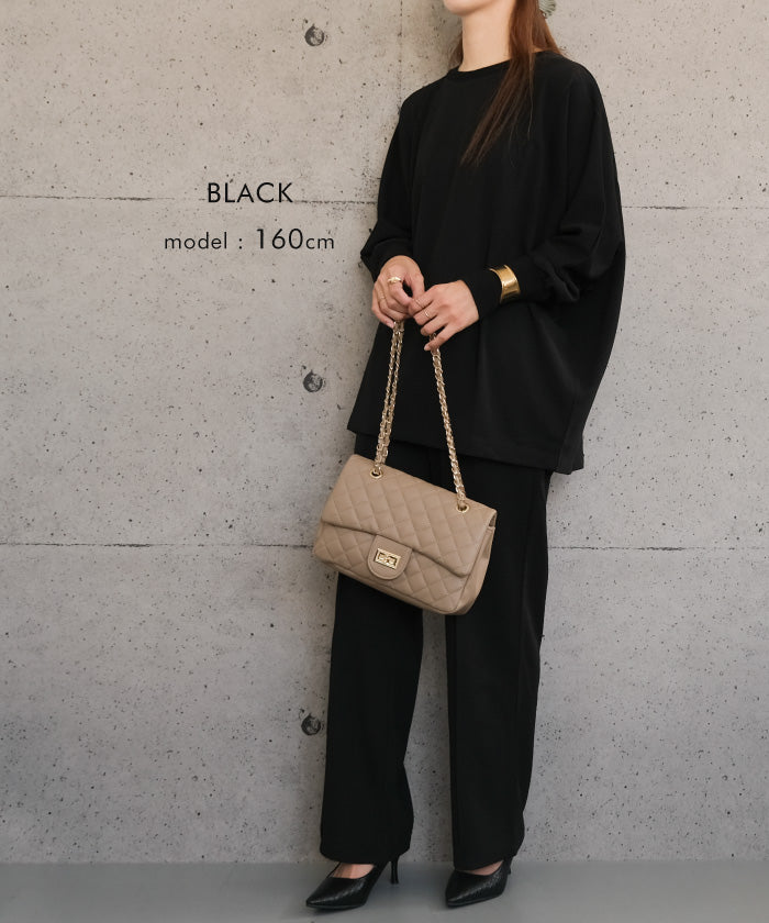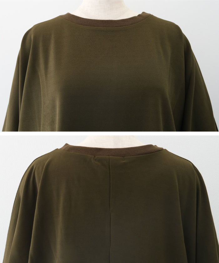 This piece is full of atmosphere that achieves a feminine look with a loose feel while covering the body shape!