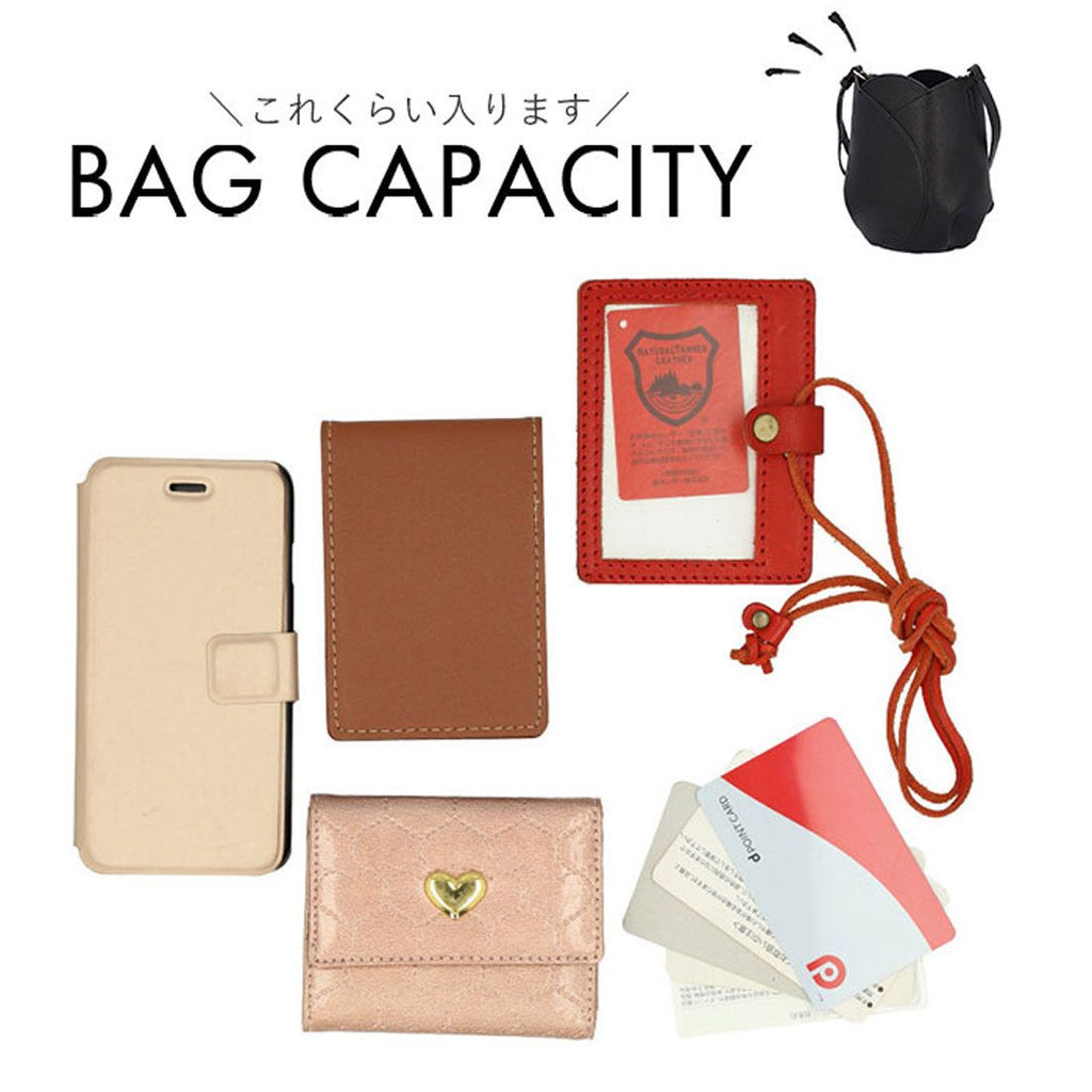 - The inside has a compact size that can hold small items necessary for going out, such as a folding wallet, handkerchief, and mini pouch.