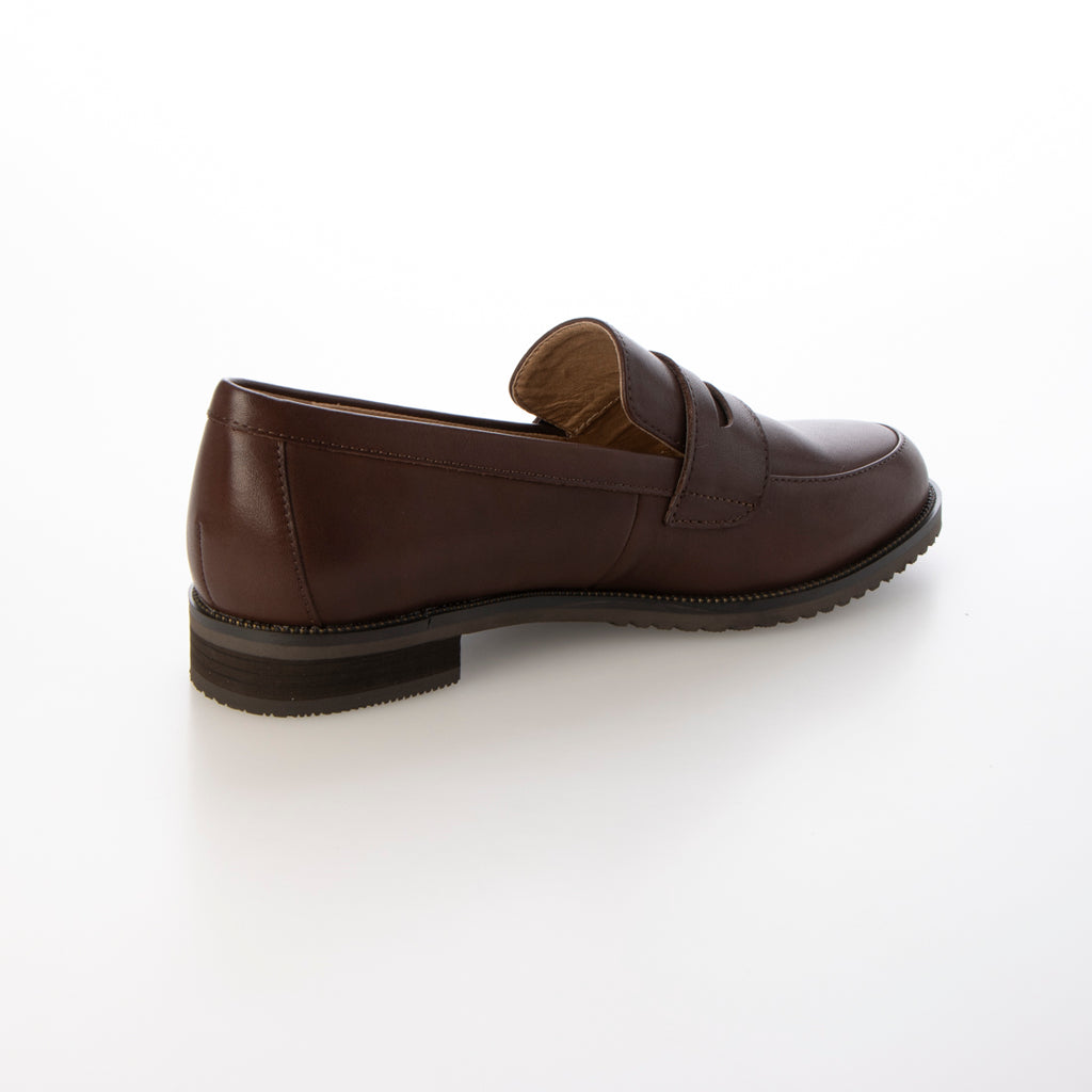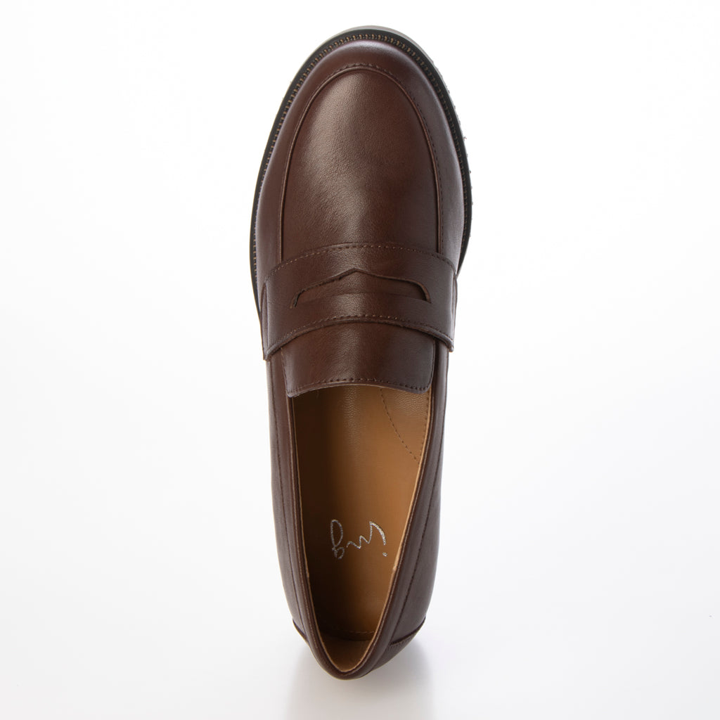 A coin loafer that has been improved to lighten the sole and wrap the foot more gently.