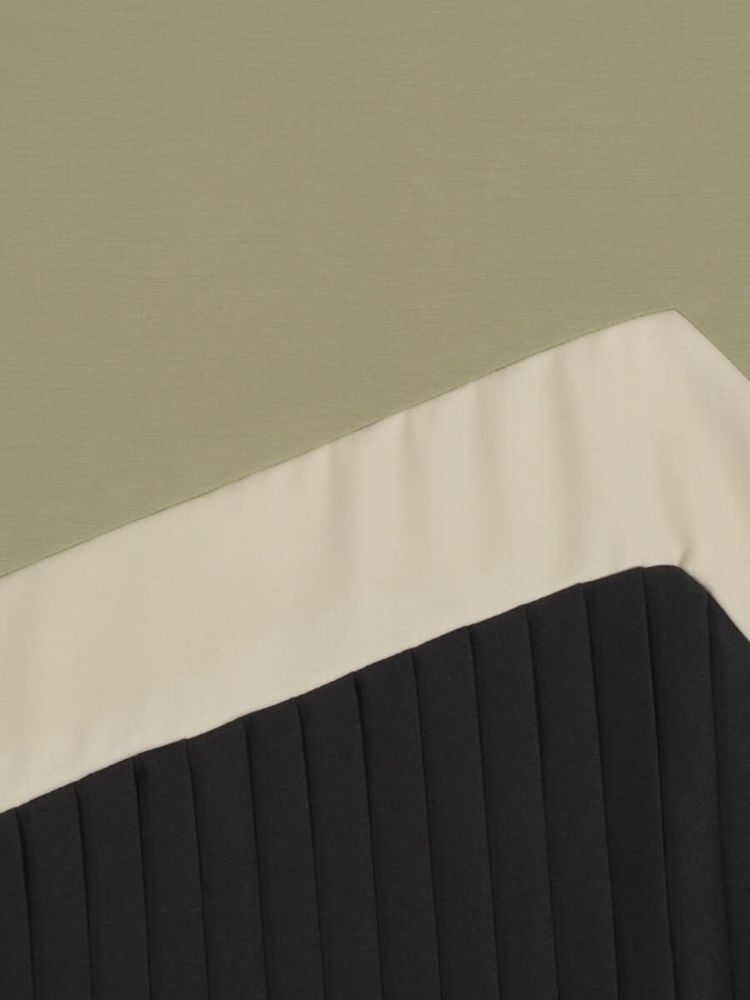 Material Material: Material Outer Material Rayon: 62%, Nylon: 31%, polyurethane: 7% Pleats part polyester: 96%, polyurethane: 4% Insert part polyester: 80%, rayon: 20% Transparency None Elasticity Outer Material part present Country of origin China Home laundry Not allowed Pockets None Lining None