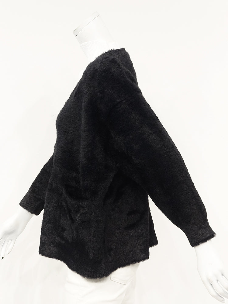 SPECCHIO Deep V-Neck Shaggy Knit Cardigan