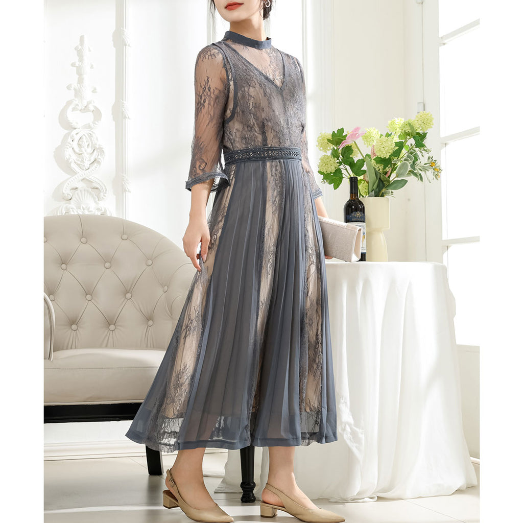 A dress one-piece that catches the eye with its delicate lace fabric.