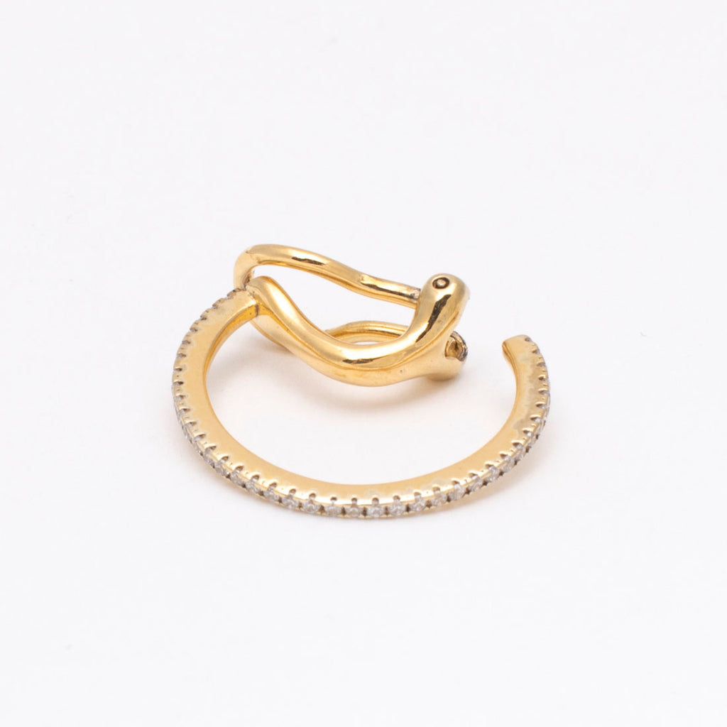 Earrings with a simple hoop shape adorned with sparkling stones.