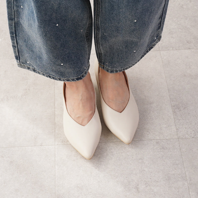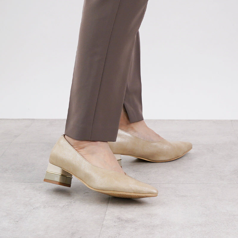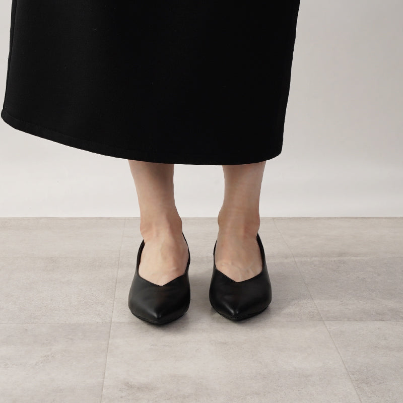 V-cut bicolor heel pumps / 4cm heel
