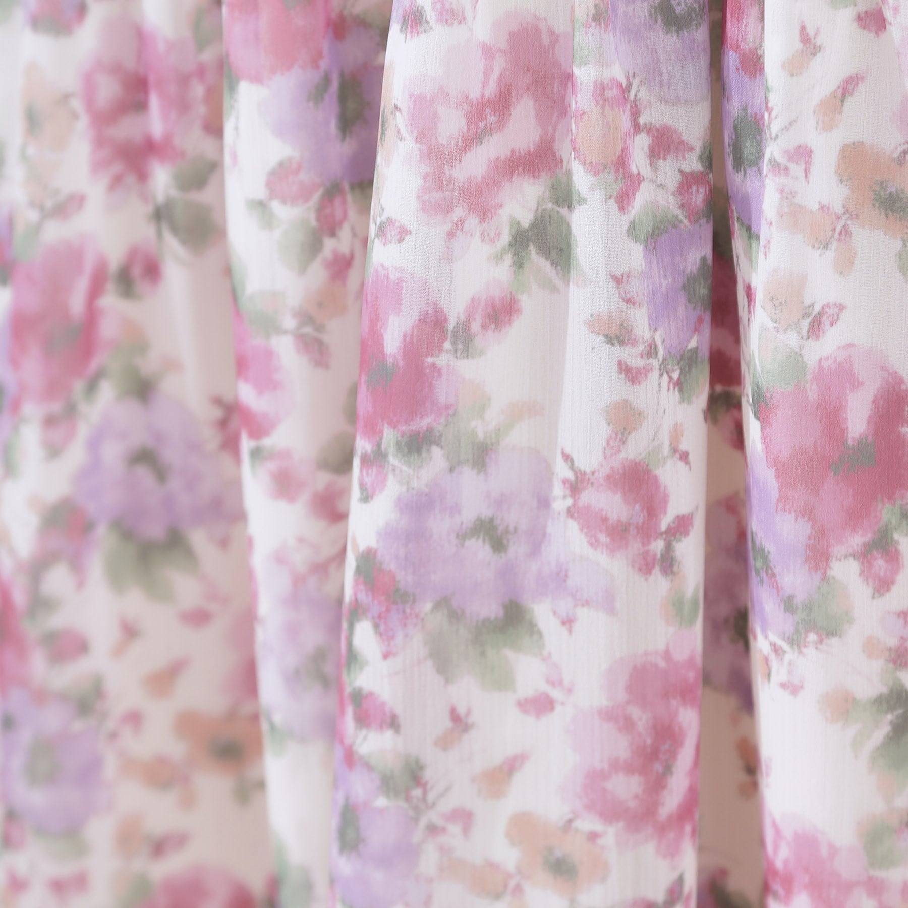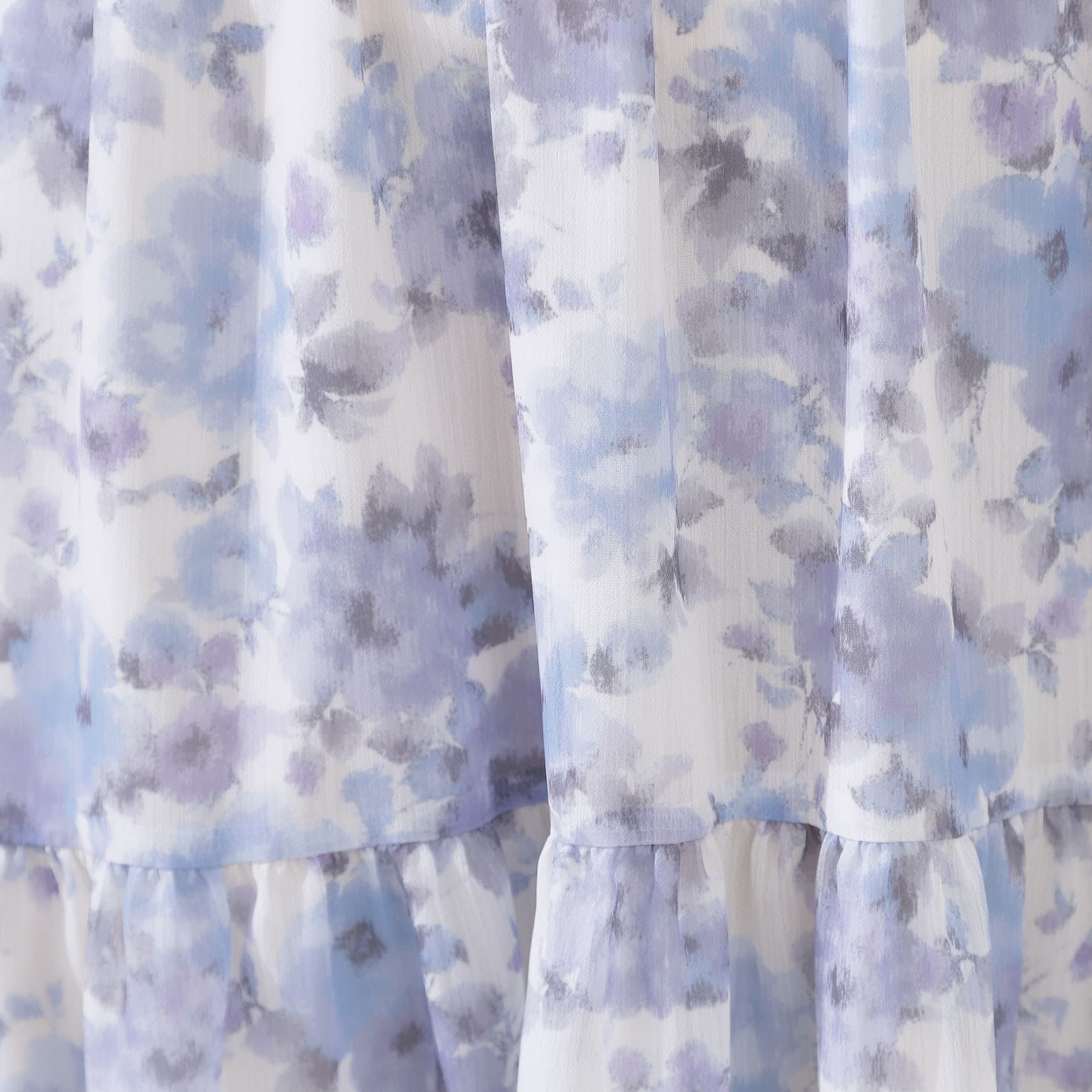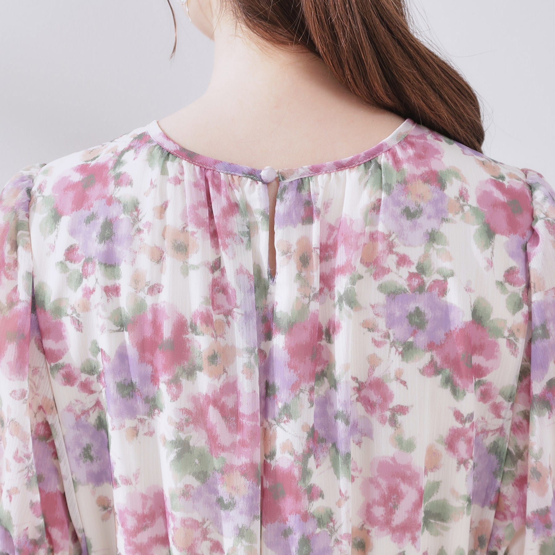 The delicate texture with a faded print and the pico stitching detail at the cuffs create an impression of adult femininity.