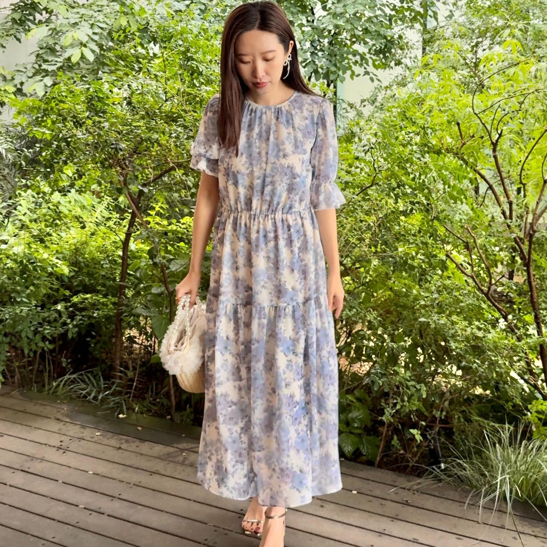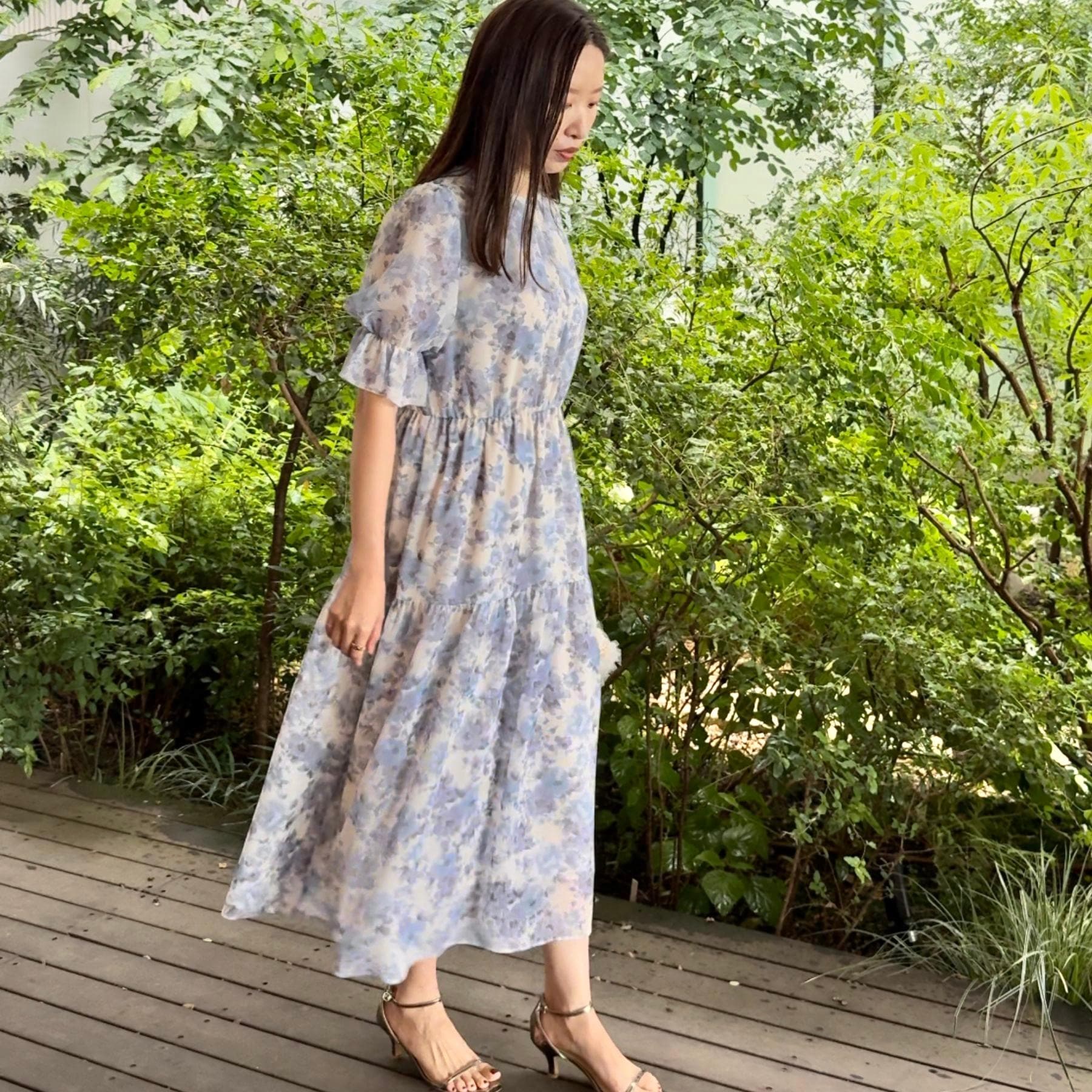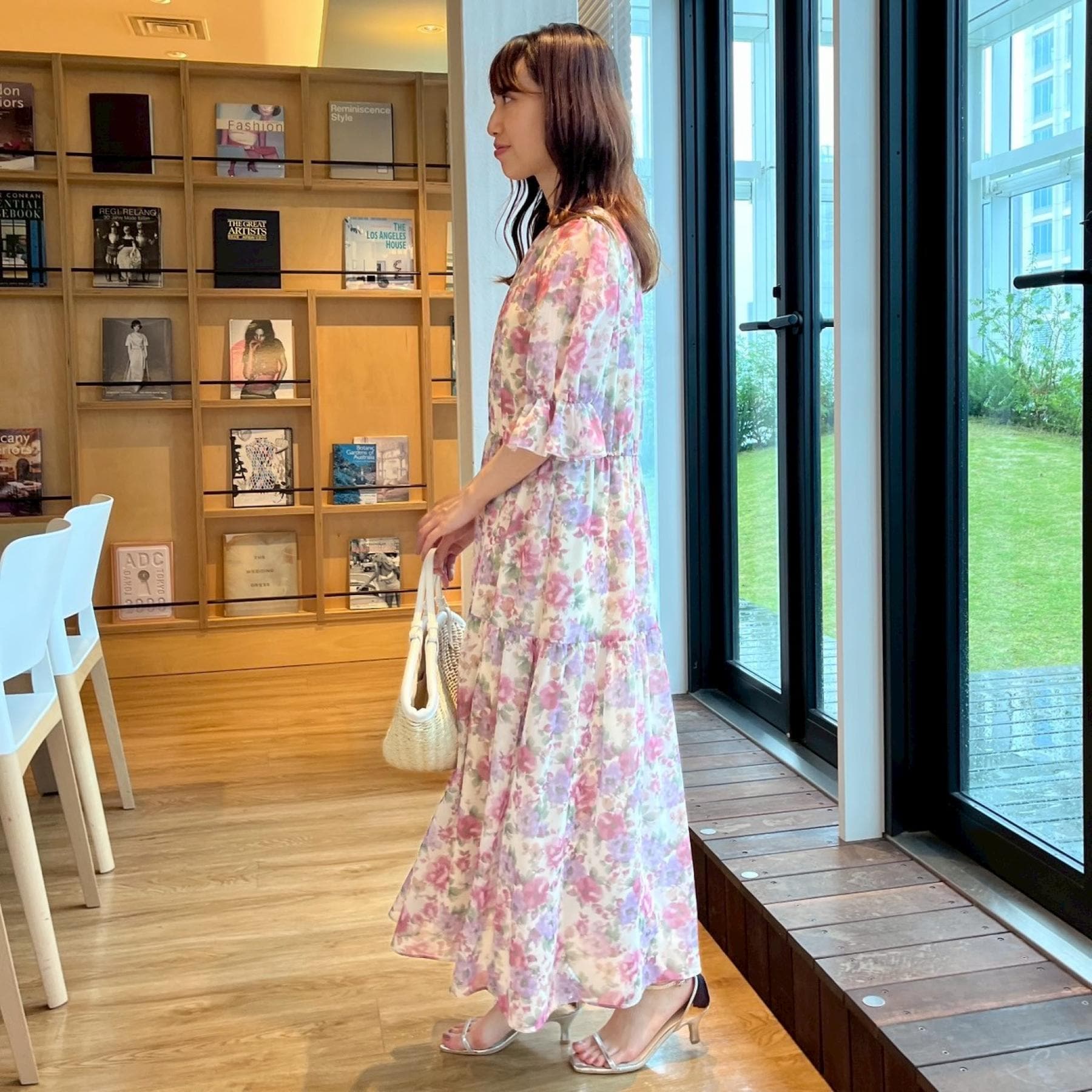 - Saori (153 cm) has a sense of security with 5-minute sleeves, and it's a dress that stands out on its own◎ It's also a nice point that it's cool and has an elastic waist◎ It gives an elegant impression!