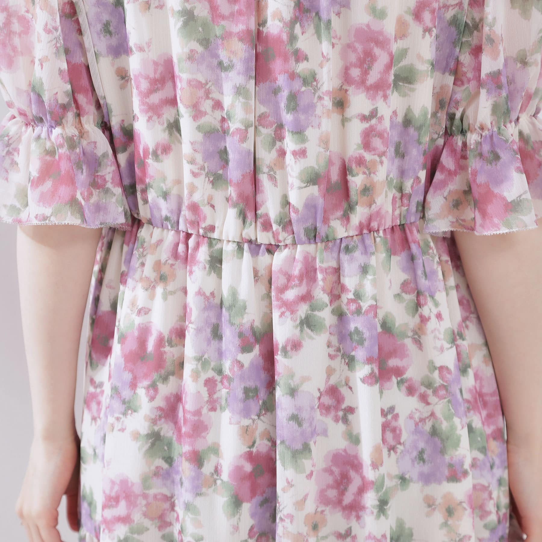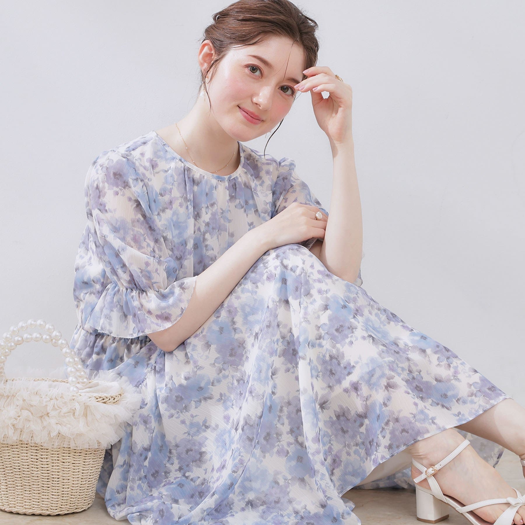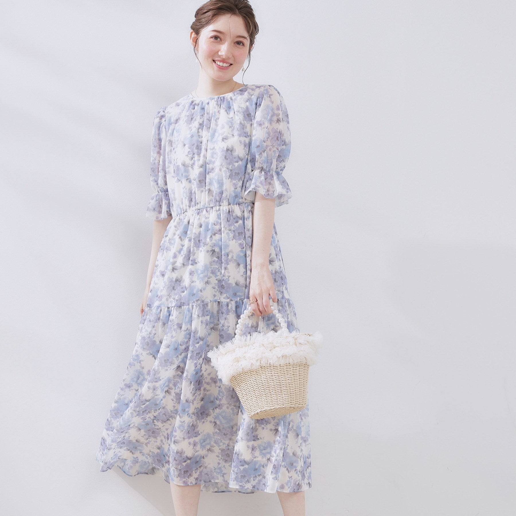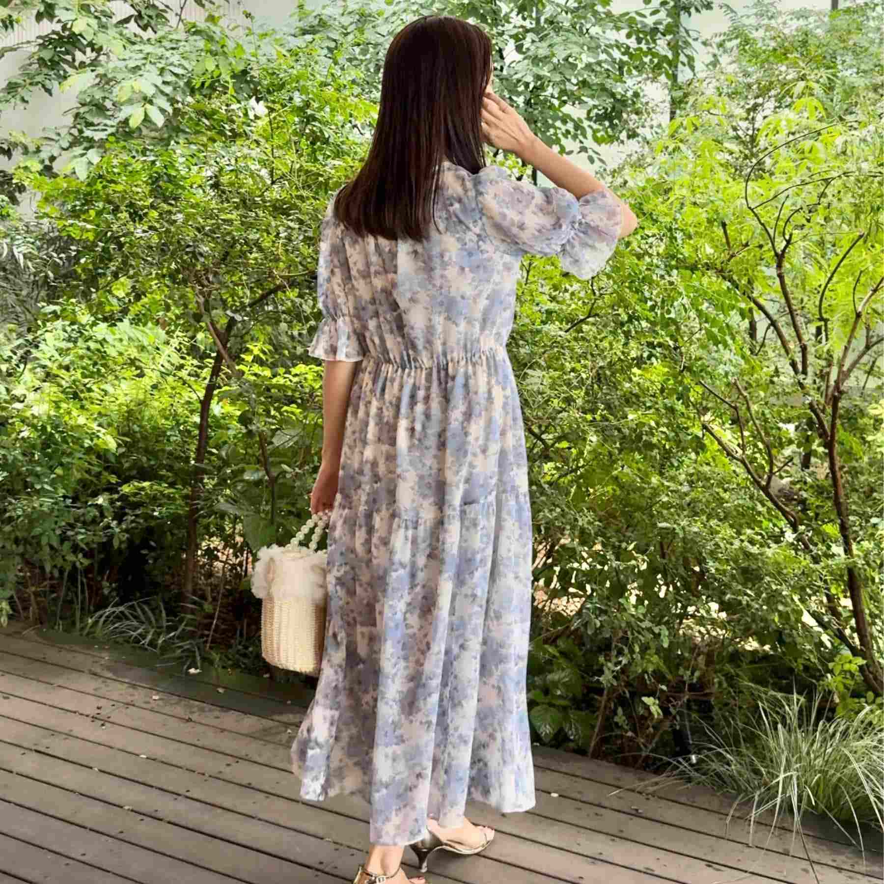 - Saori (153 cm) has a sense of security with 5-minute sleeves, and it's a dress that stands out on its own◎ It's also a nice point that it's cool and has an elastic waist◎ It gives an elegant impression!