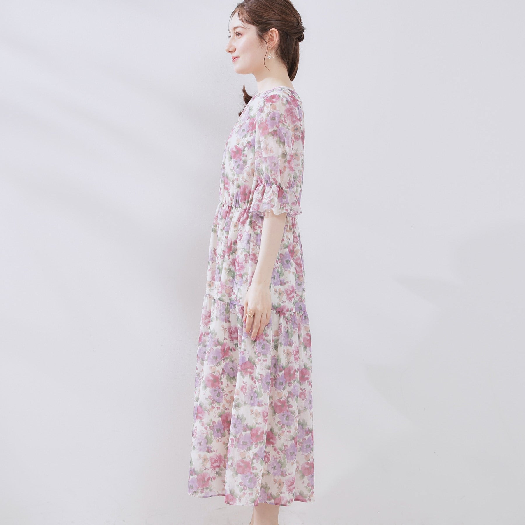 The tiered switching of the skirt part has a subtle trendy feel, creating a three-dimensional silhouette.