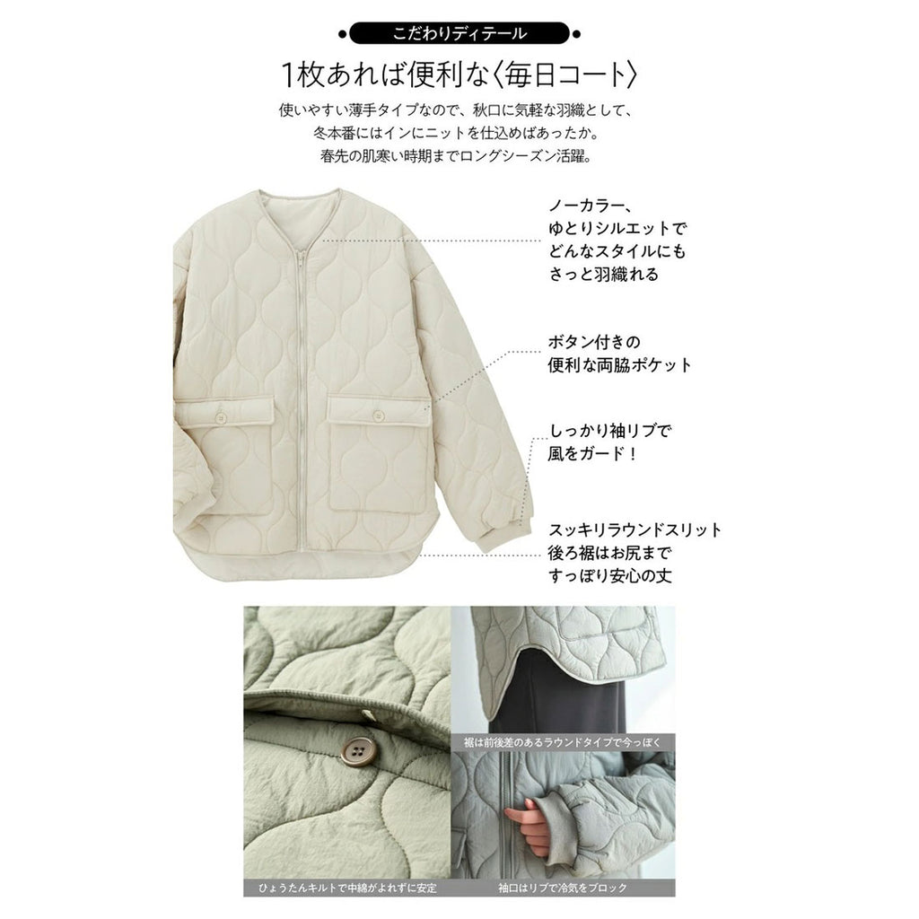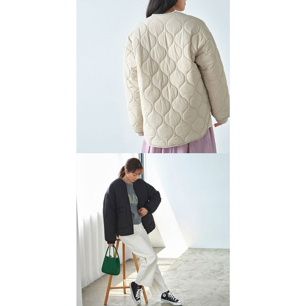 Collarless Gourd Quilted Coat