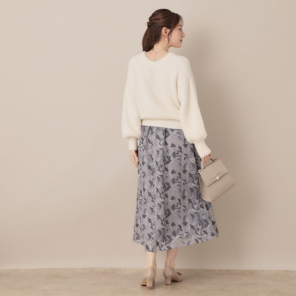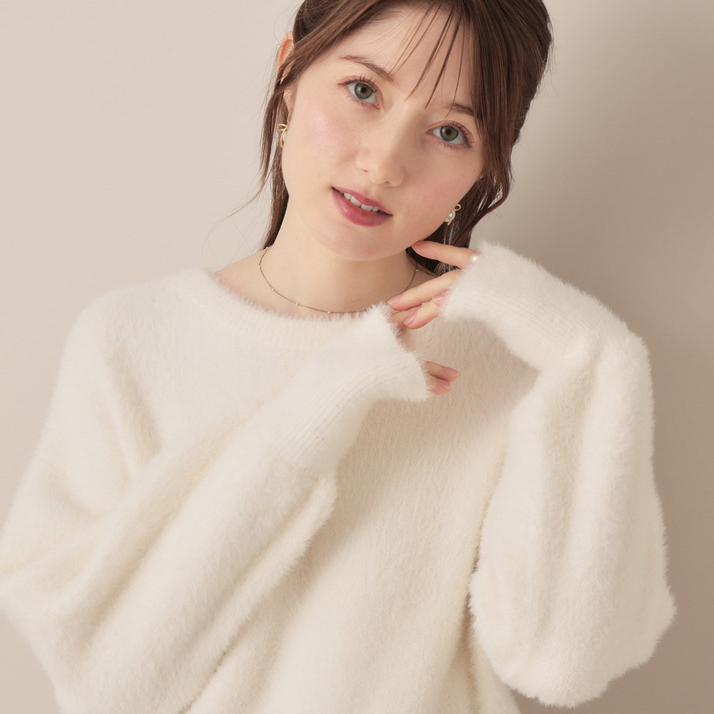 A feather knit top that can be worn in two ways, front and back