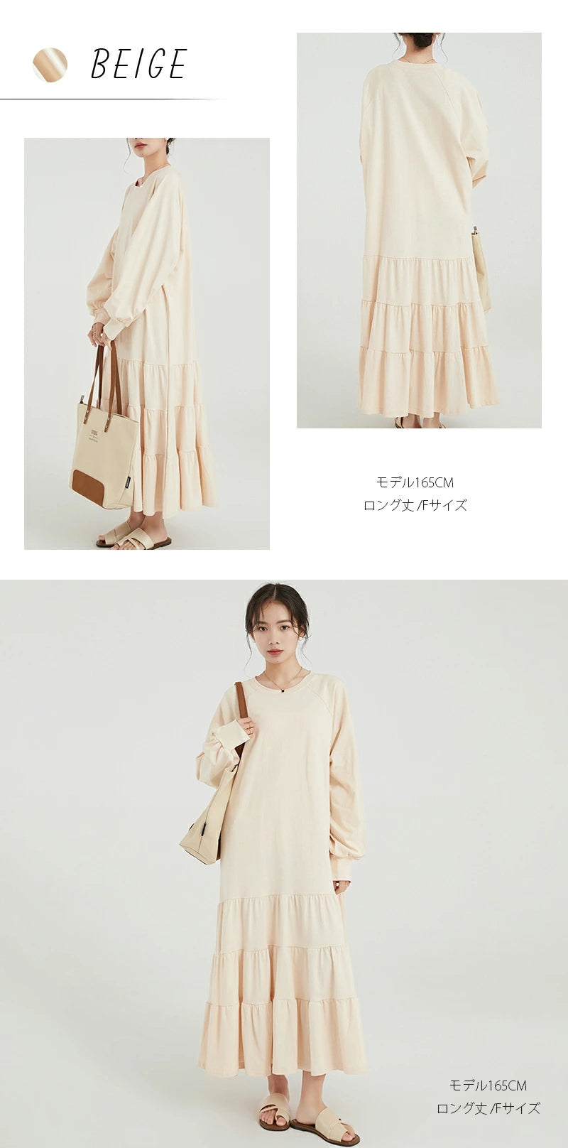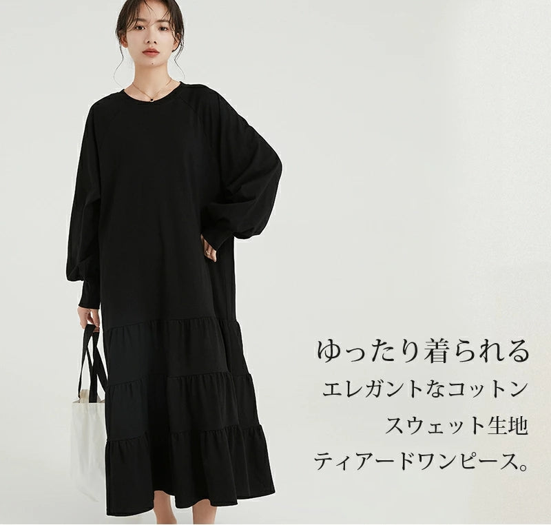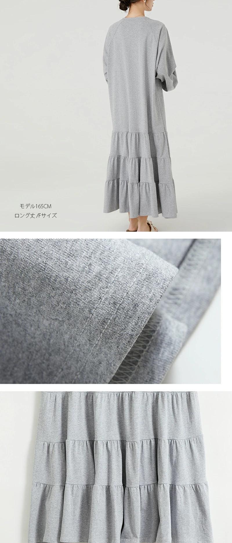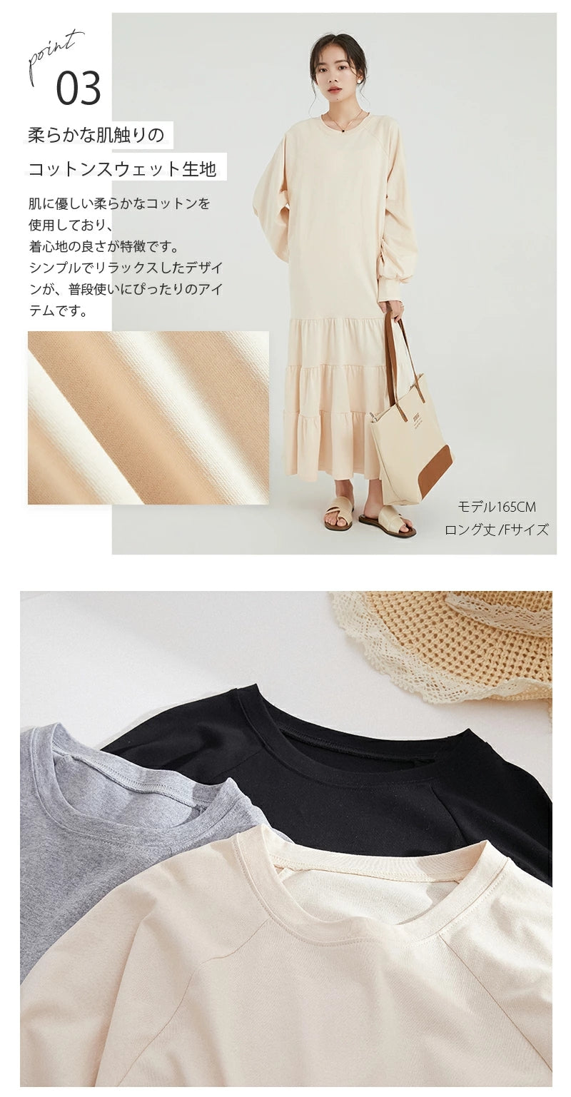 Airose Mirage Women's Dress Sweat Cotton 100% Loose Fit Body Cover Long Length Volume Sleeves Long Dress Sweat Trainer Thin Women's Long Dress Maxi