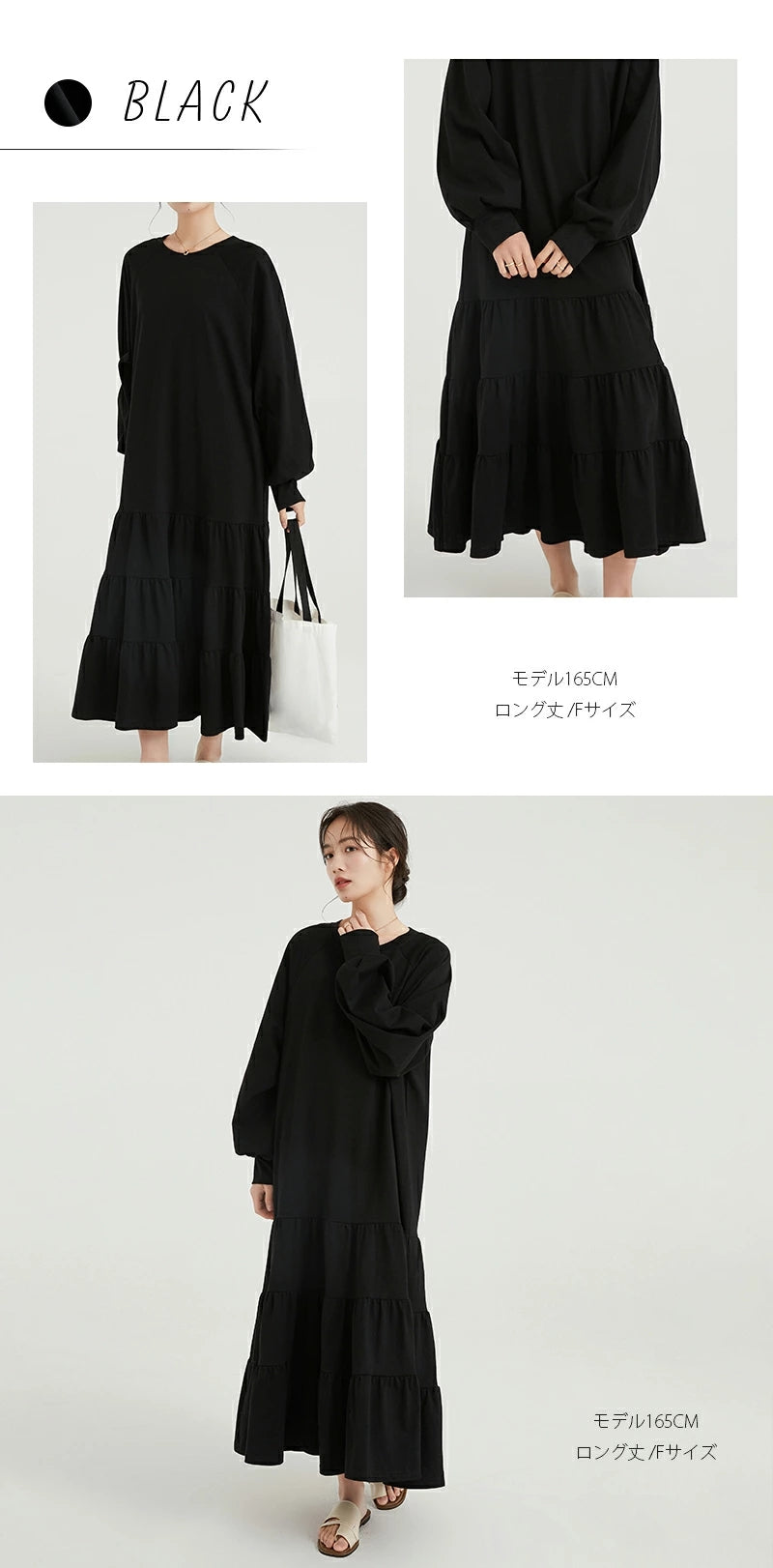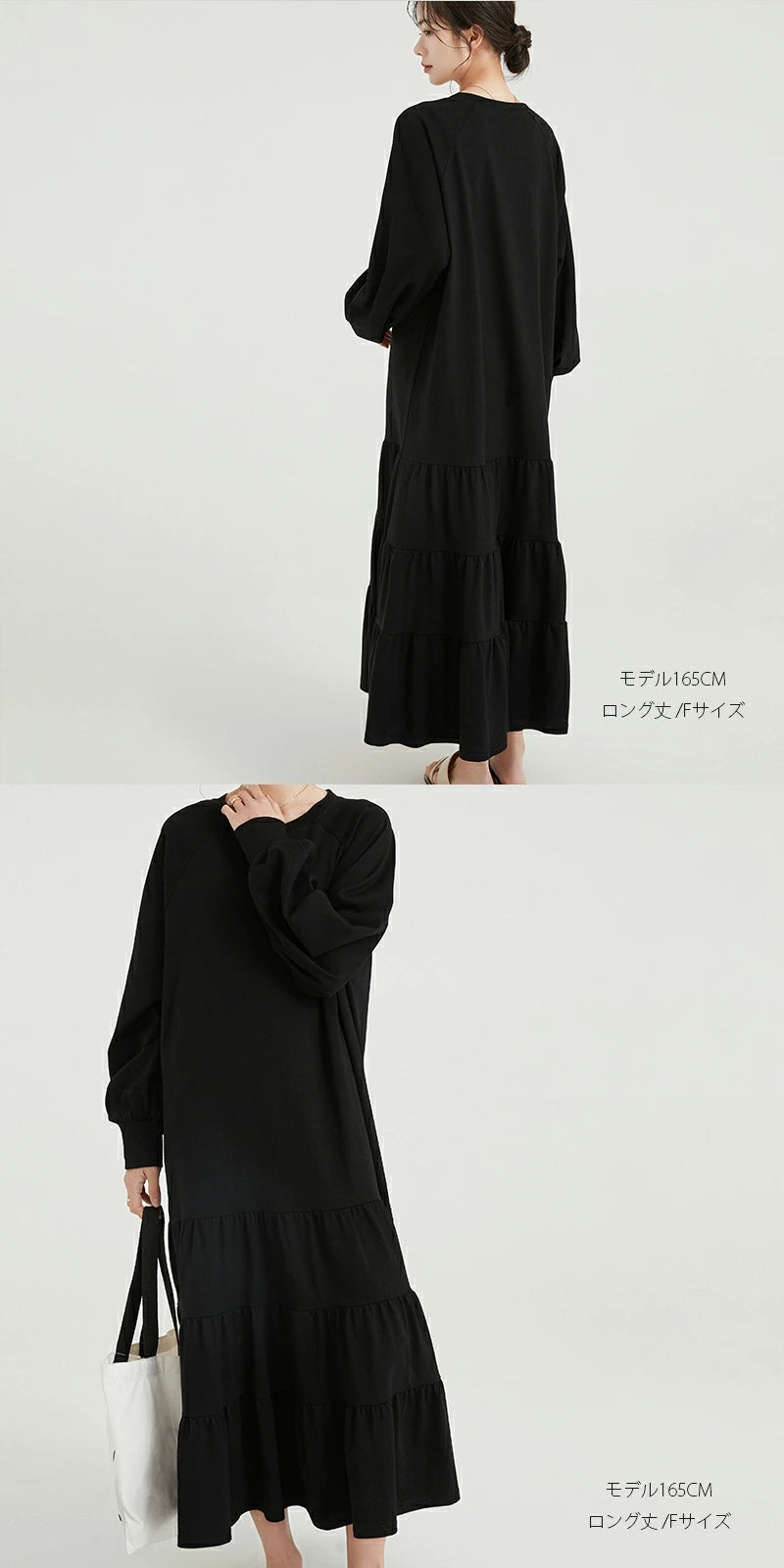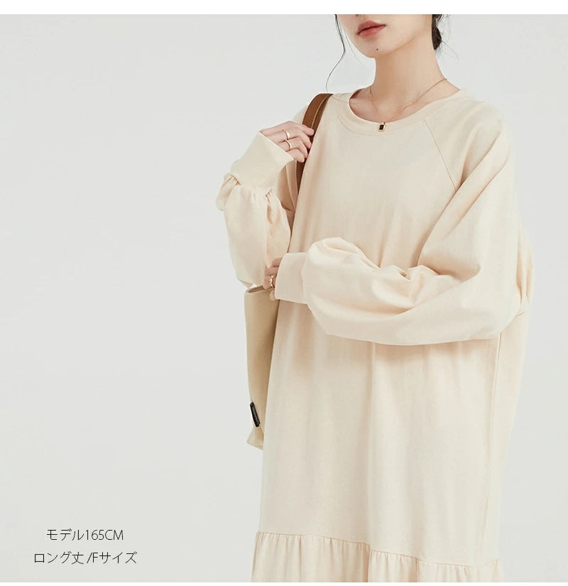 Airose Mirage Women's Dress Sweat Cotton 100% Loose Fit Body Cover Long Length Volume Sleeves Long Dress Sweat Trainer Thin Women's Long Dress Maxi
