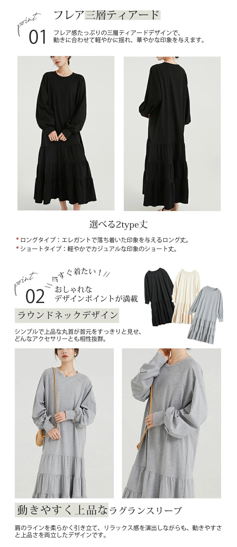 \Selectable 2 types of length! Flare three-layer tiered dress/