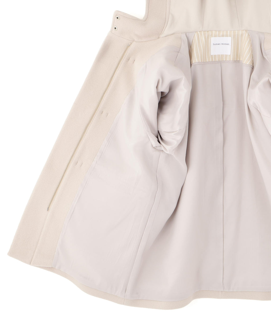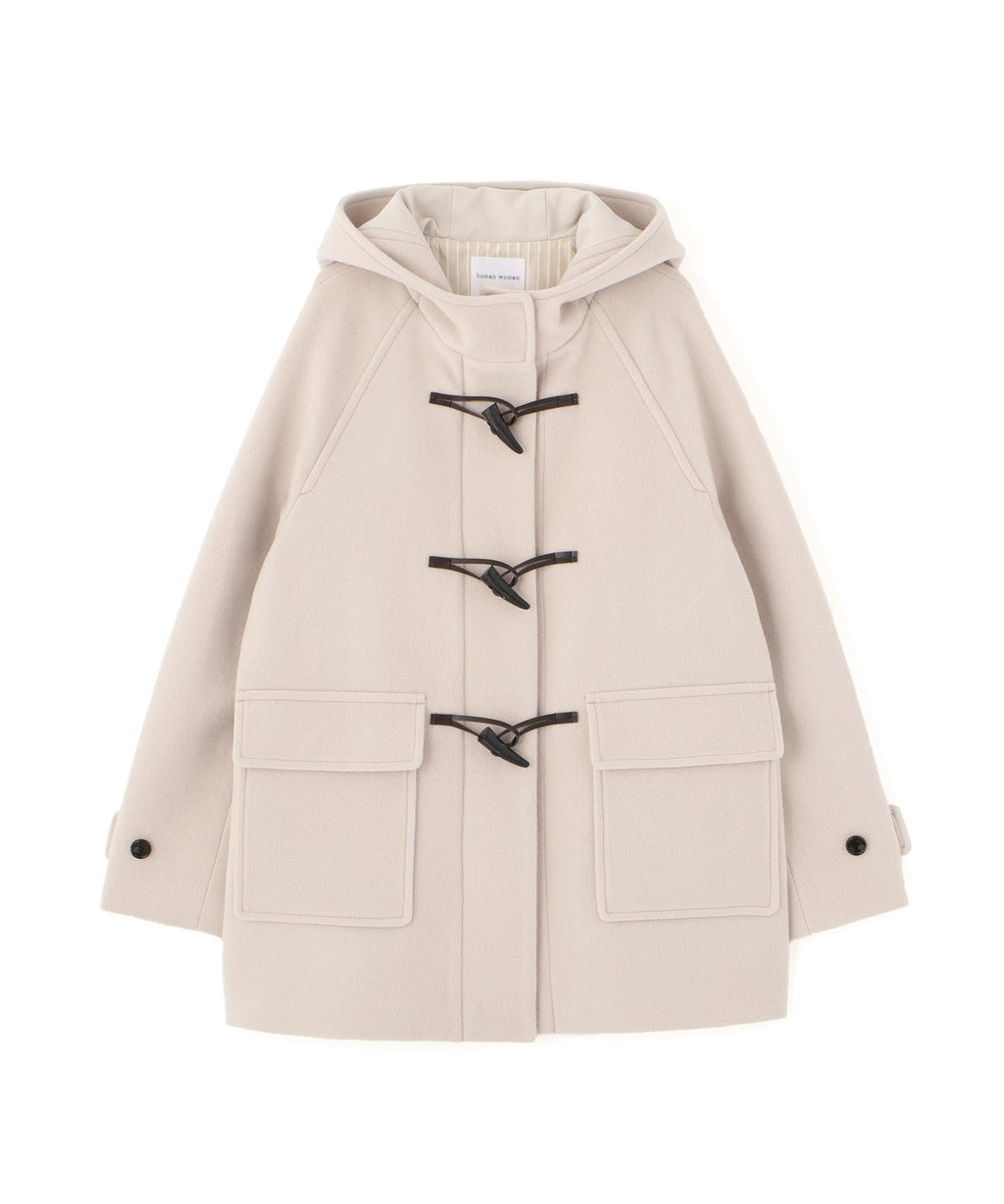 This is a midi-length duffle coat that is easy to coordinate. It emphasizes lightness and is an excellent coat that does not cause fatigue. The dark brown toggle adds a sense of weight and a mature impression. A traditional style that does not follow trends is completed.