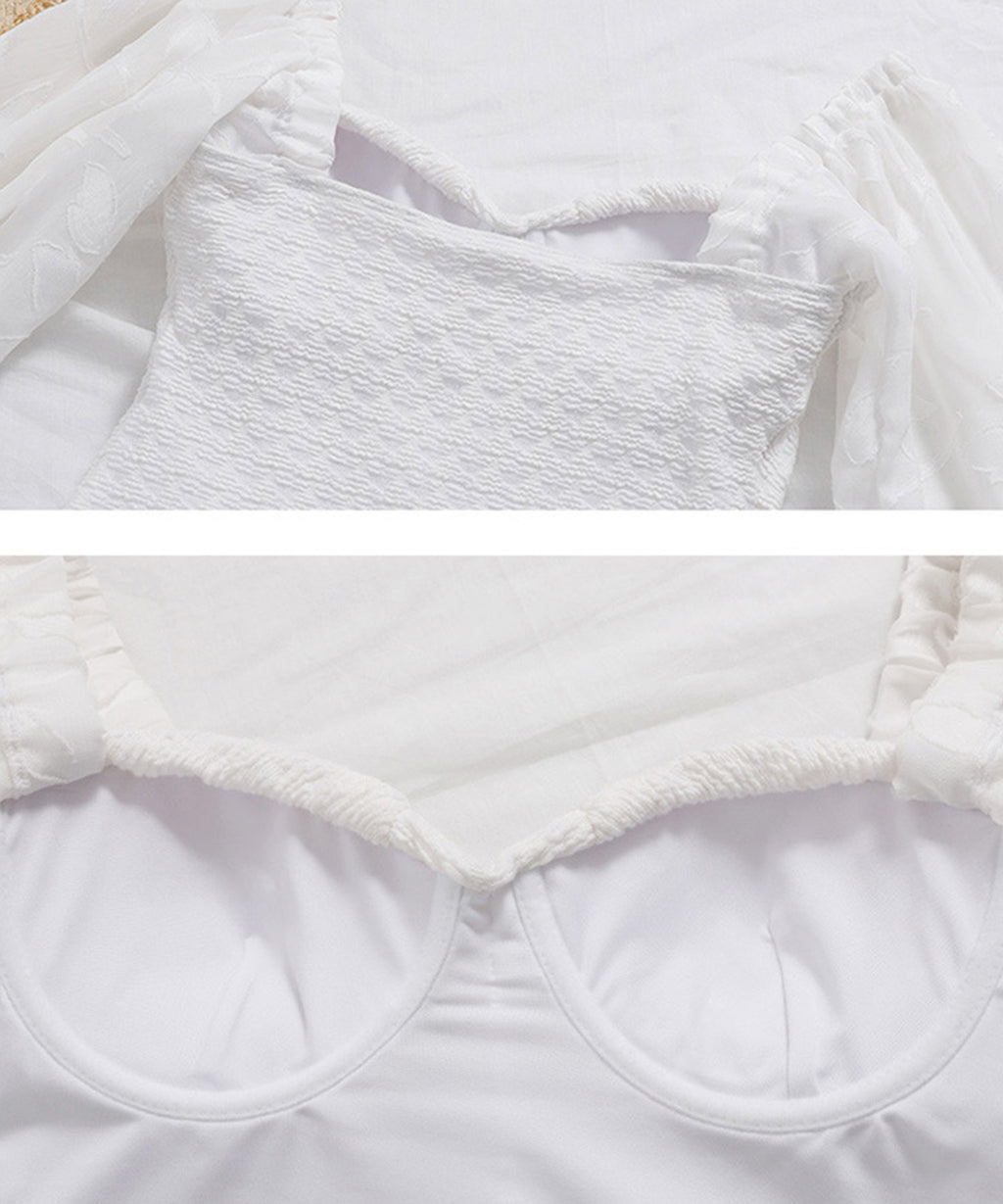 The fluffy, voluminous sheer sleeves provide a light and gentle support.
