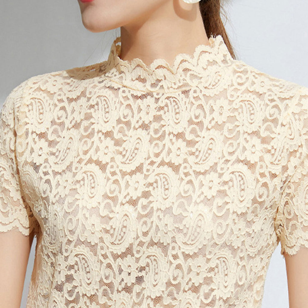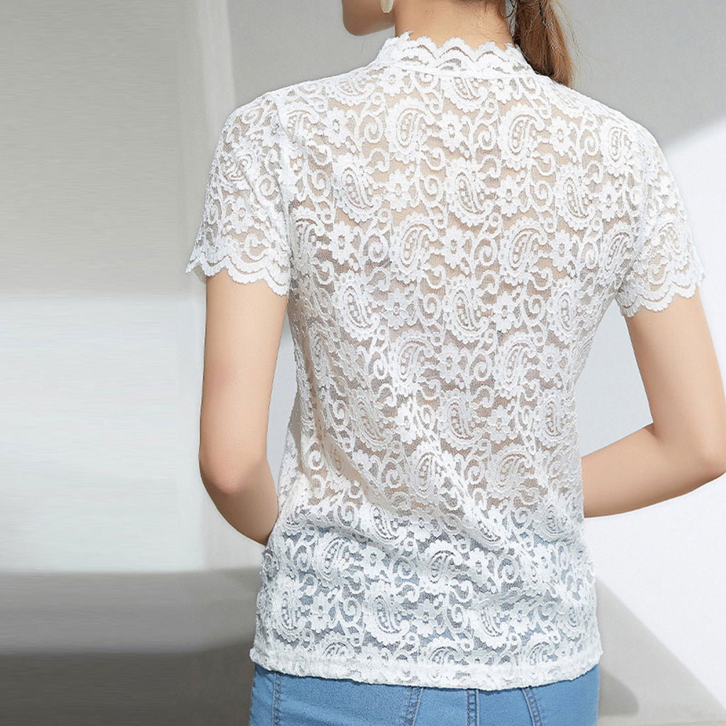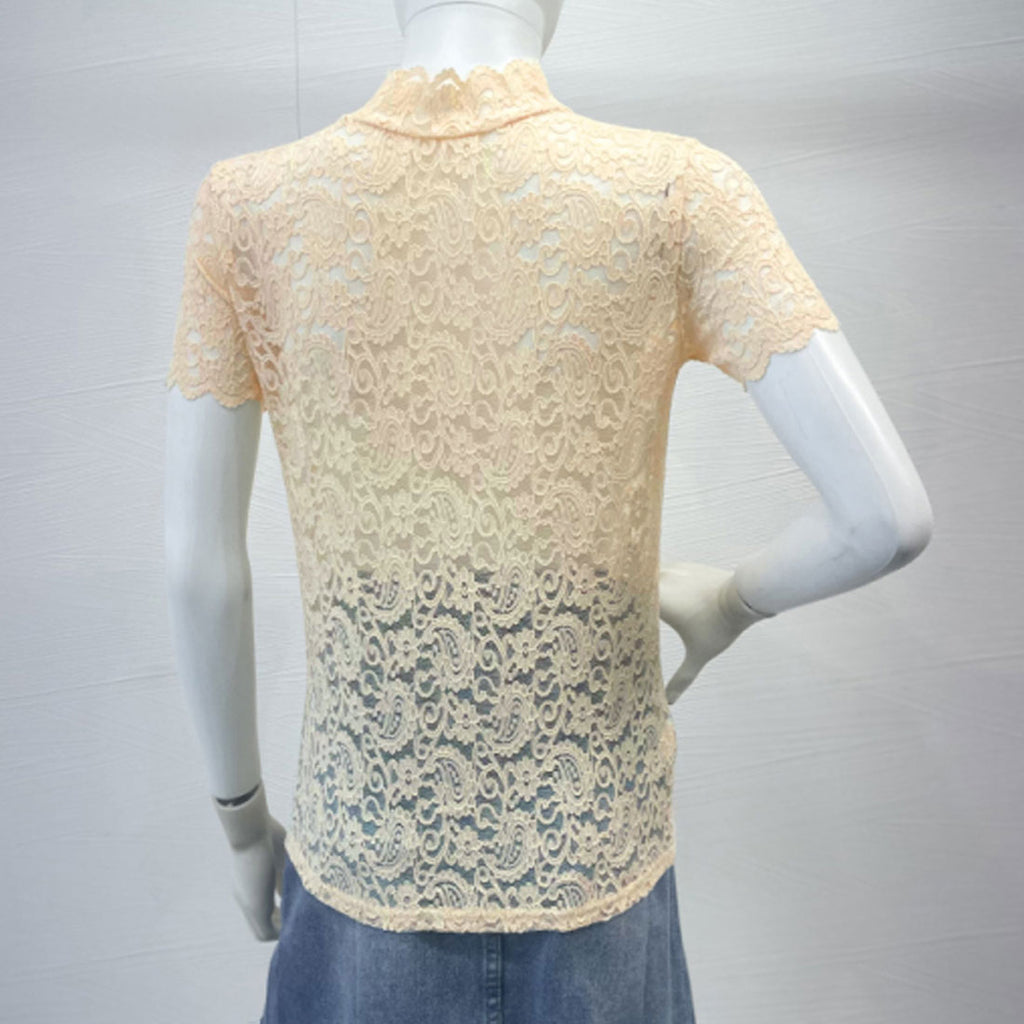 Ladies Embroidered Lace Sheer Tops Sexy Adult Cute Inner Tops Elegant Paisley Pattern Blouse