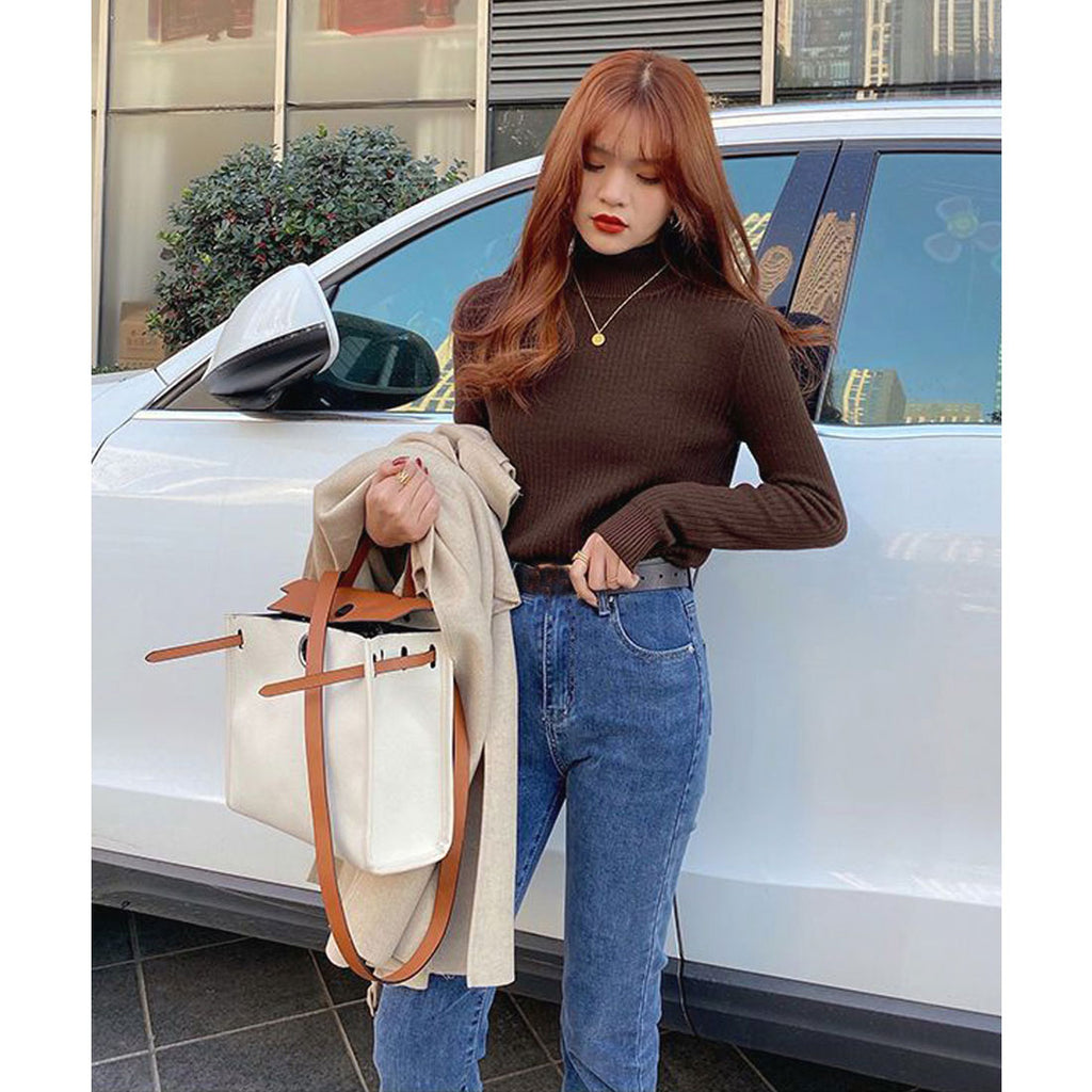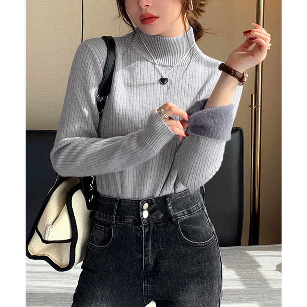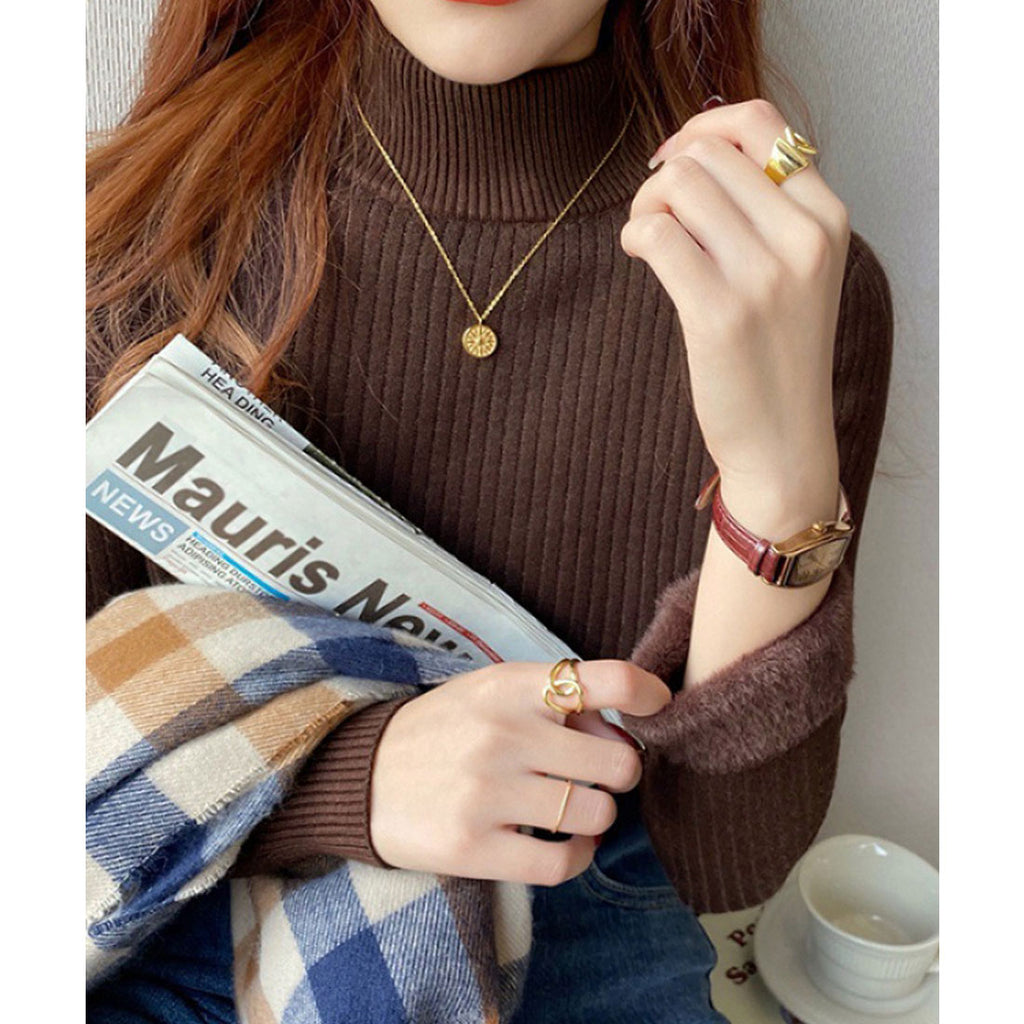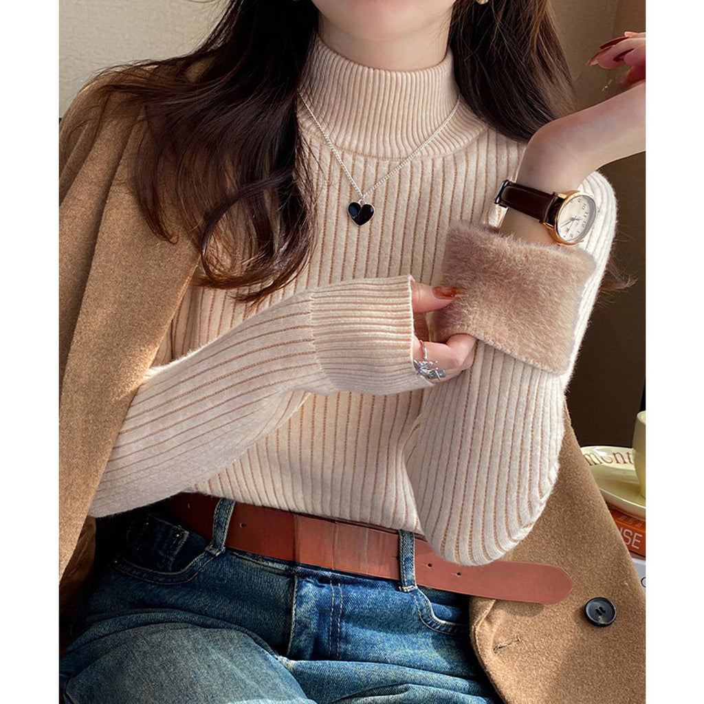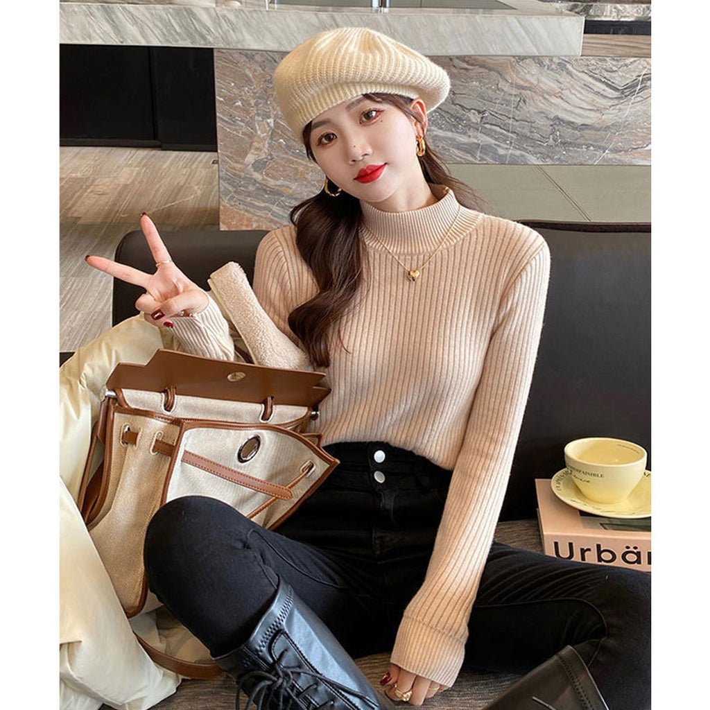 Thermal Knit Sweater Rib Knit Autumn Winter Clothing Korean Fashion