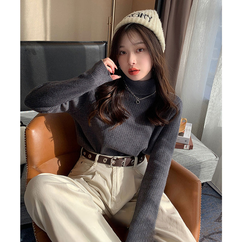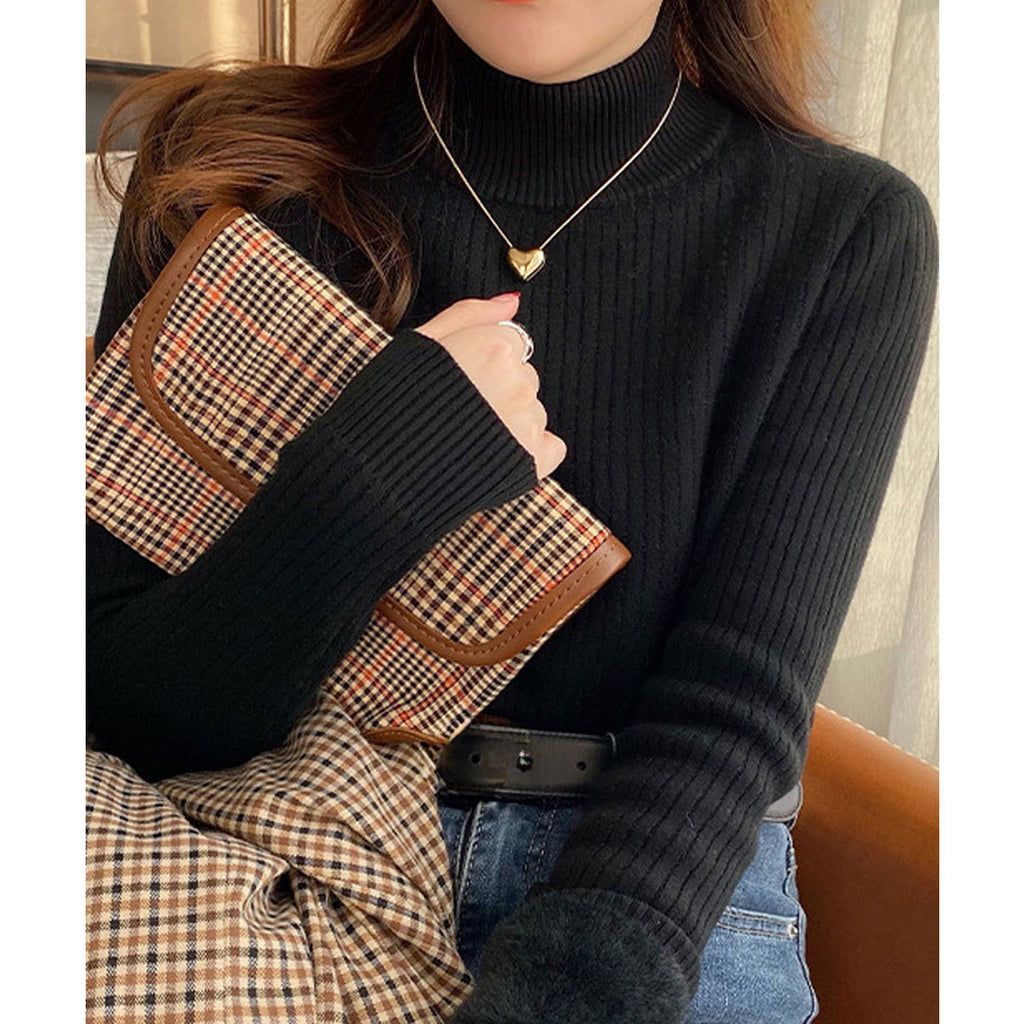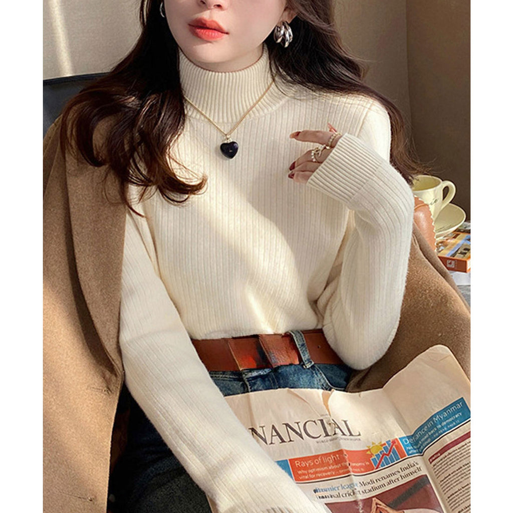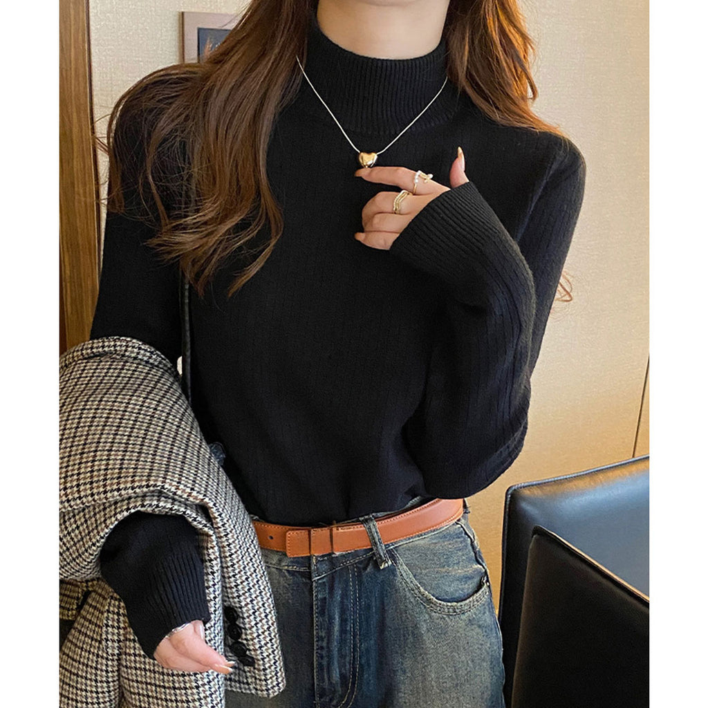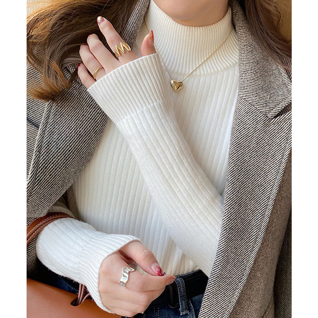 Ladies Long Sleeve Plain Warm Pullover Knit Inner Simple Casual Commuting School Feminine Neat Cold Protection