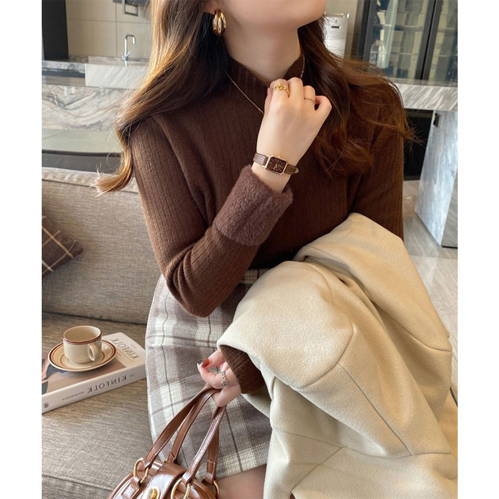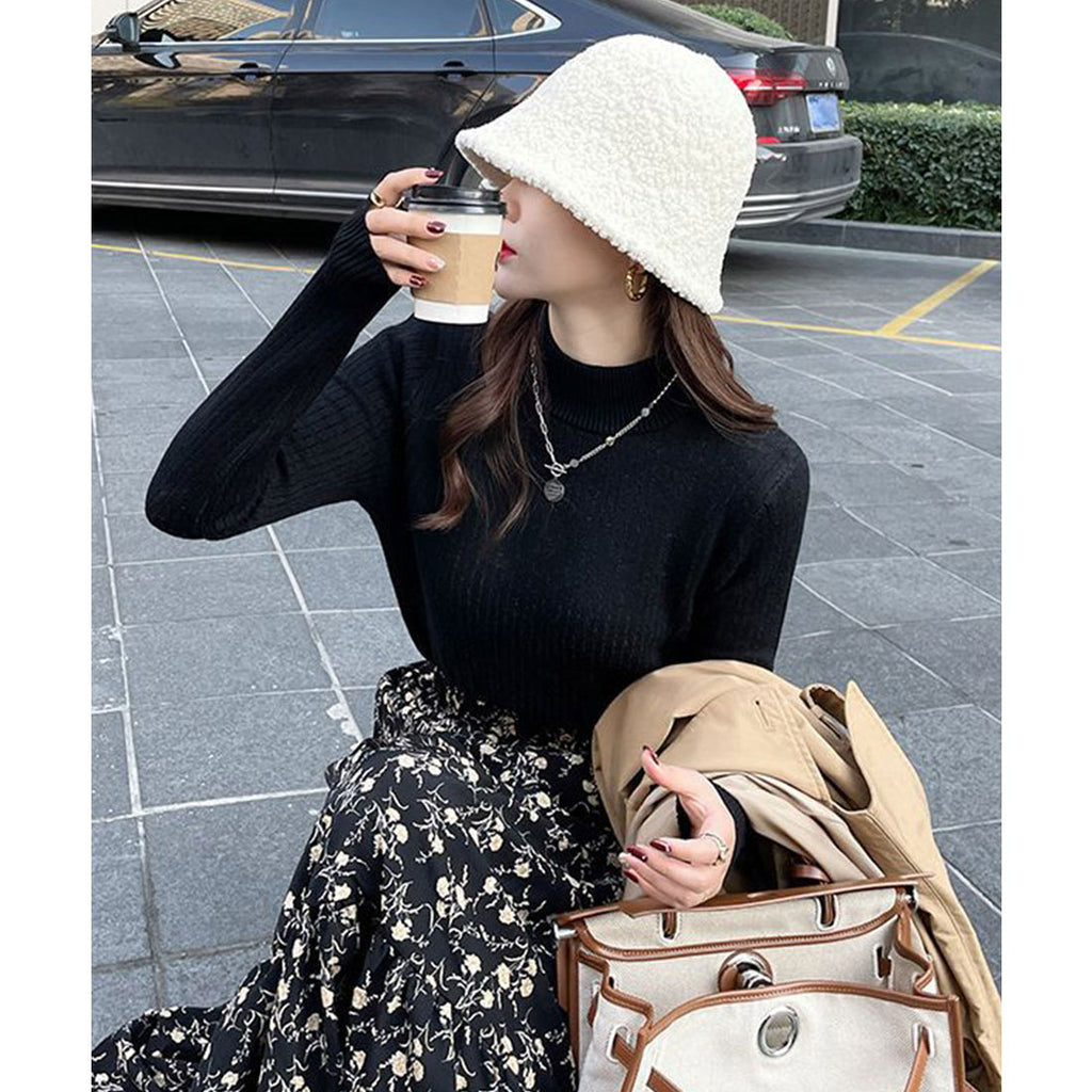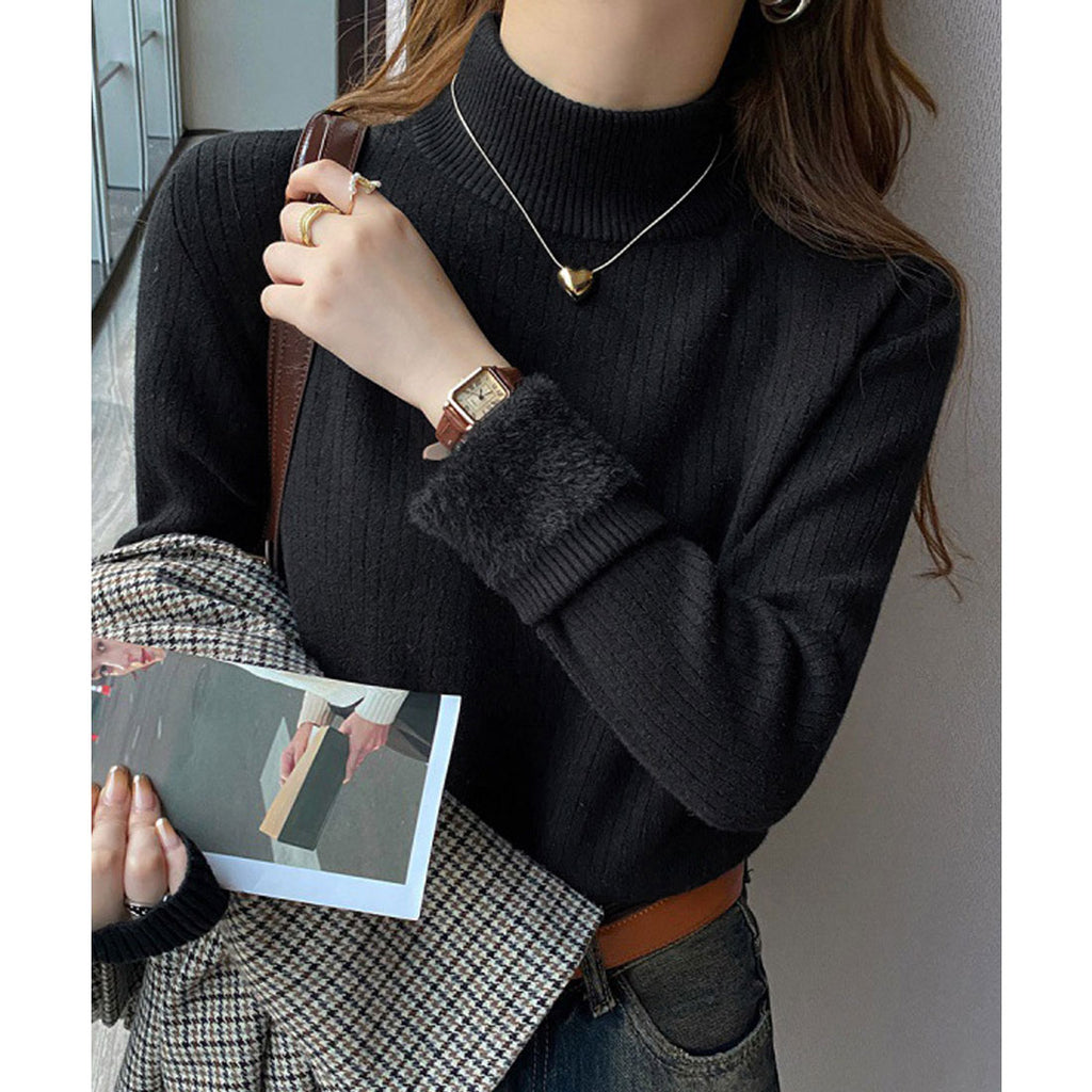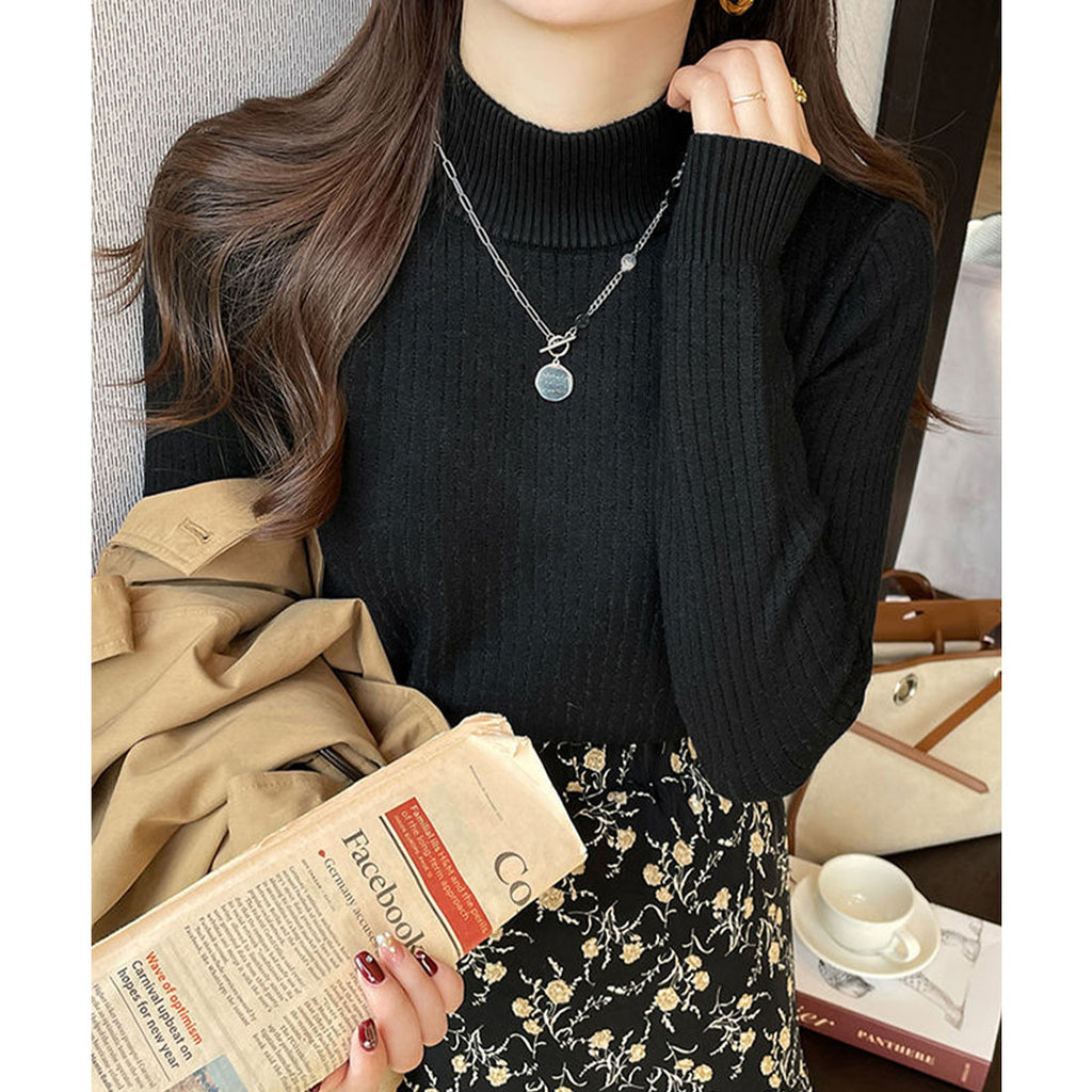 Ladies Long Sleeve Plain Warm Pullover Knit Inner Simple Casual Commuting School Feminine Neat Cold Protection