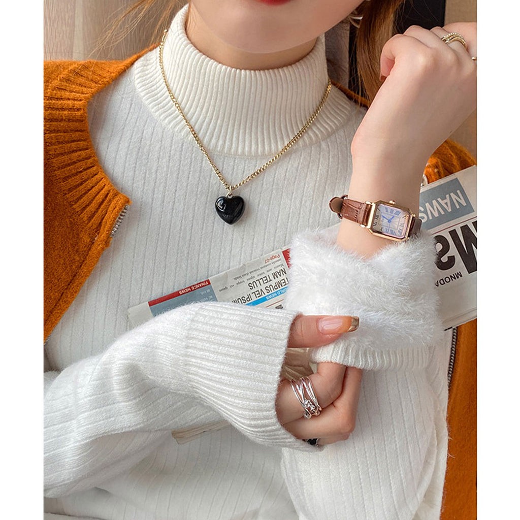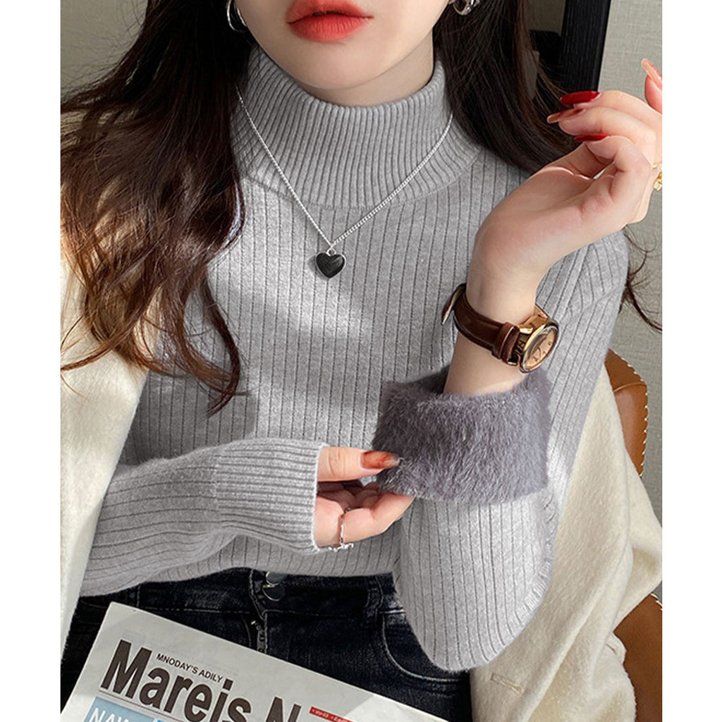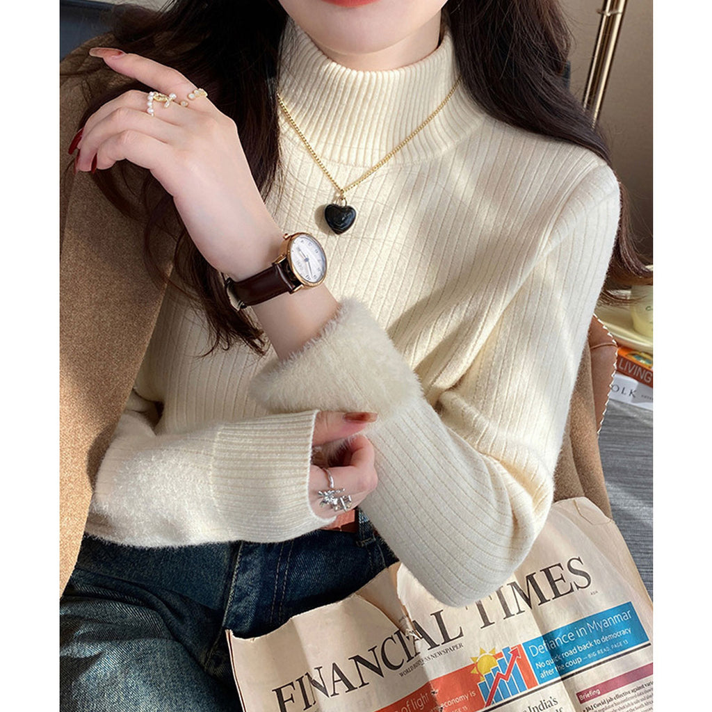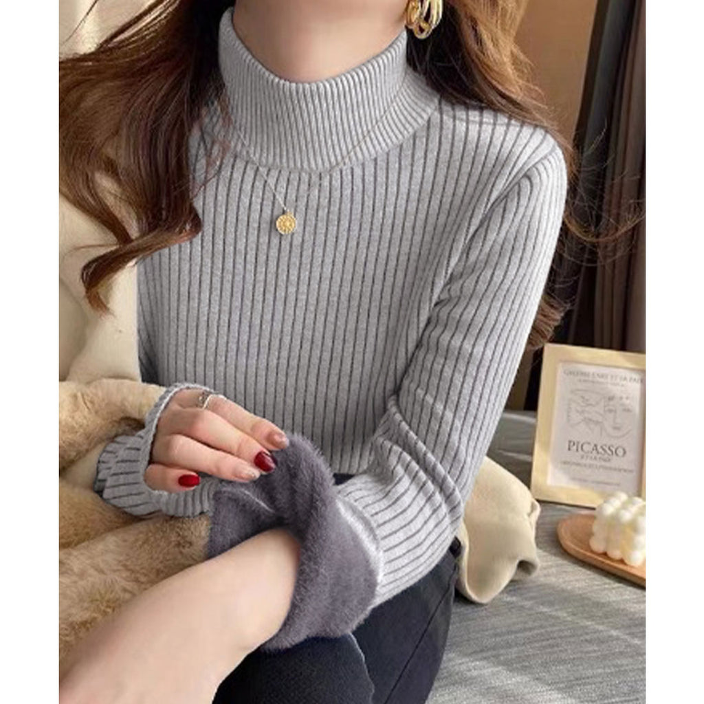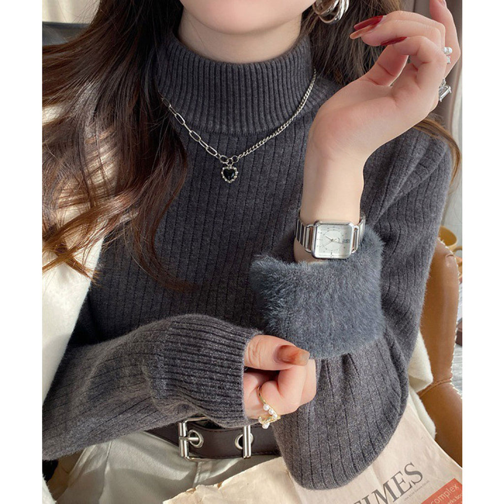 Ladies Long Sleeve Plain Warm Pullover Knit Inner Simple Casual Commuting School Feminine Neat Cold Protection