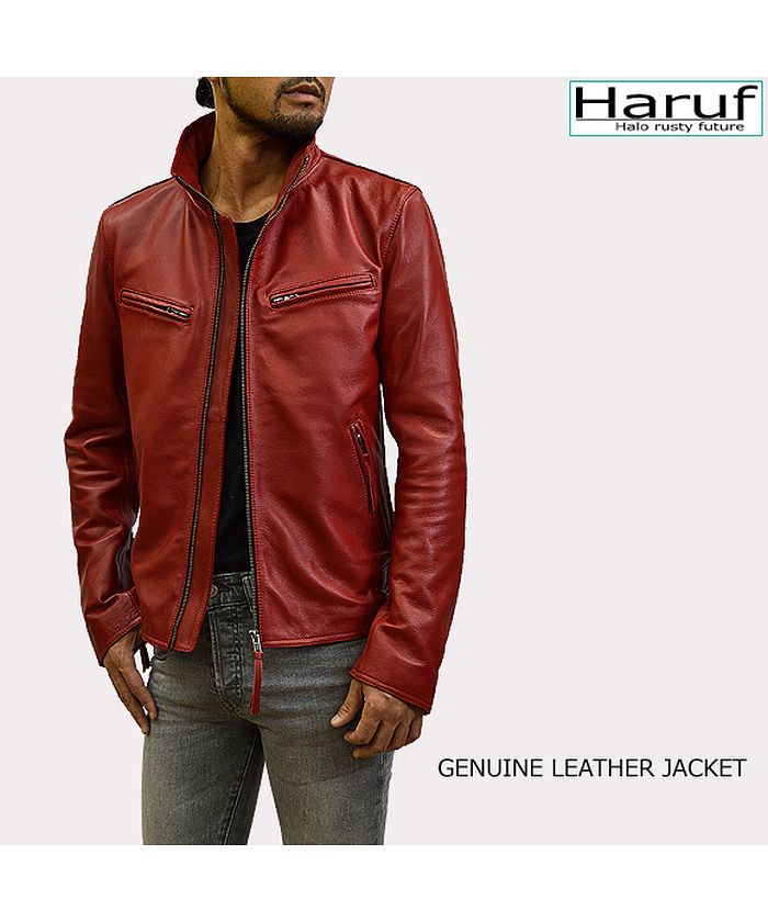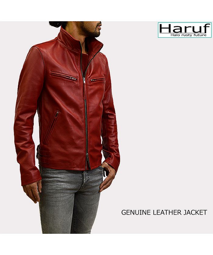Haruf Genuine Leather Single Riders Jacket Men's Leather Jacket Leather Coat Real Leather Jacket Large Size Motorcycle Jacket USA18