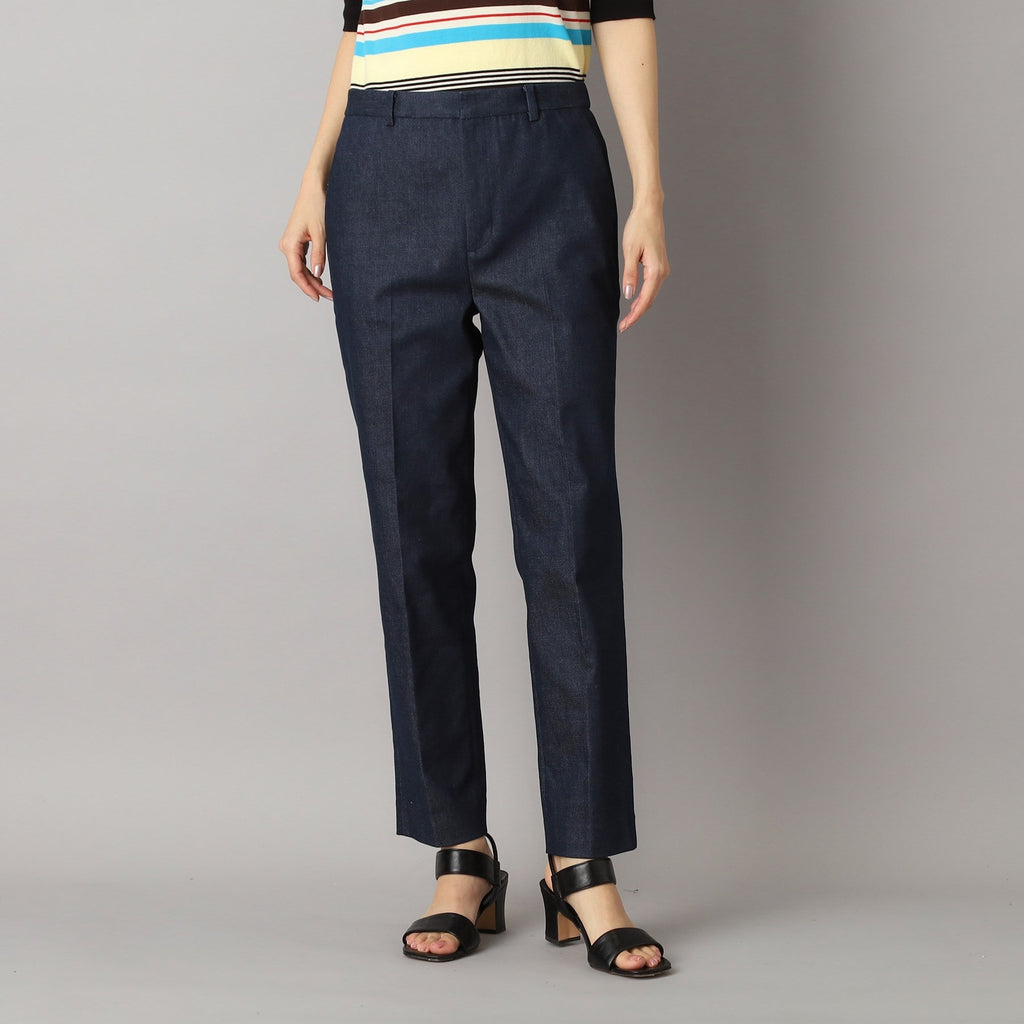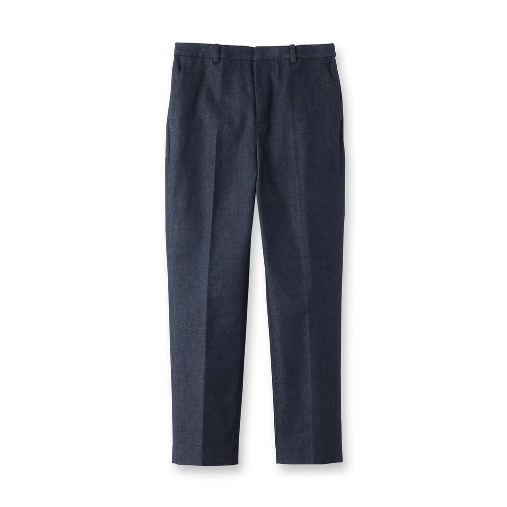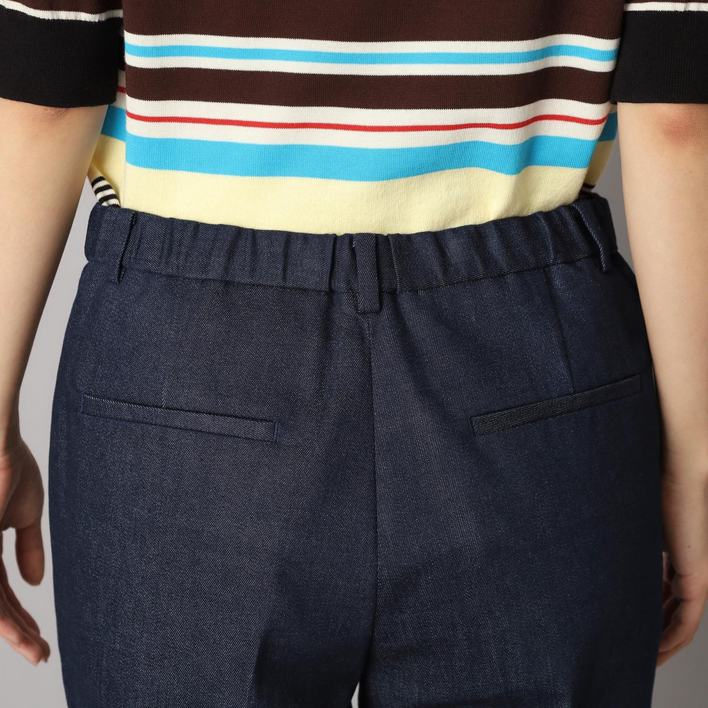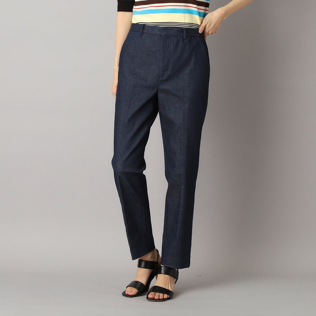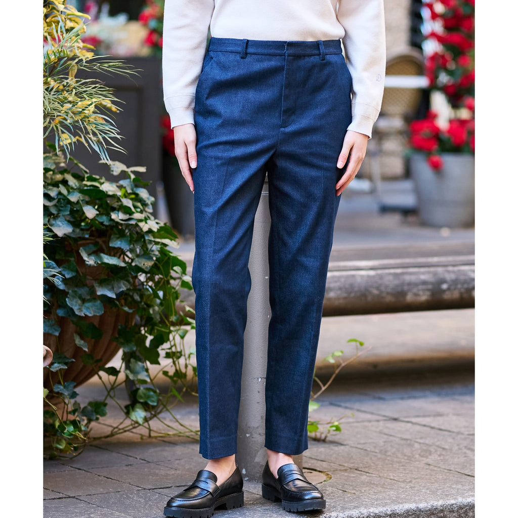 The popular tapered pants with a beautiful leg silhouette are now available in denim material.