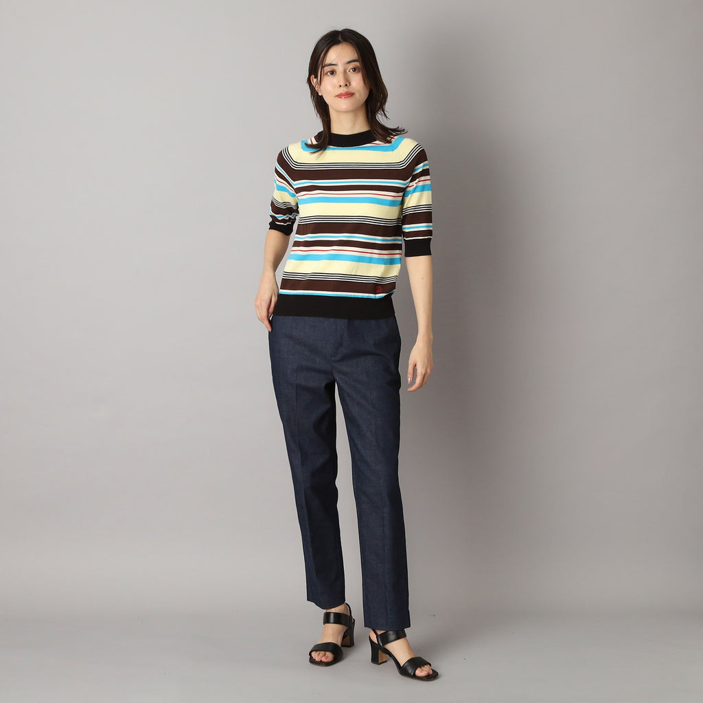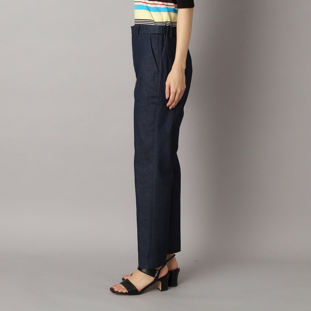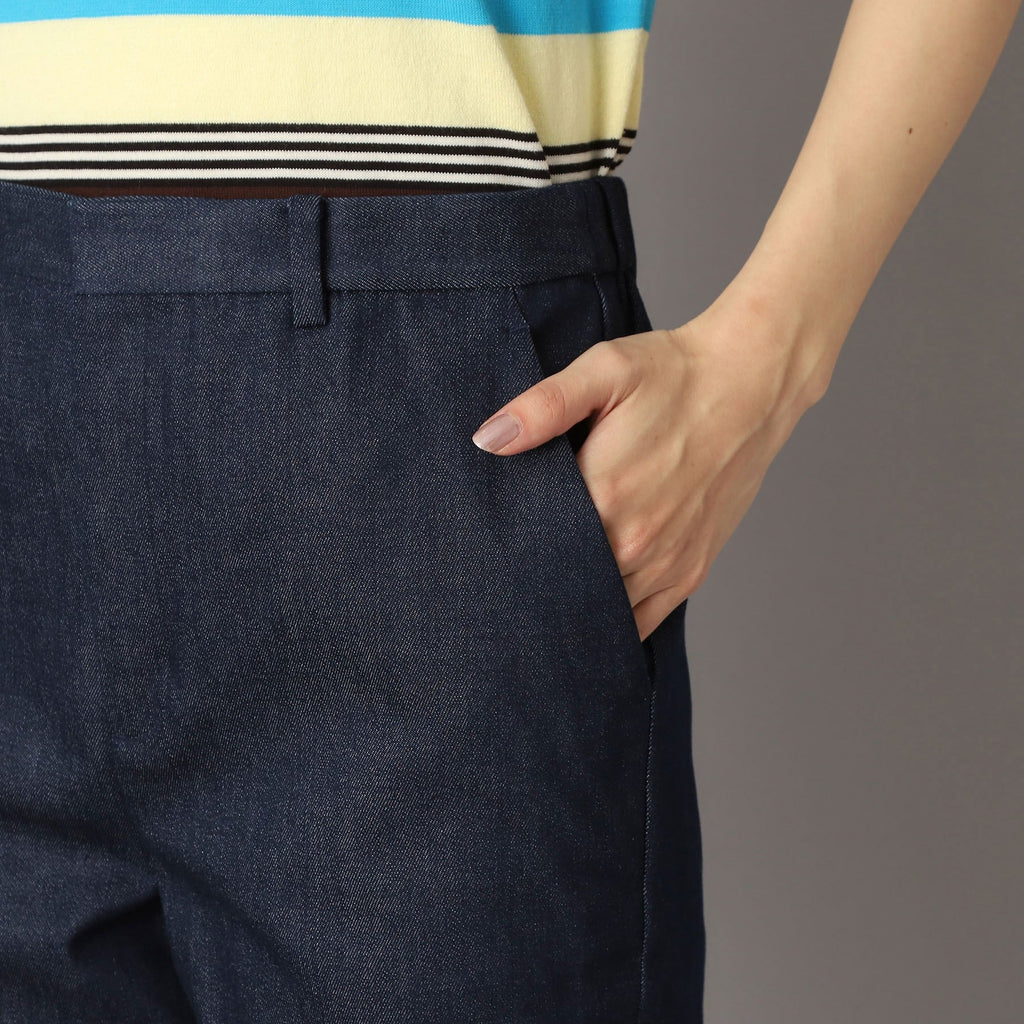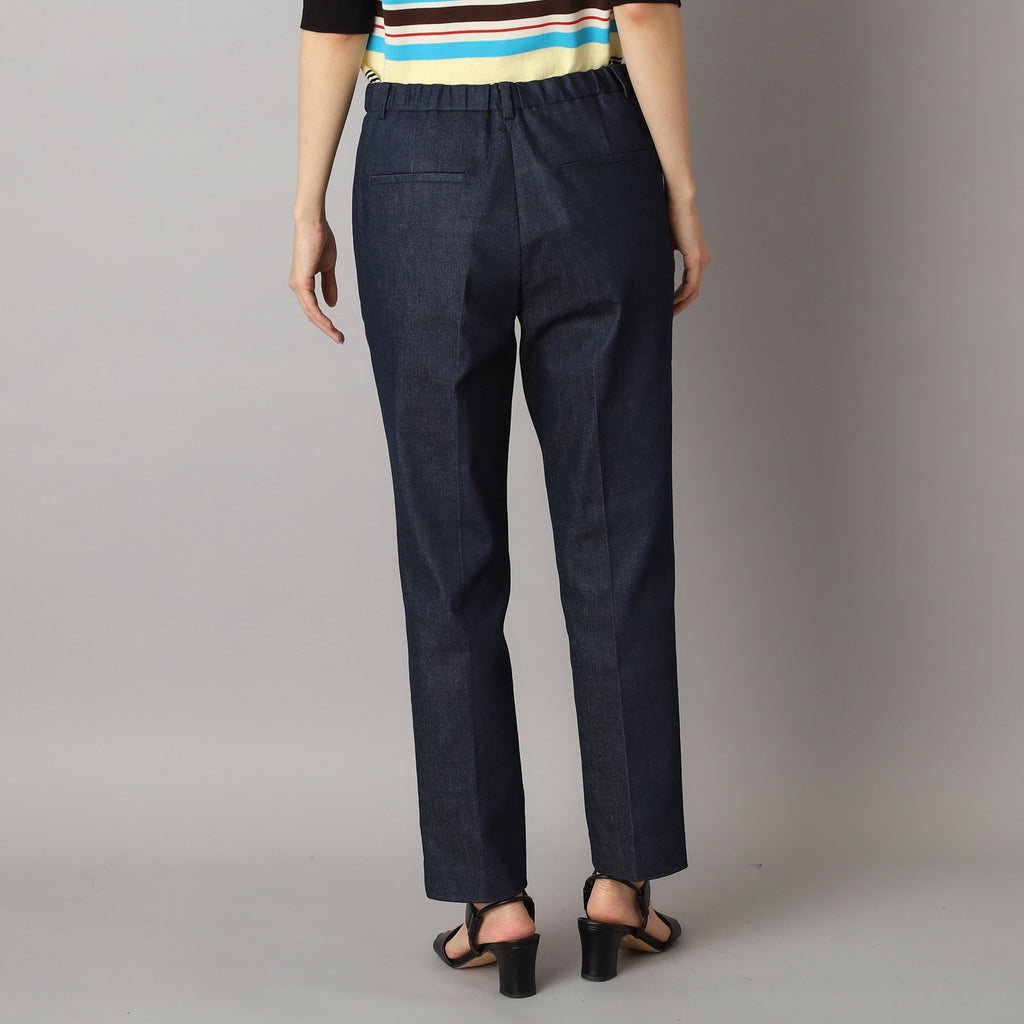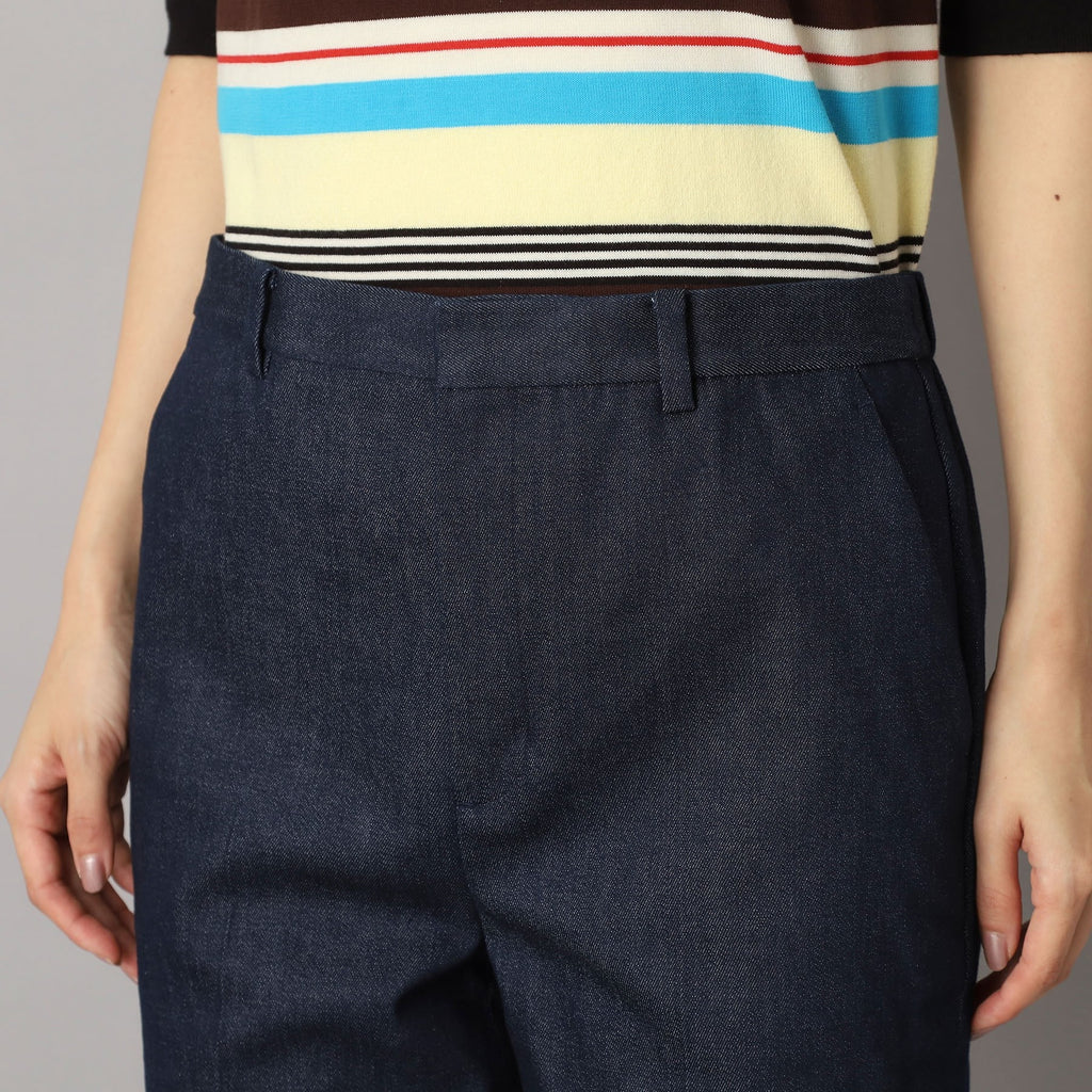 The popular tapered pants with a beautiful leg silhouette are now available in denim material.