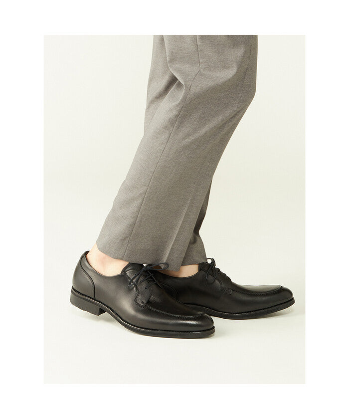 Business shoes equipped with sports technology featuring an external wing U-moc design that is suitable for rainy days. The lining uses Gore-Tex fabric, which excels in waterproof and breathable properties. The upper is made of finely textured high-quality domestic steer leather. The insole uses Ortholite, which is also used in sports shoes. It conforms to the shape of the foot, providing a soft feel and excellent cushioning. The midsole incorporates SPEVA, which combines cushioning and rebound properties, and features GEL shock-absorbing technology in the heel area. A resin part placed in the midfoot of the sole reduces foot twisting during walking. The outer sole's heel area is made of AHAR rubber, which is highly resistant to abrasion. 3E round last. While being spacious, it is finished in a traditional design that can be worn even on rainy days, making it a practical choice for long business trips.