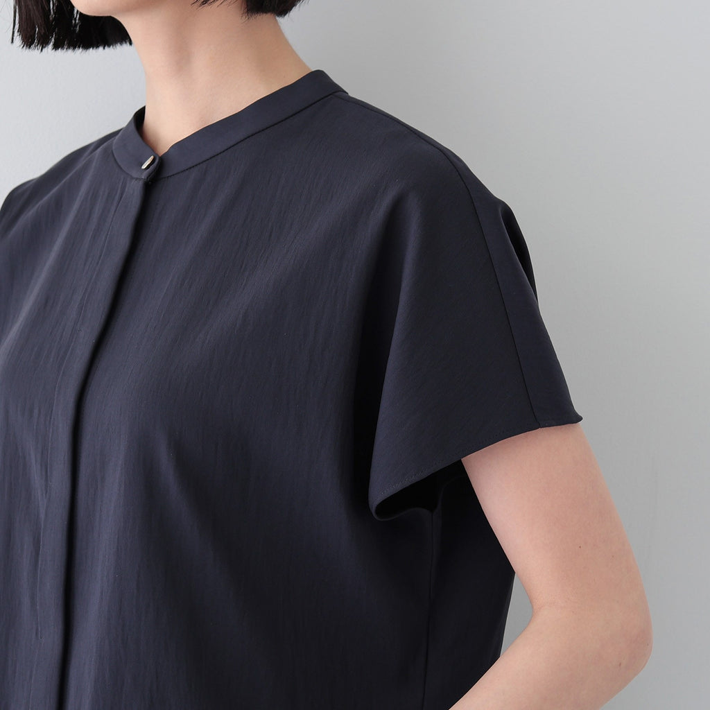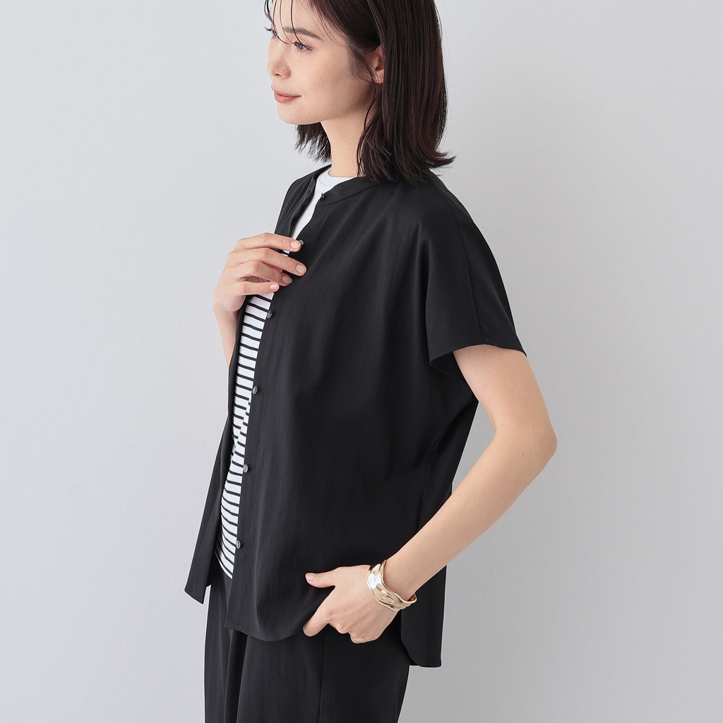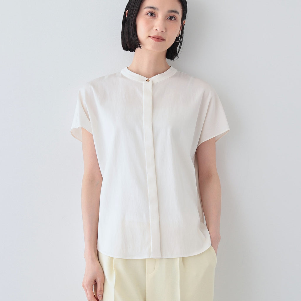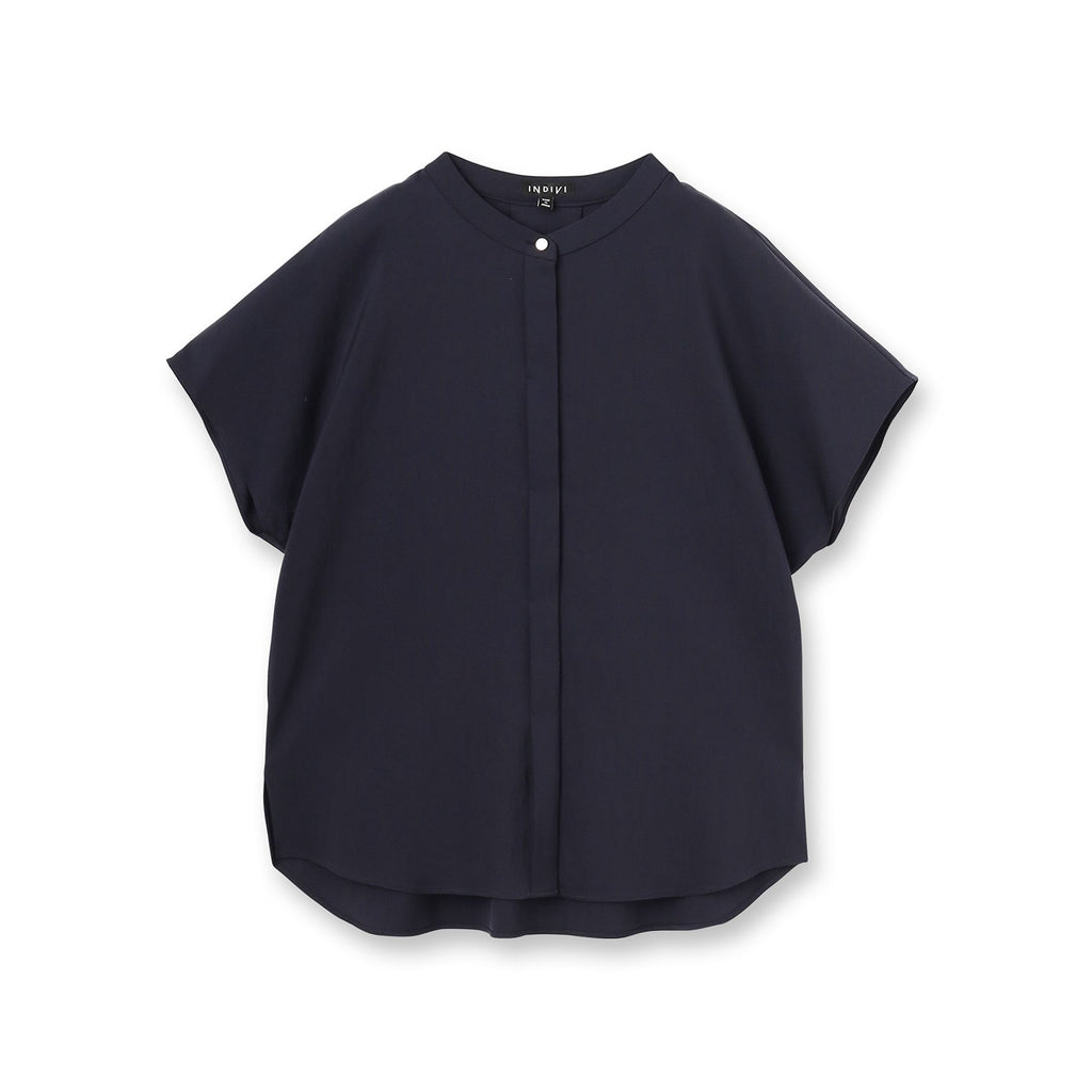 INDIVI INDIVI 【Washable / Can be set up】 Band collar short-sleeve blouse