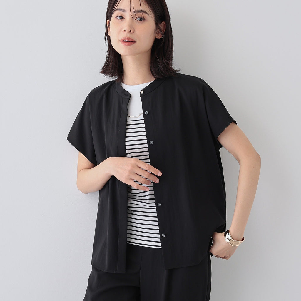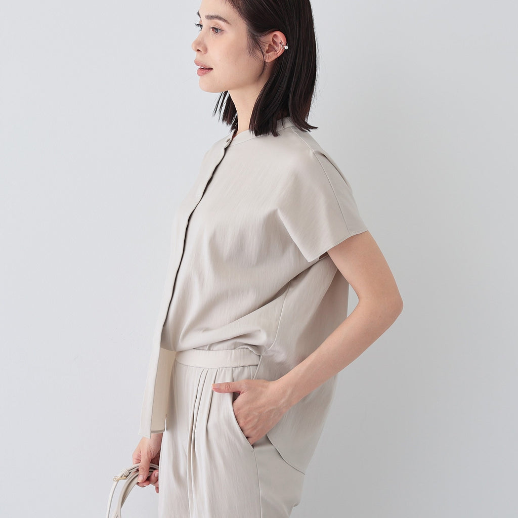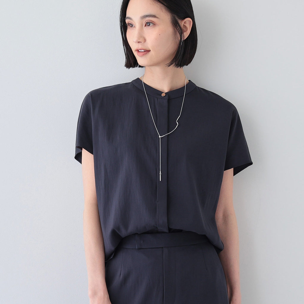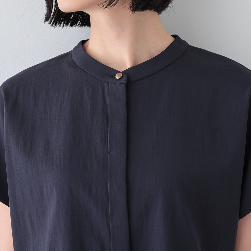 INDIVI INDIVI 【Washable / Can be set up】 Band collar short-sleeve blouse