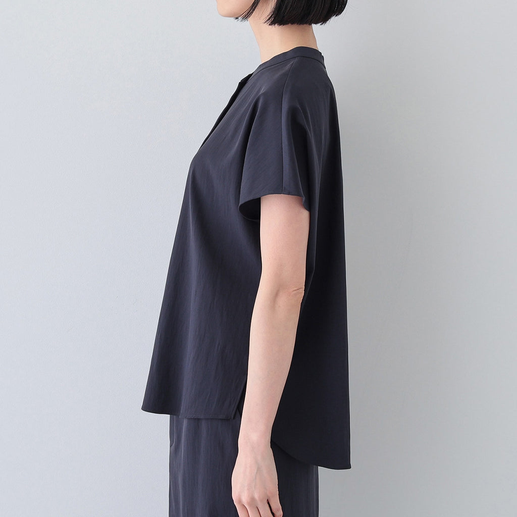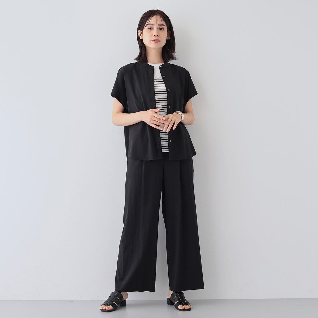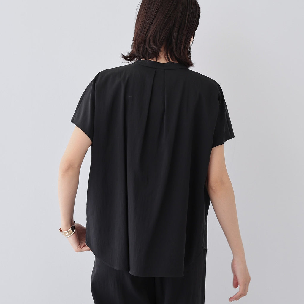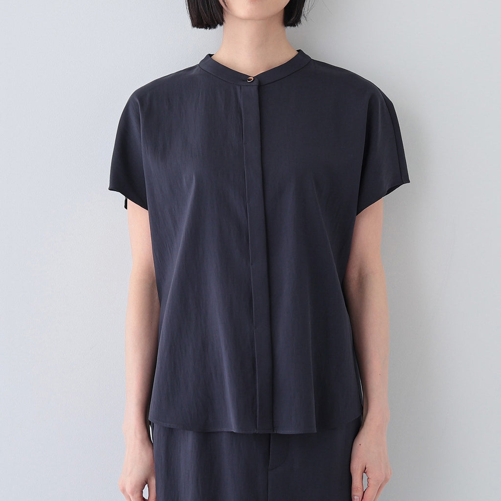 INDIVI INDIVI 【Washable / Can be set up】 Band collar short-sleeve blouse