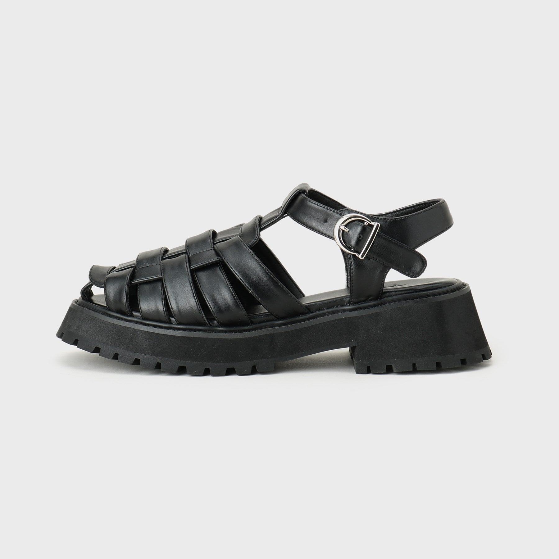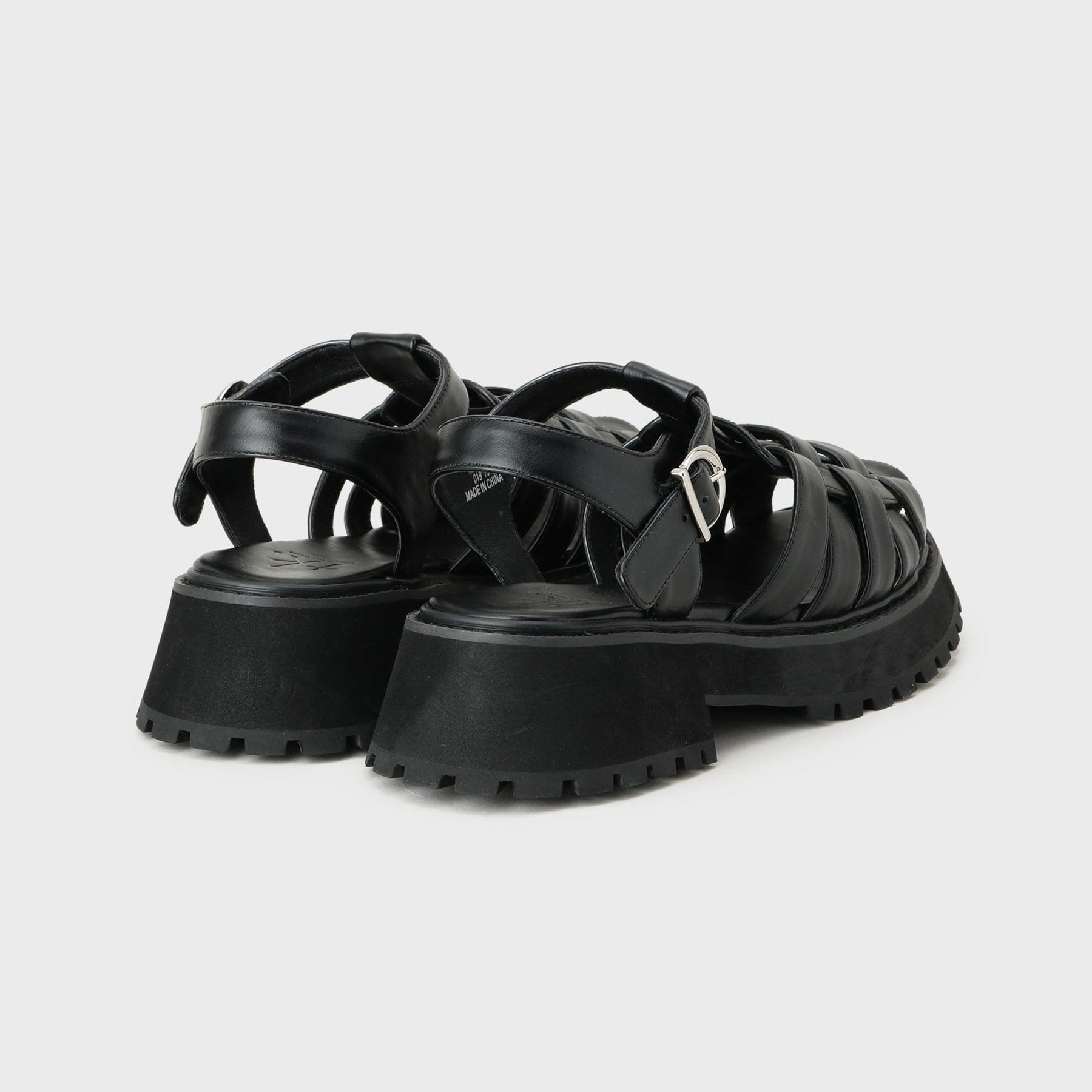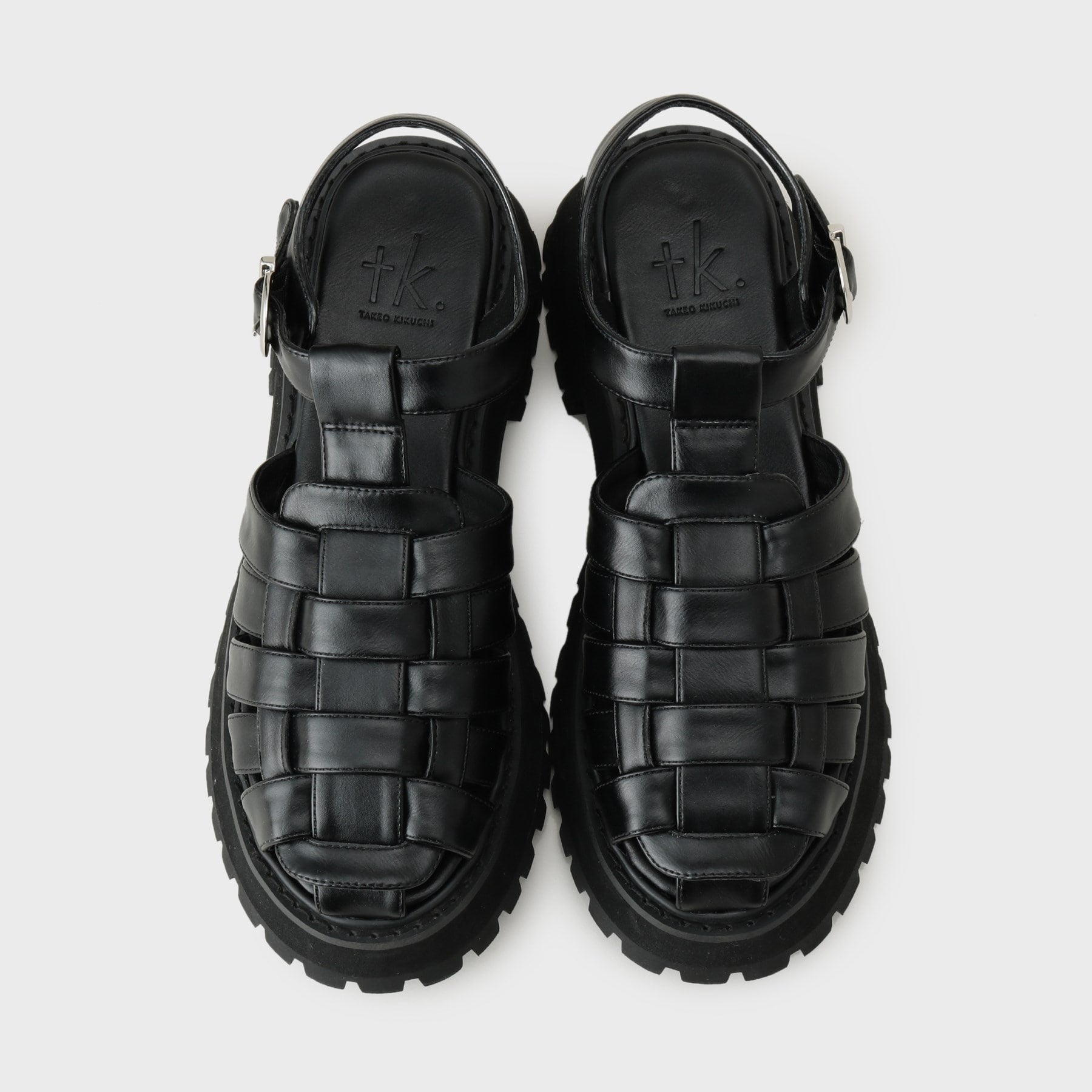 Gurke sandals featuring a voluminous chunky sole and a design with a complex crisscrossed upper.
