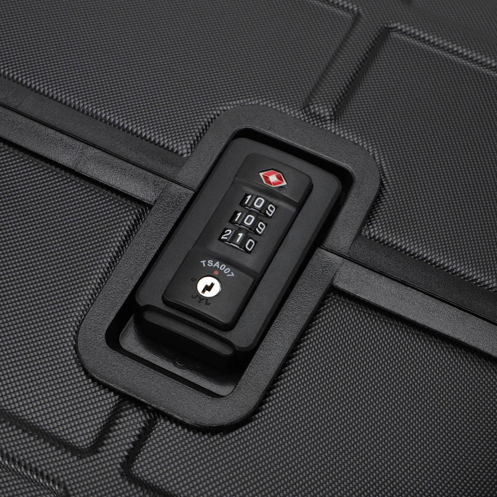 [スペック] Push lock opening/closing / Inside: 3 zippered pockets, 2 liner pockets (removable) / TSA lock