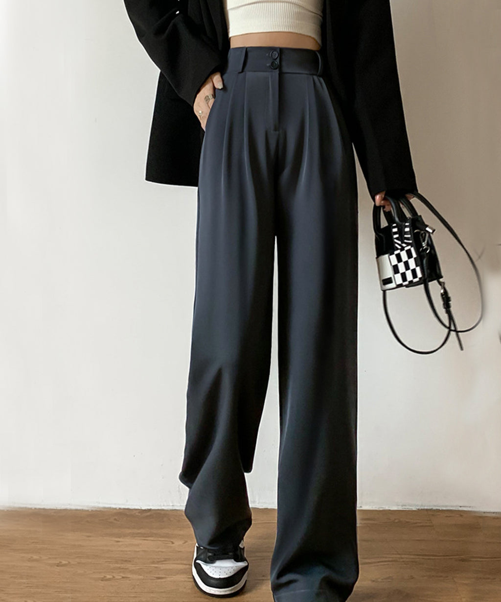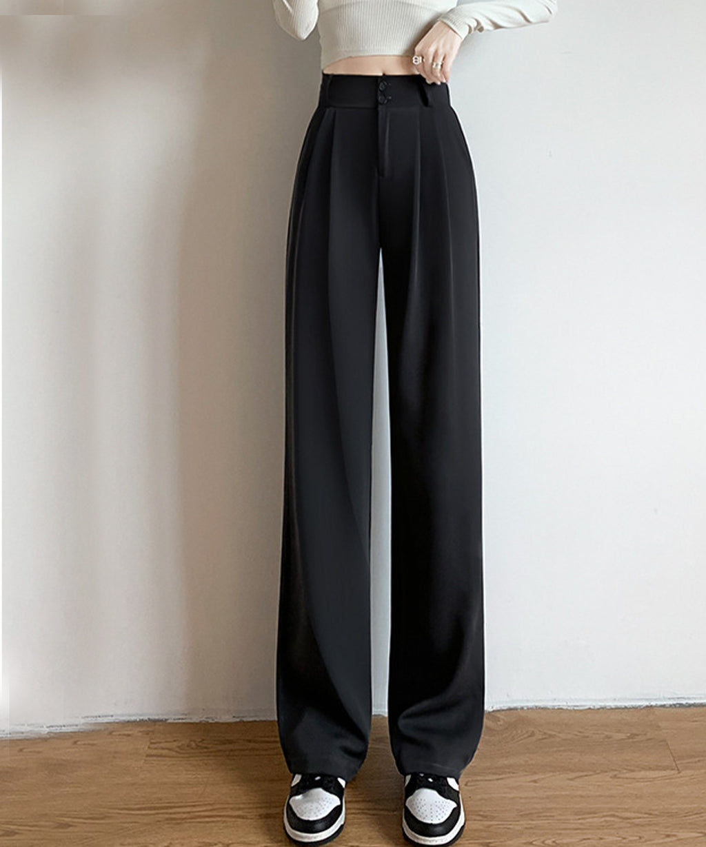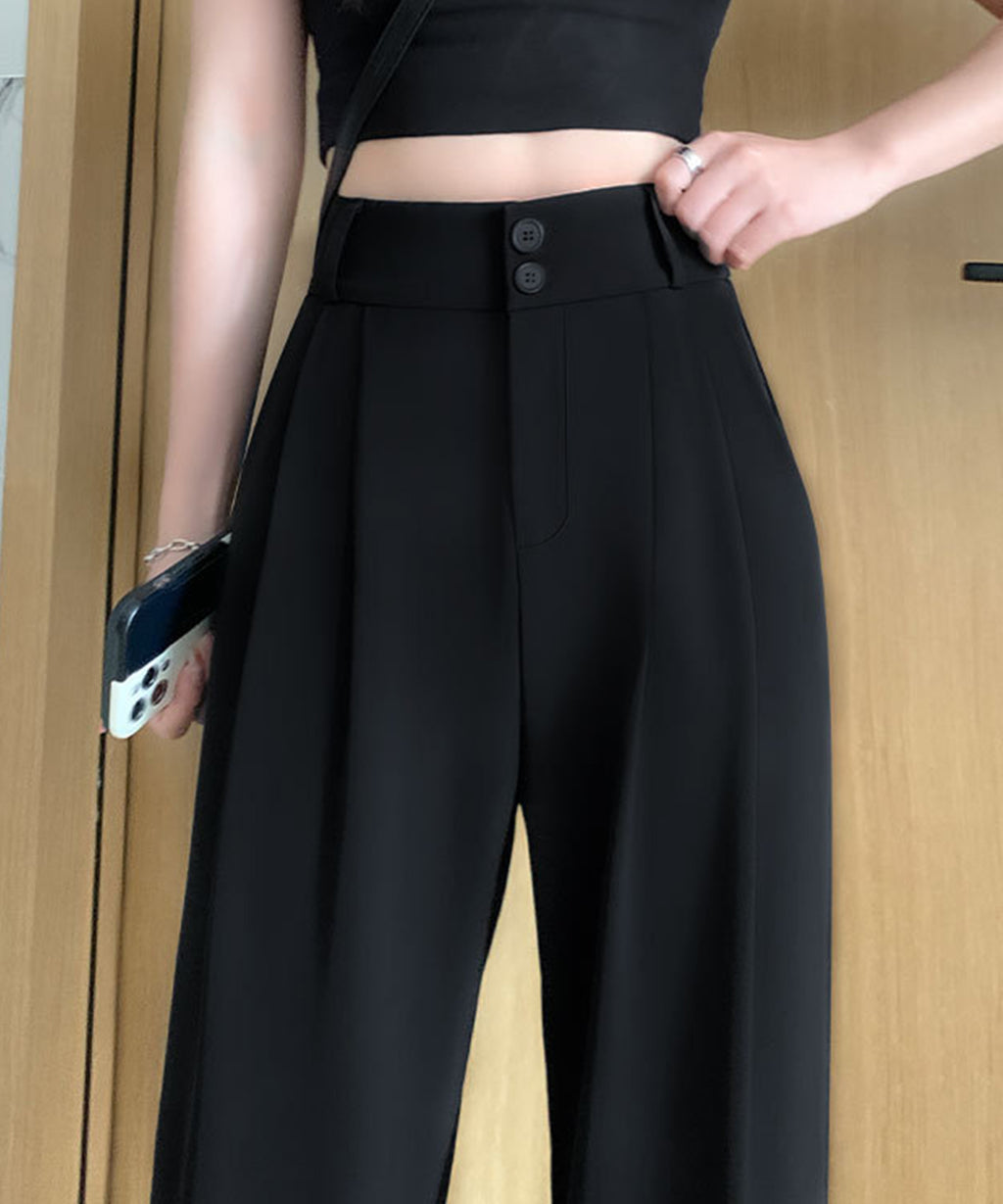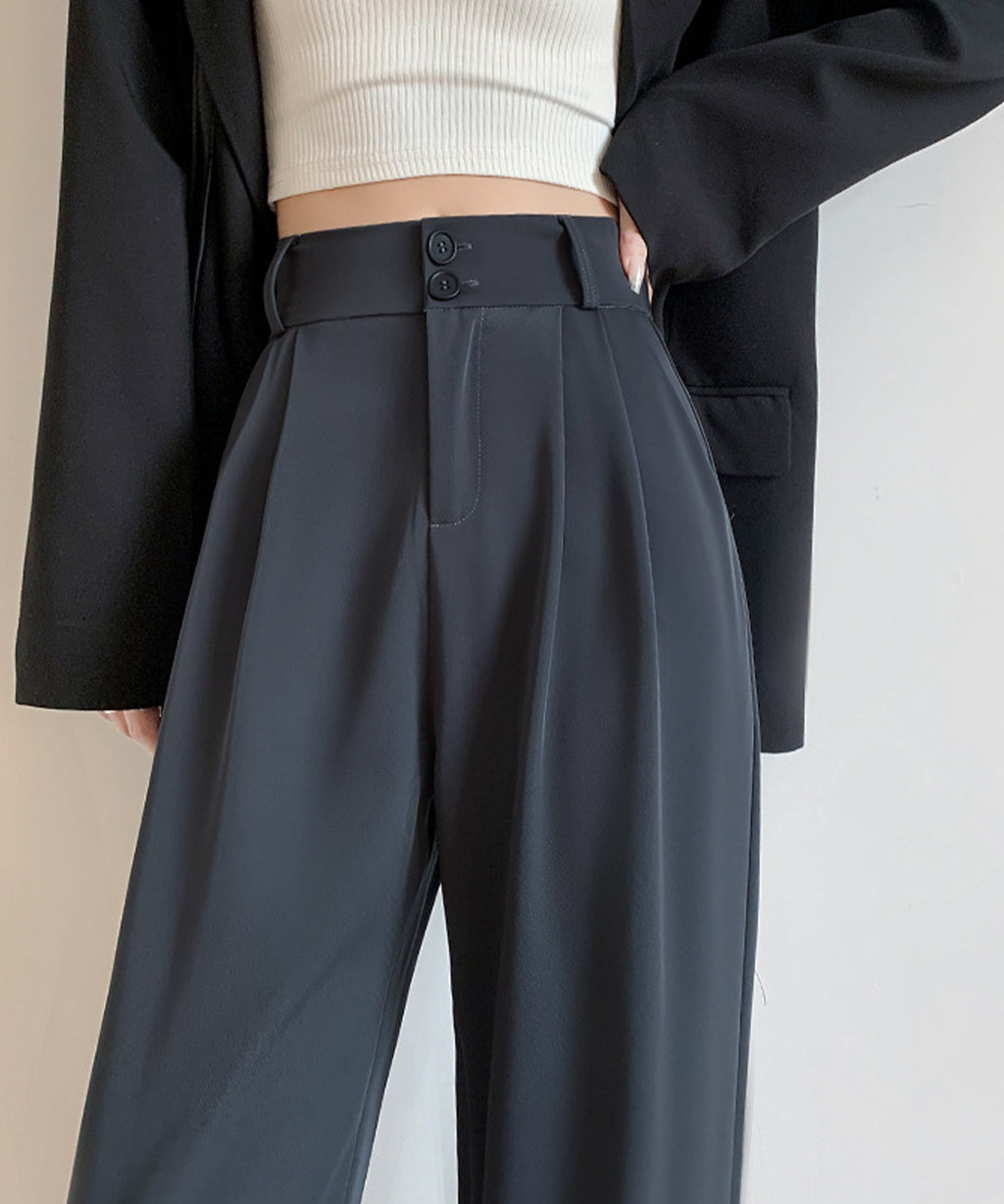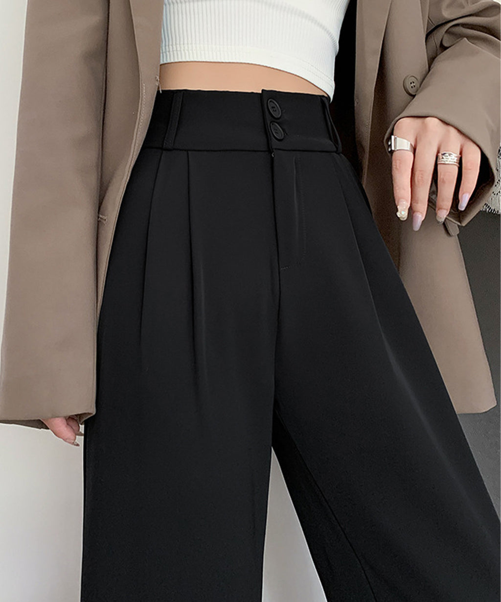 Lace Ladies Double Button High Waist Tuck Wide Slacks