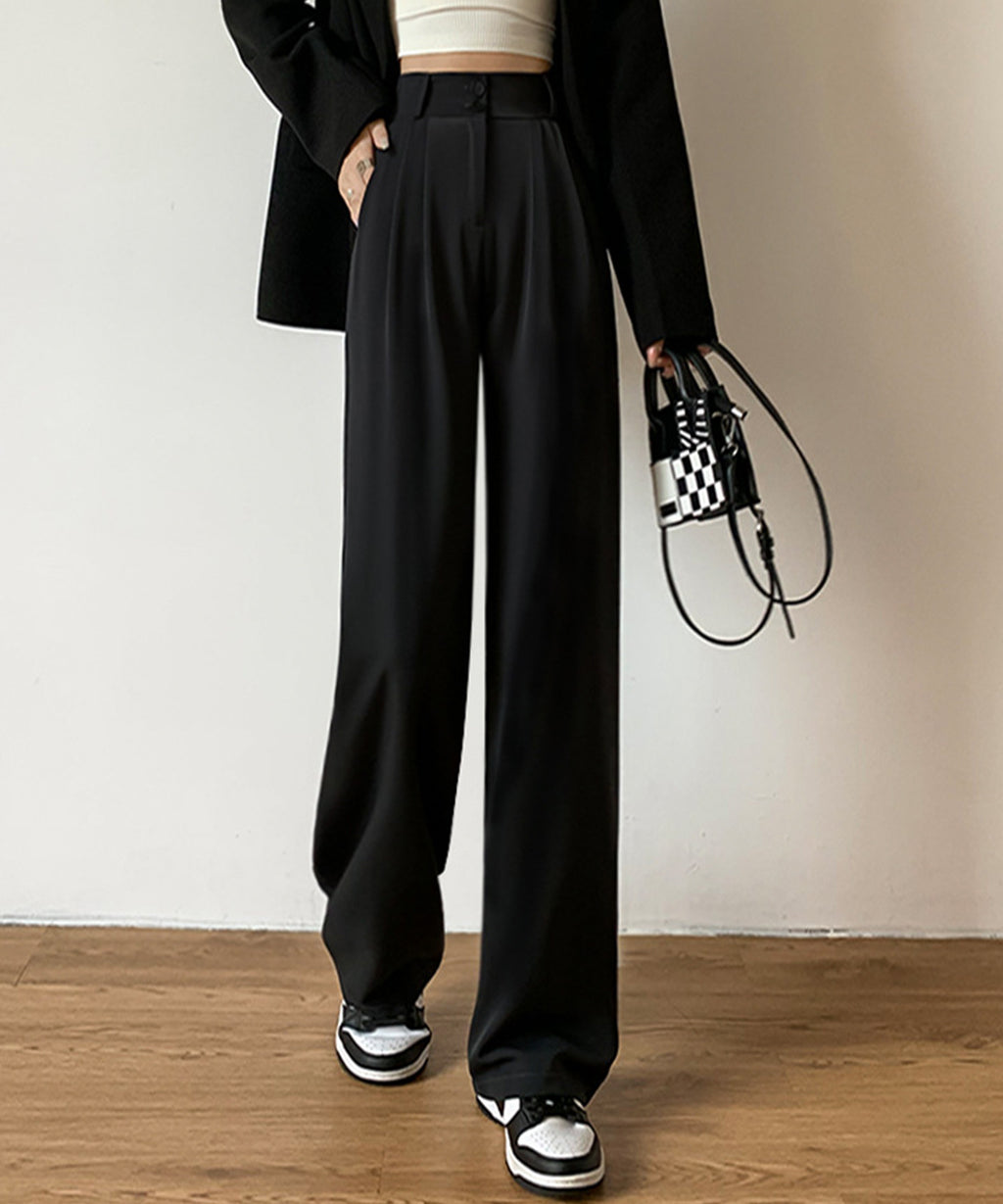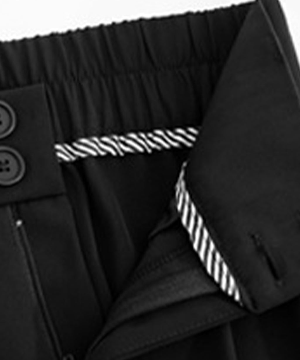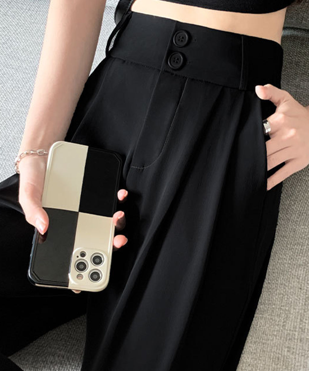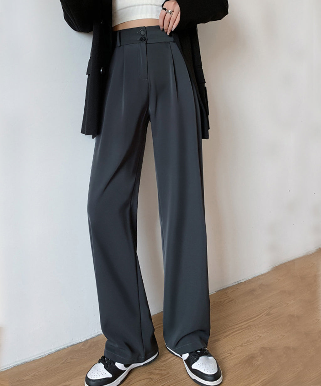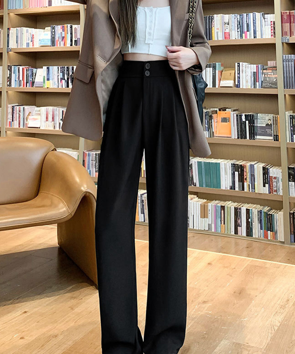 Lace Ladies Double Button High Waist Tuck Wide Slacks