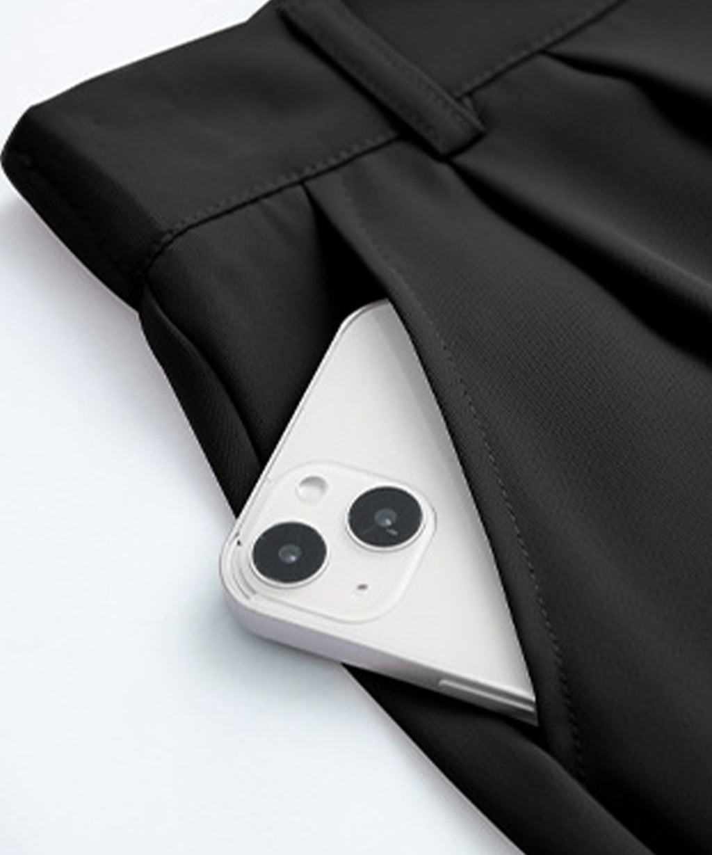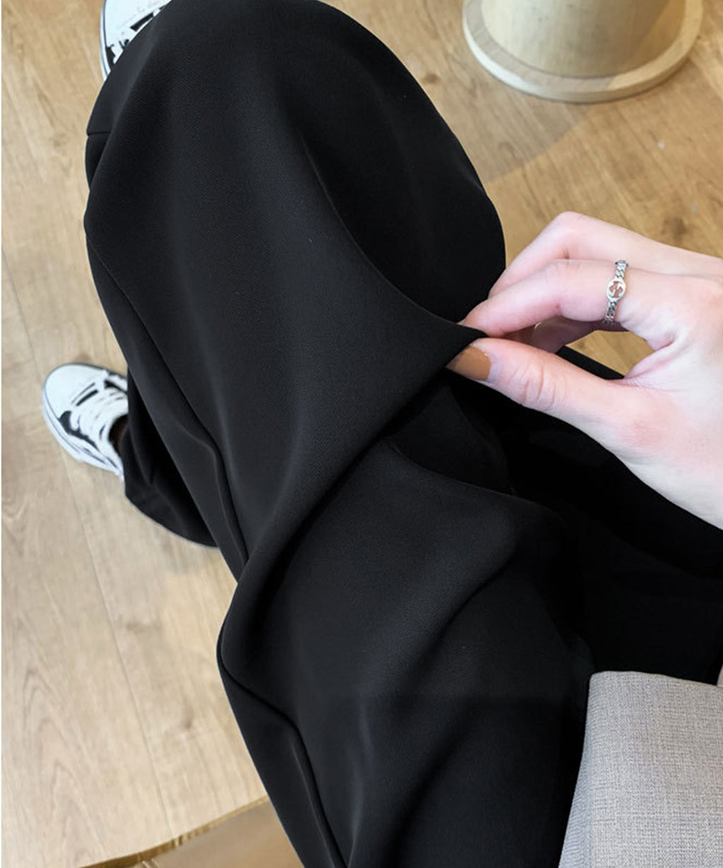 A relaxed silhouette wide slacks that covers the leg line.
