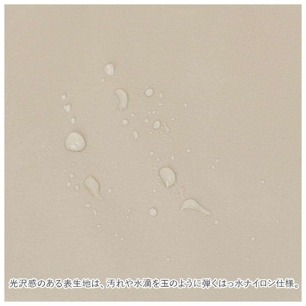 The glossy outer fabric is made of water-repellent nylon that repels dirt and water droplets like beads.