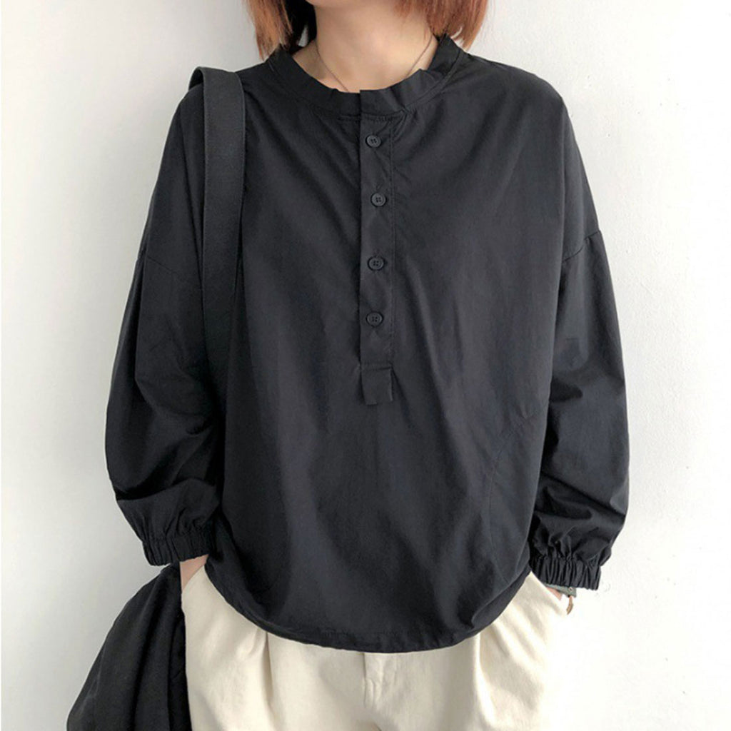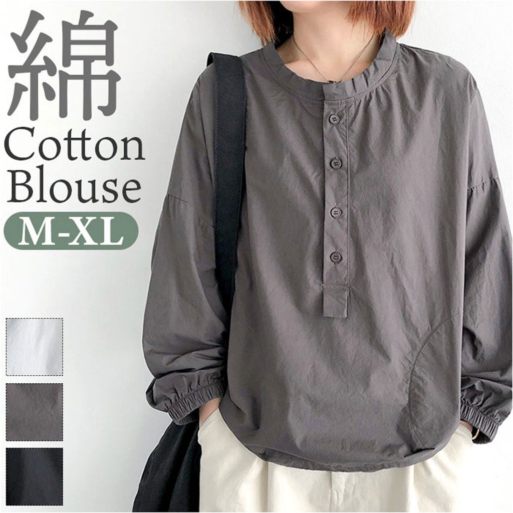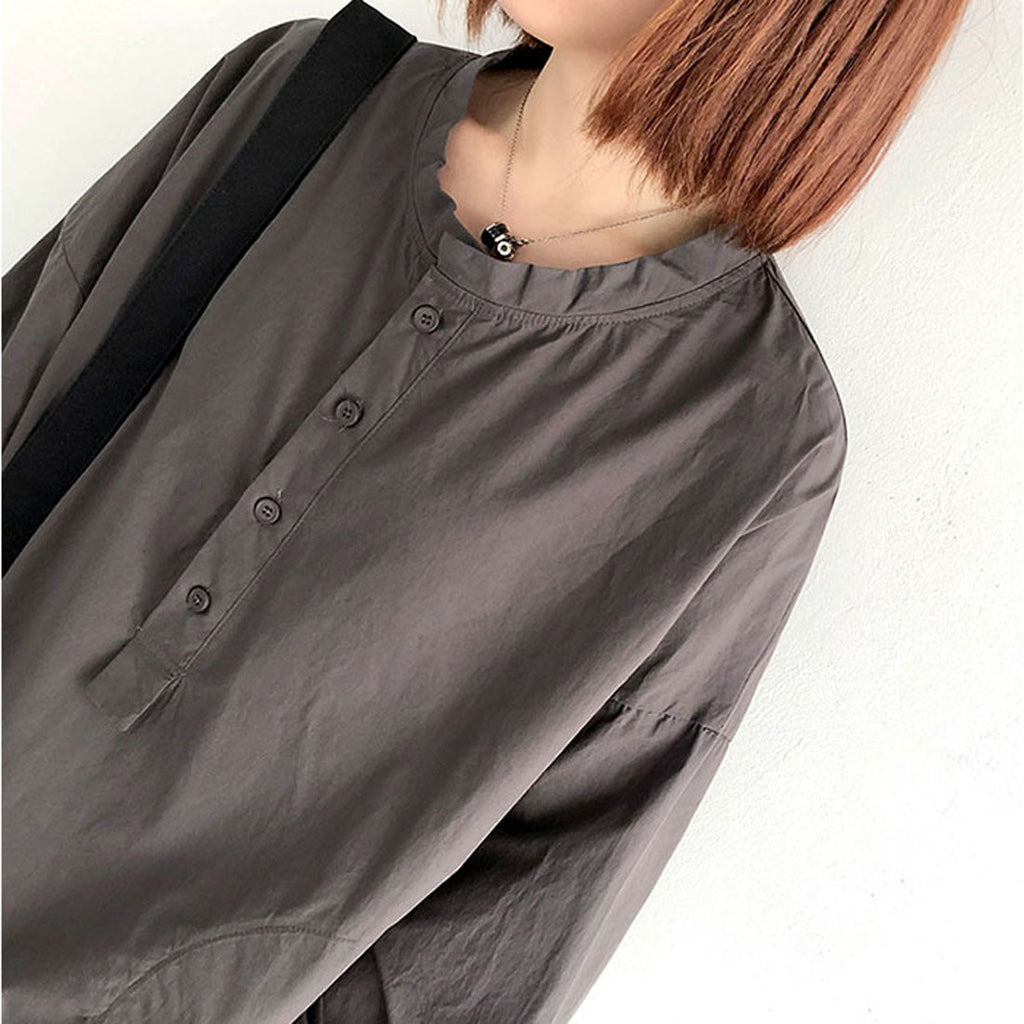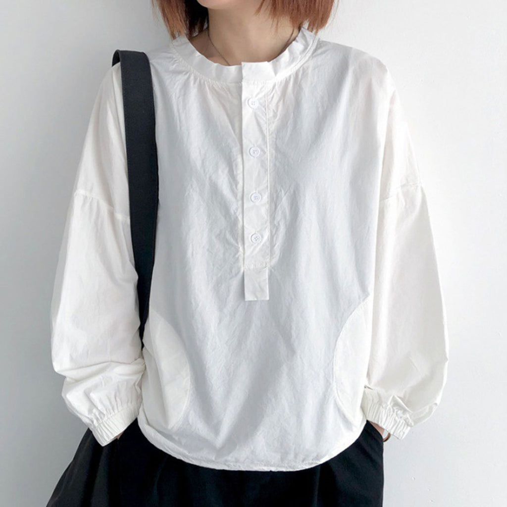 BACKYARD FAMILY cotton shirt Ladies long-sleeve blouse crew neck
