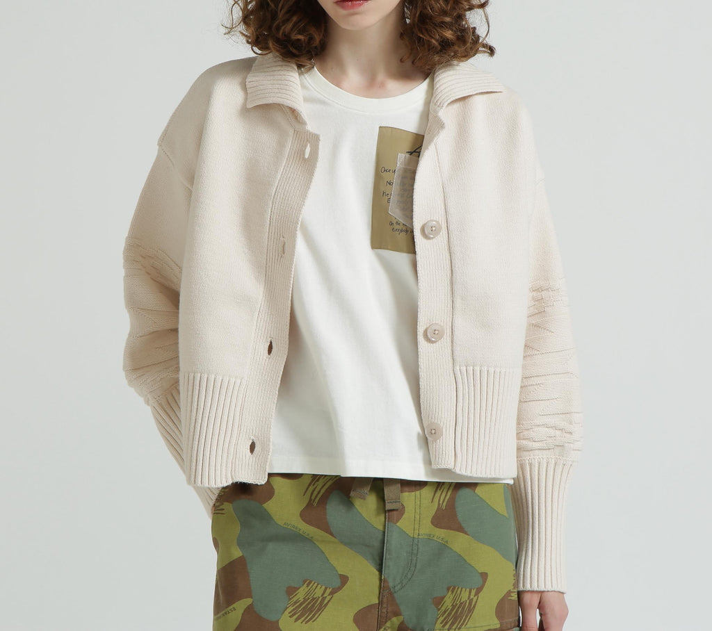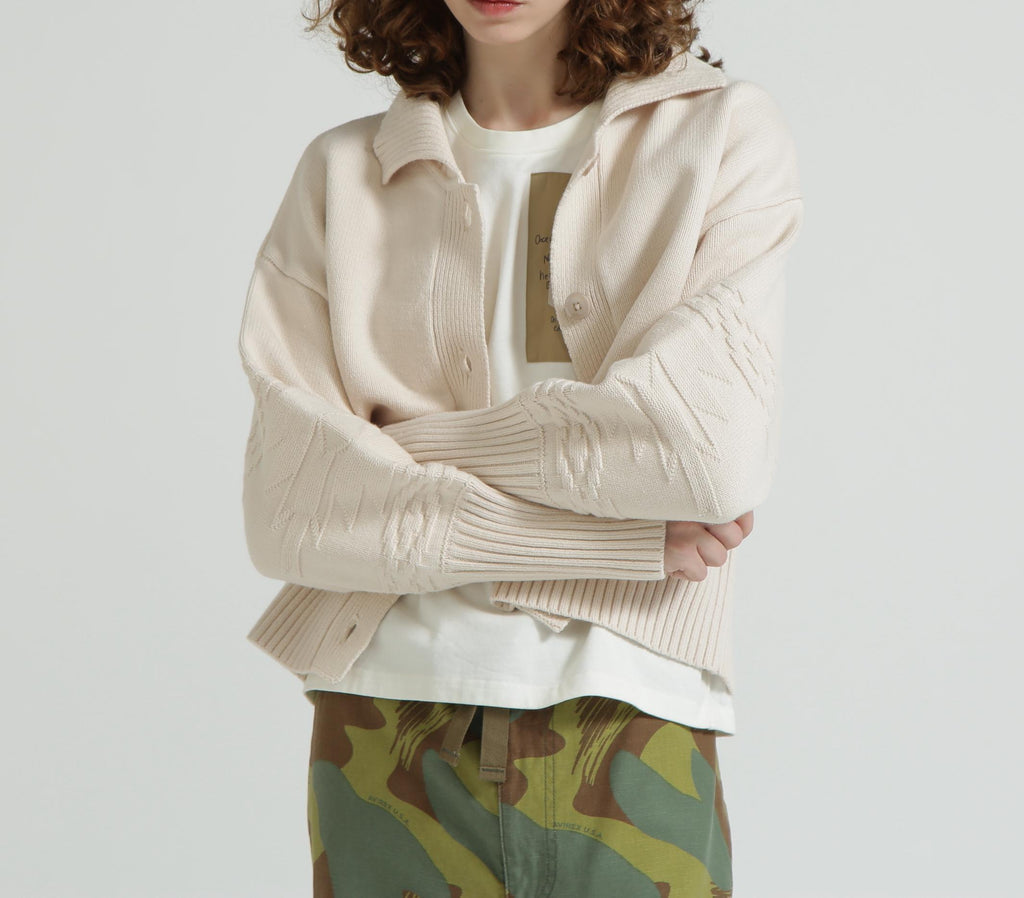 The pattern expressed through the knitting method of the sleeves is a key point.