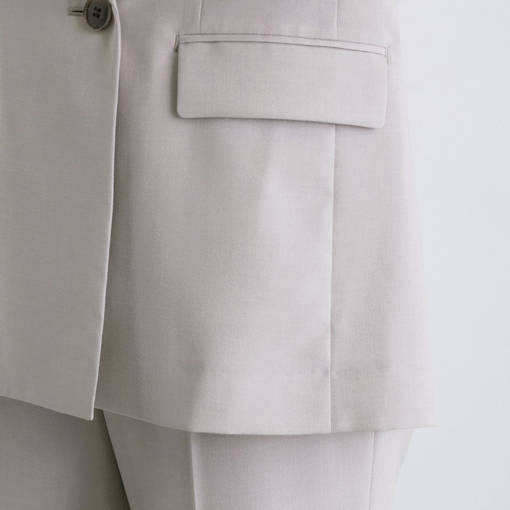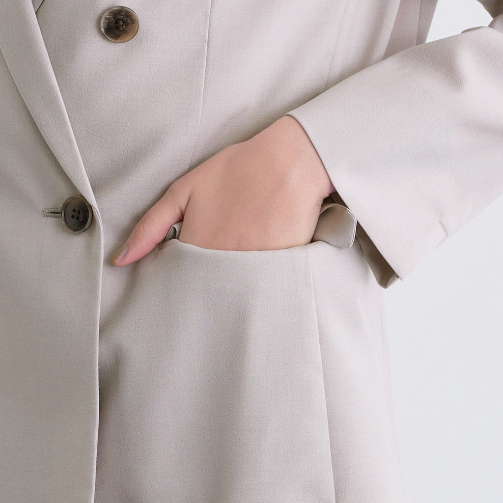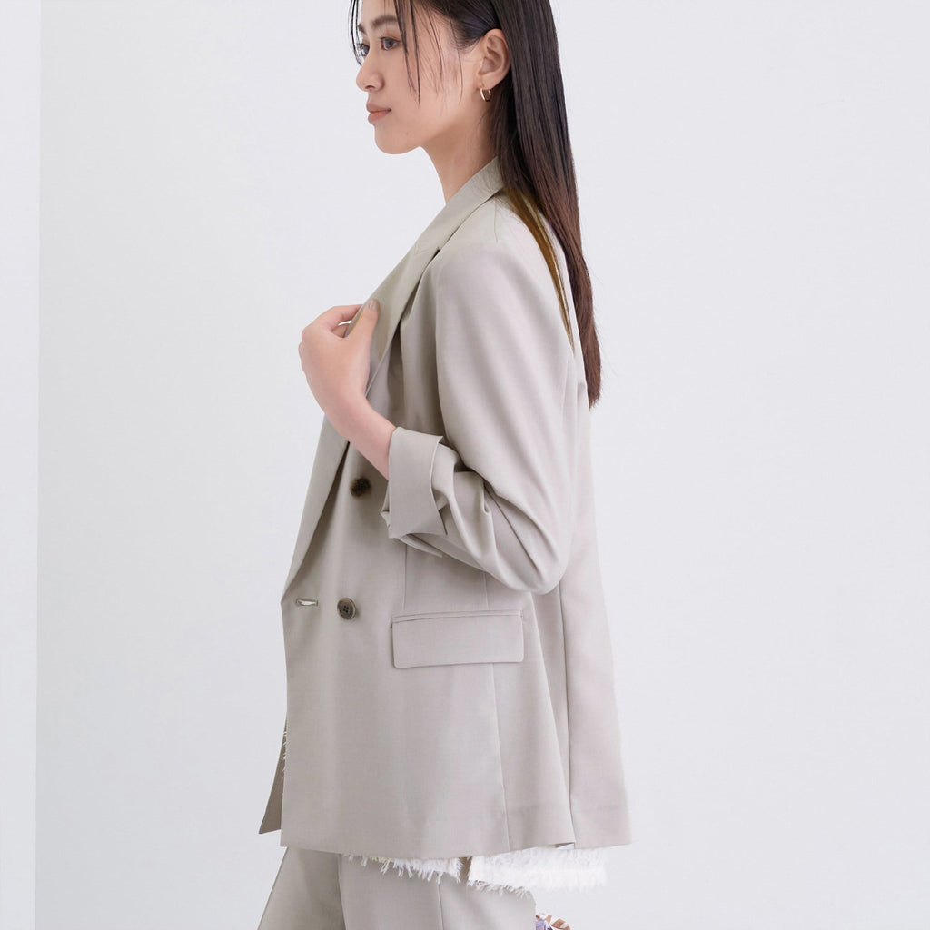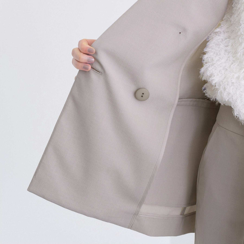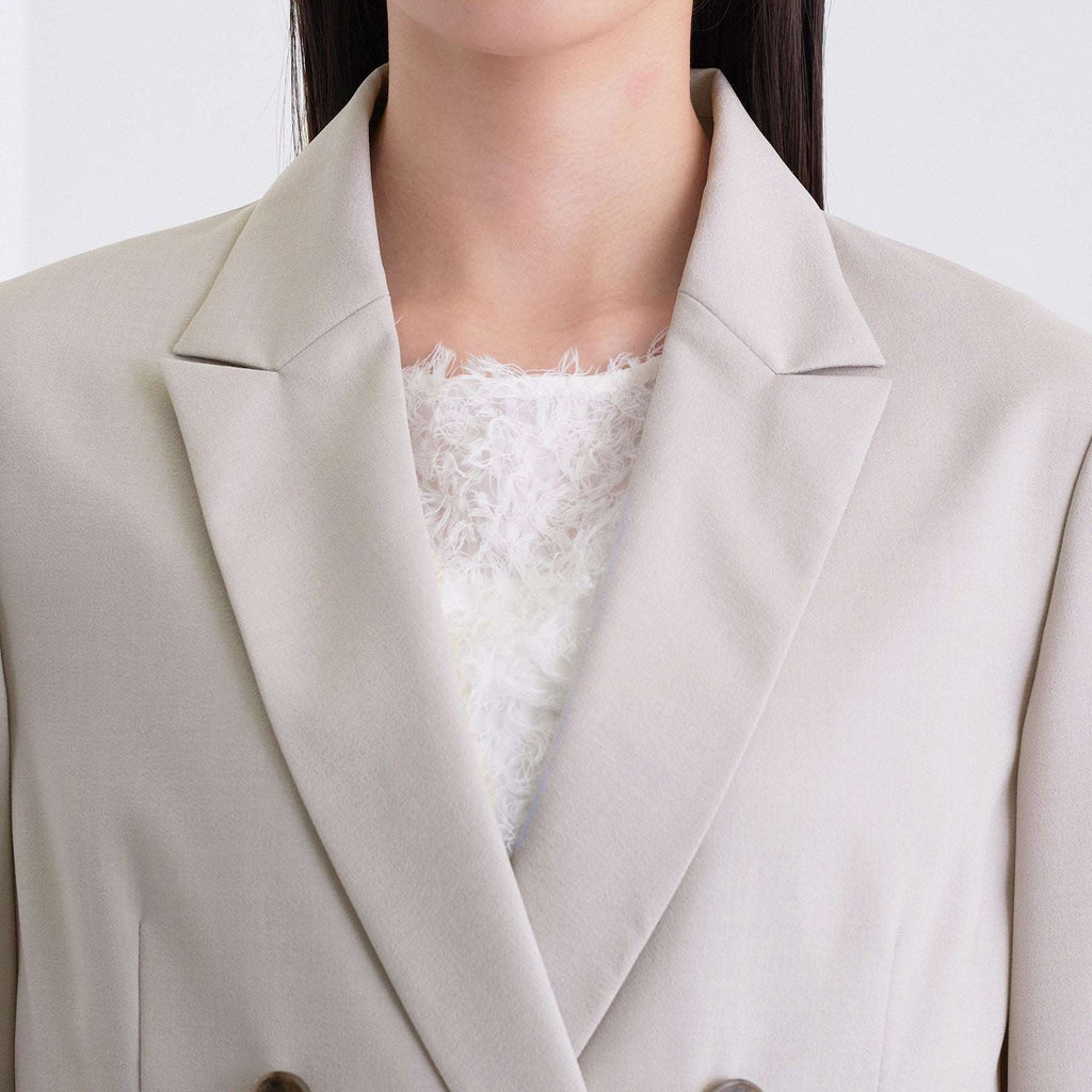 This double jacket is made from a lightweight, moderately firm material with a subtle sheer feel.