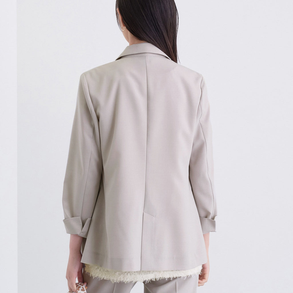 It has a polished look that is versatile enough for both work scenes and standalone jacket styles.