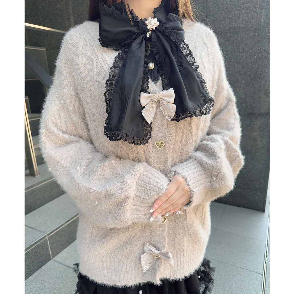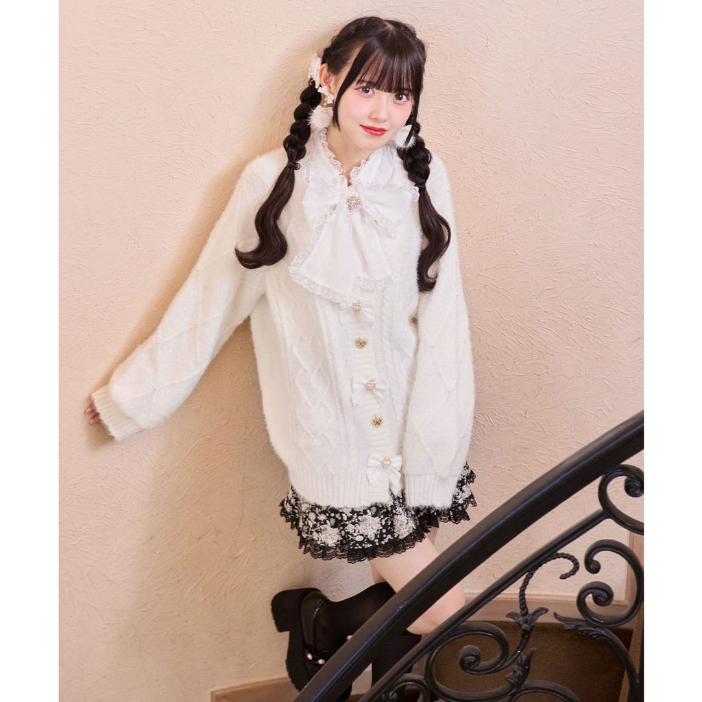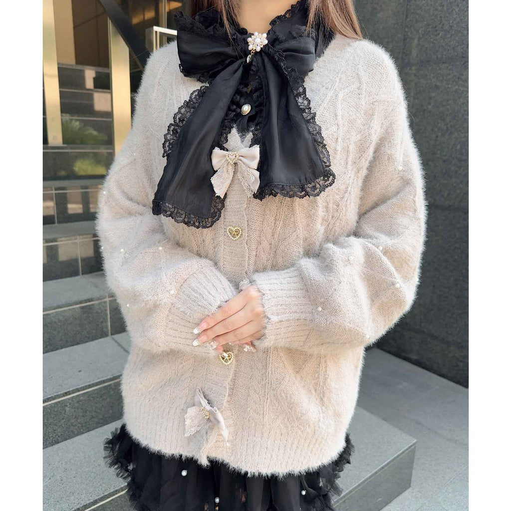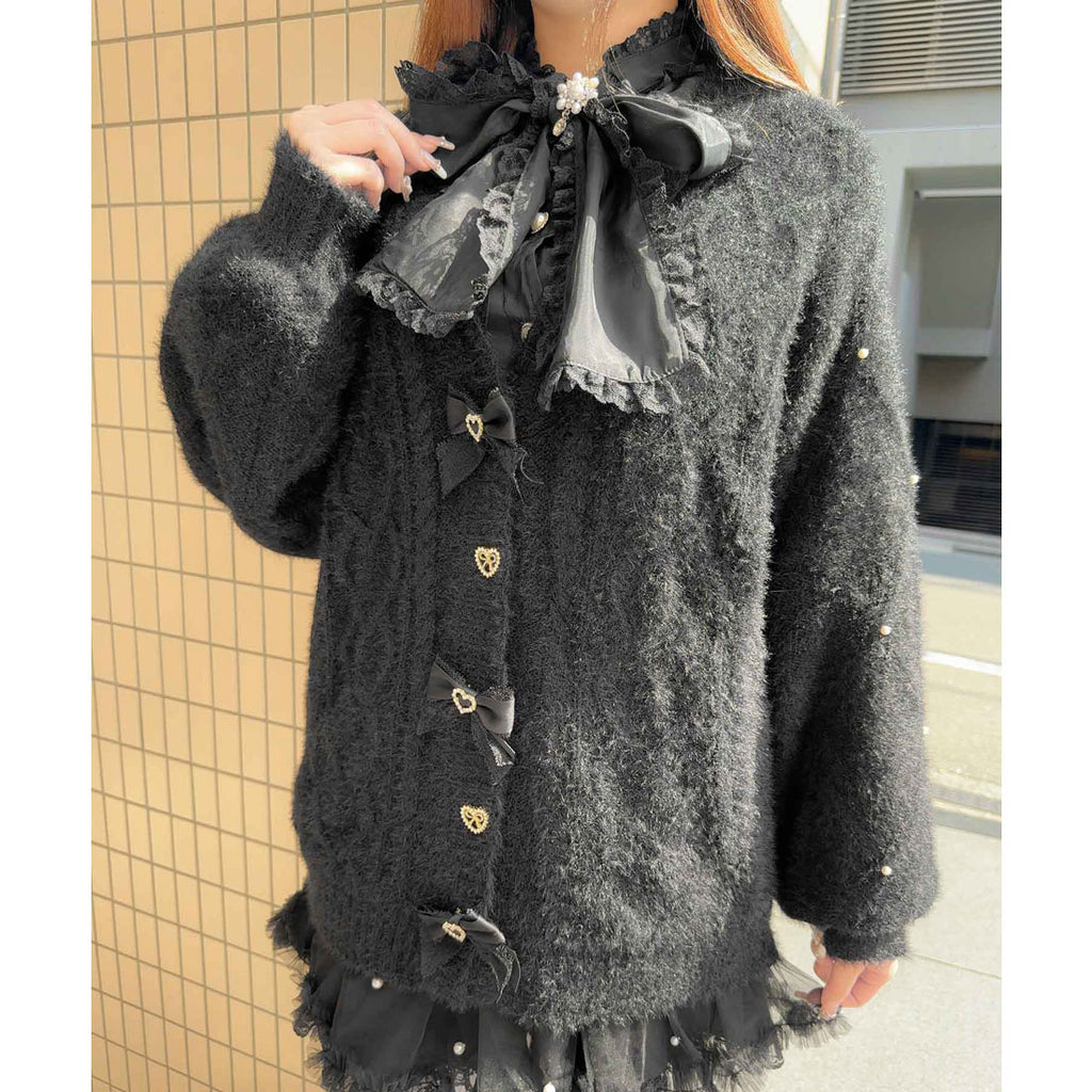 A piece that fulfills your "princess feeling" from every angle with girl-like ribbon details and pearl decorations.