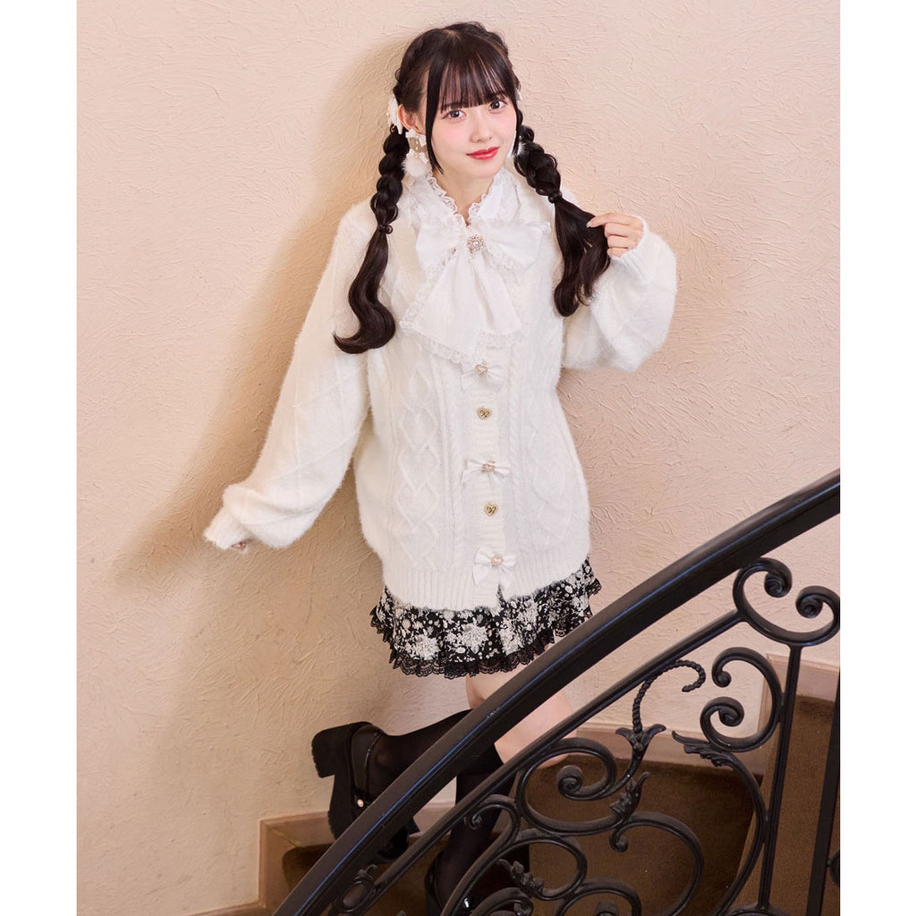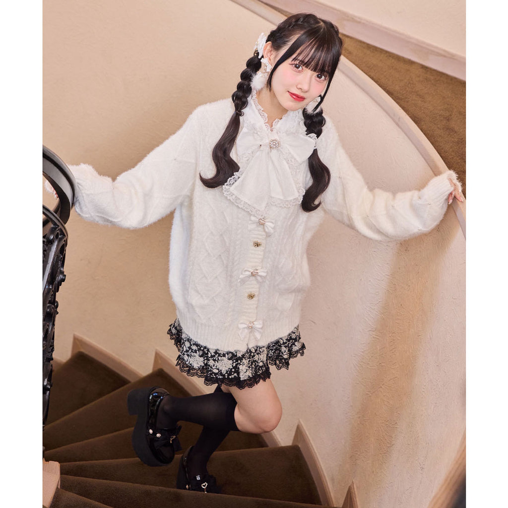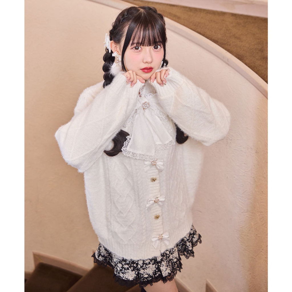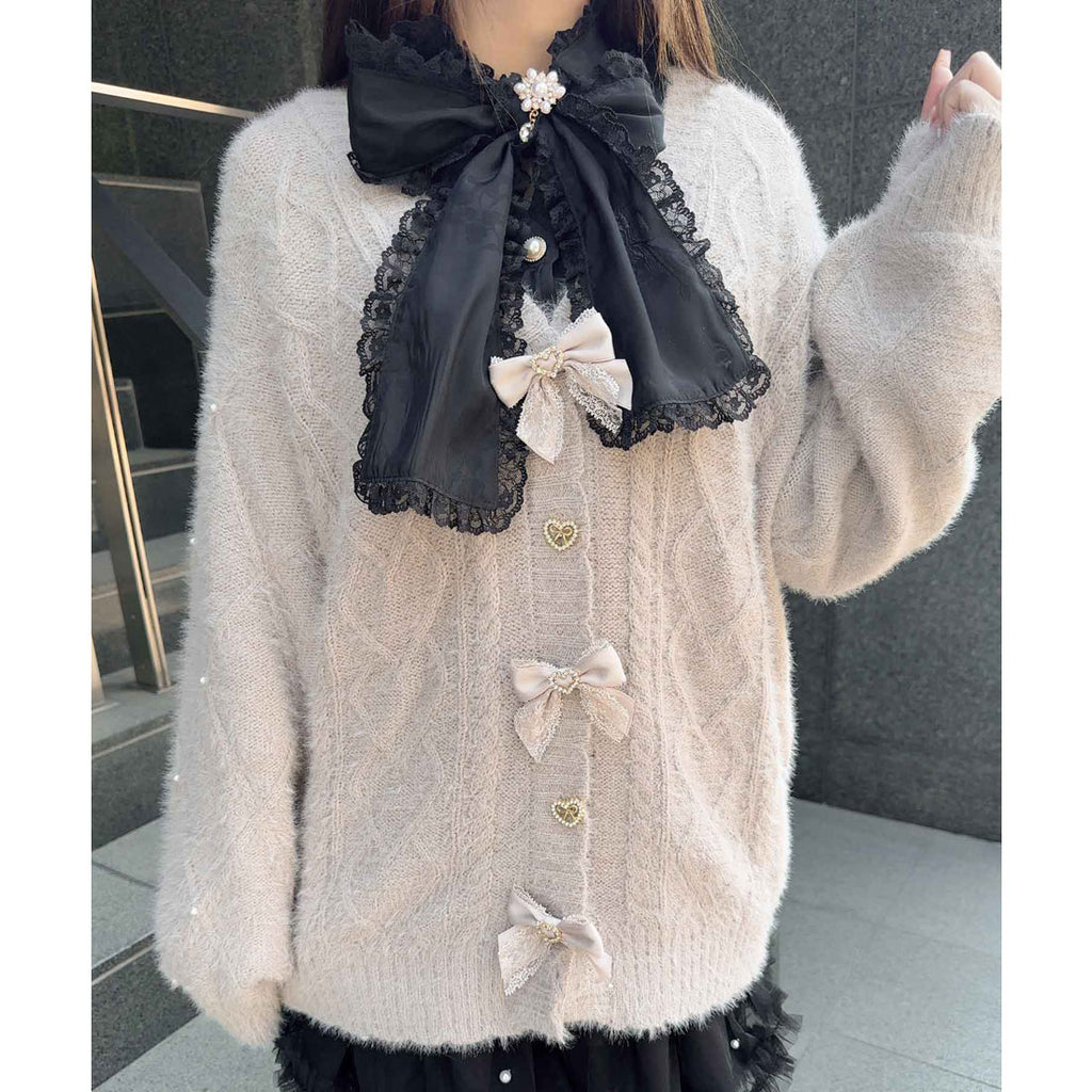 A piece that fulfills your "princess feeling" from every angle with girl-like ribbon details and pearl decorations.