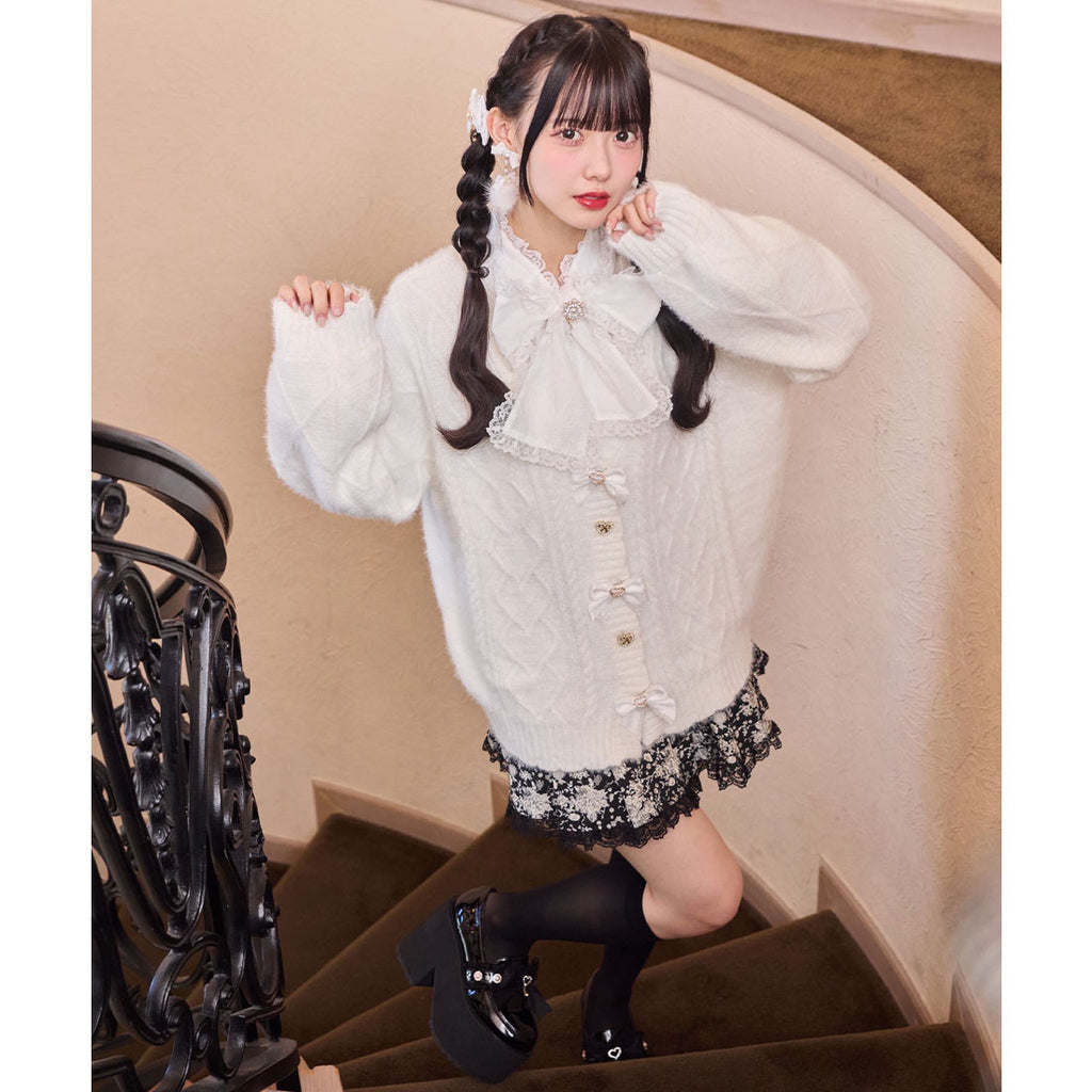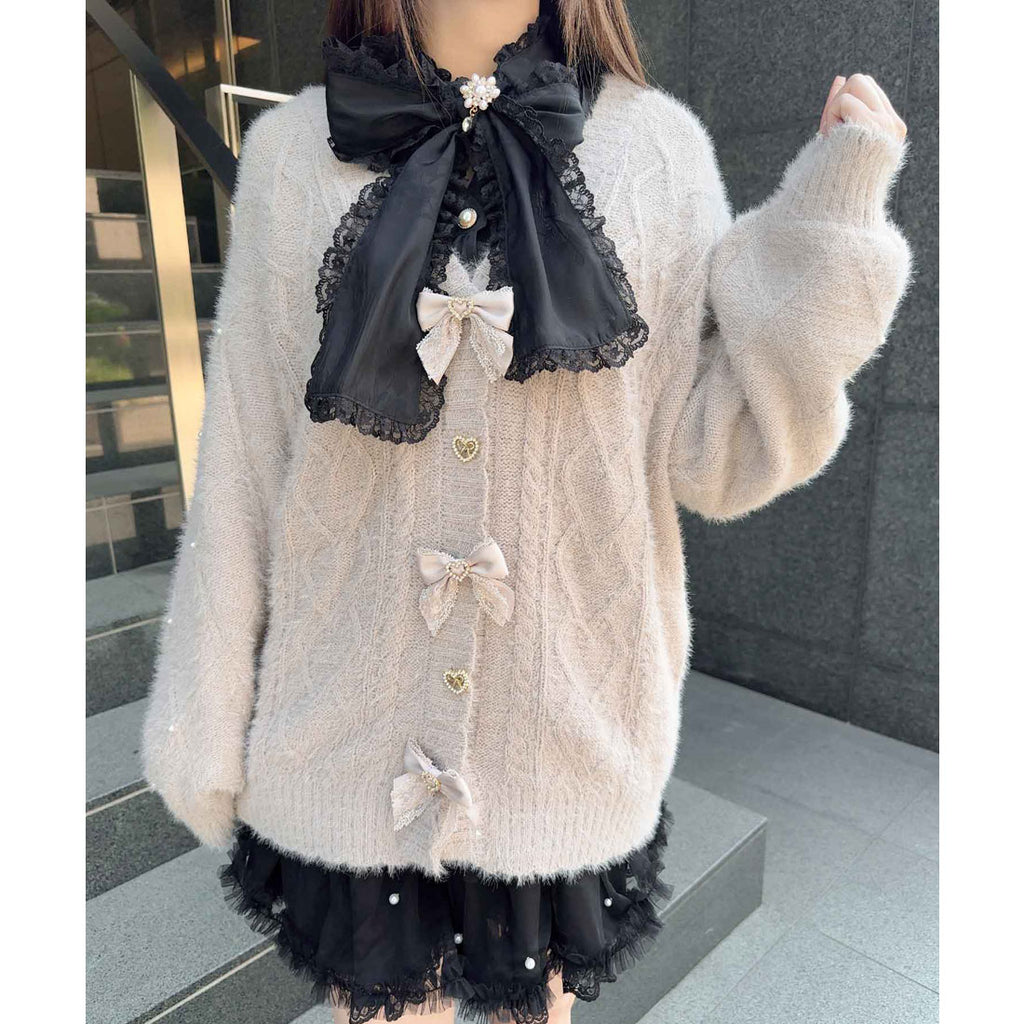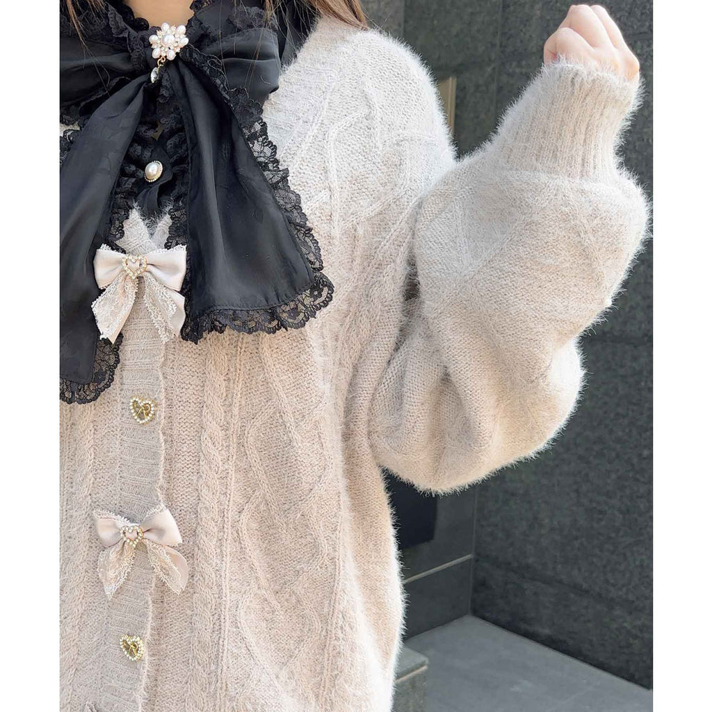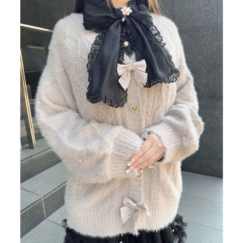A piece that fulfills your "princess feeling" from every angle with girl-like ribbon details and pearl decorations.