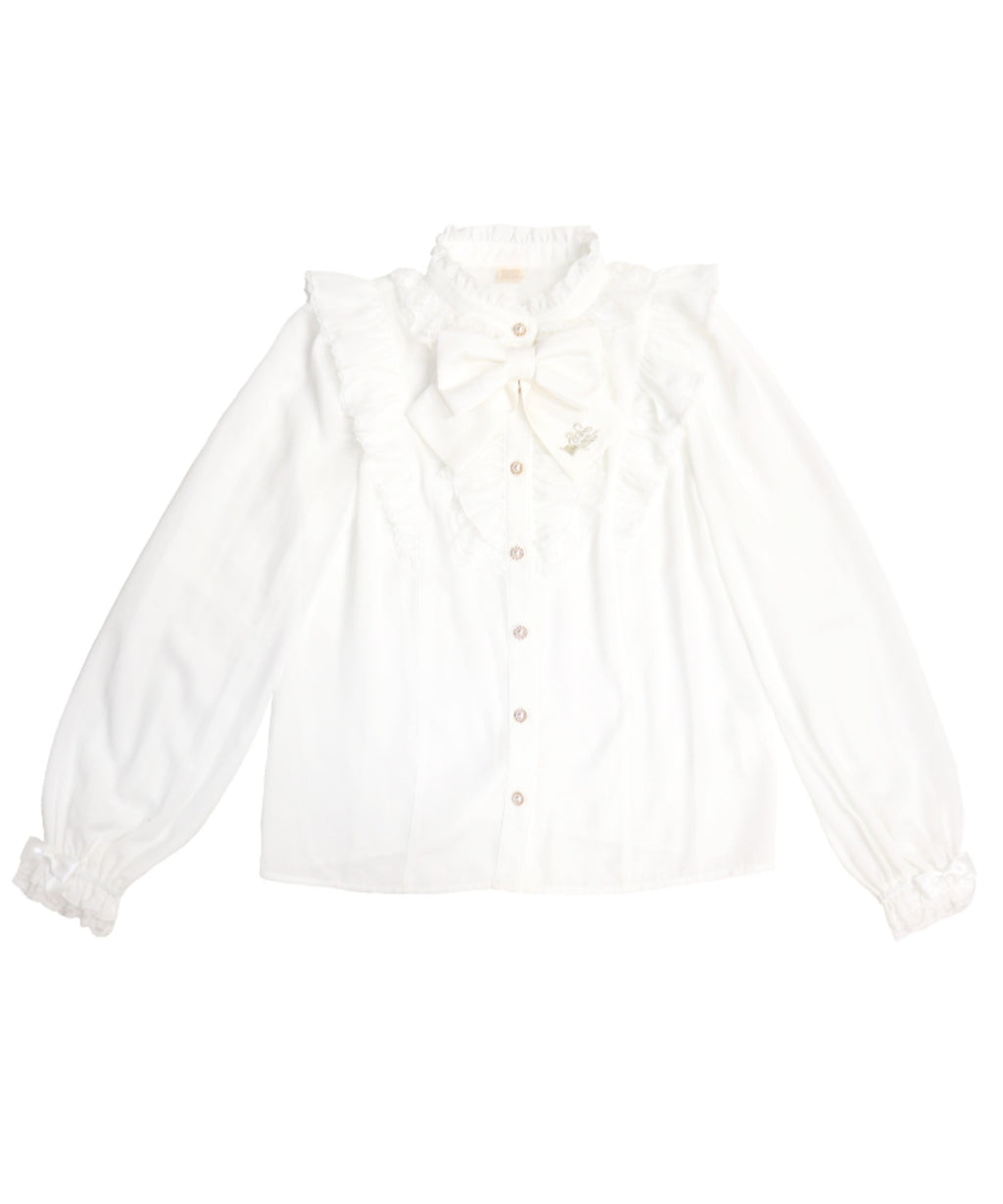 The abundant lace × frills beautifully accentuate the styling! The gold SH embroidery on the ribbon tips and the classical frill stand collar give it a girly design that is very Sea Honey☆