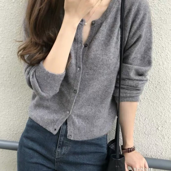 Lily of Valley basic short knit cardigan long sleeve top elegant refined neat casual
