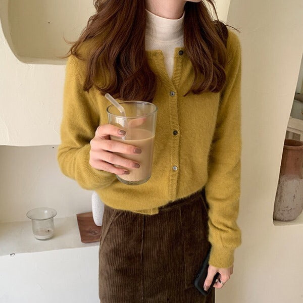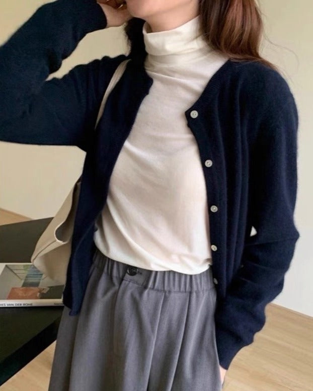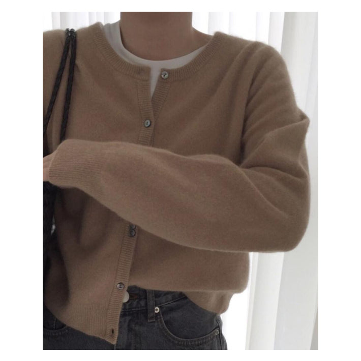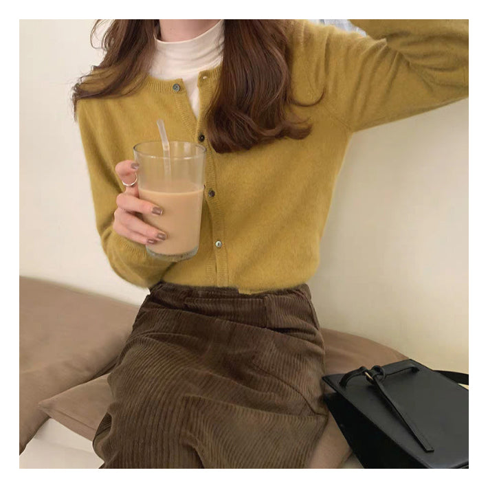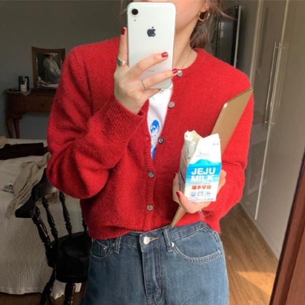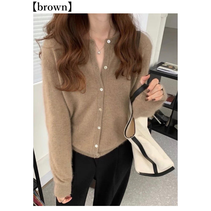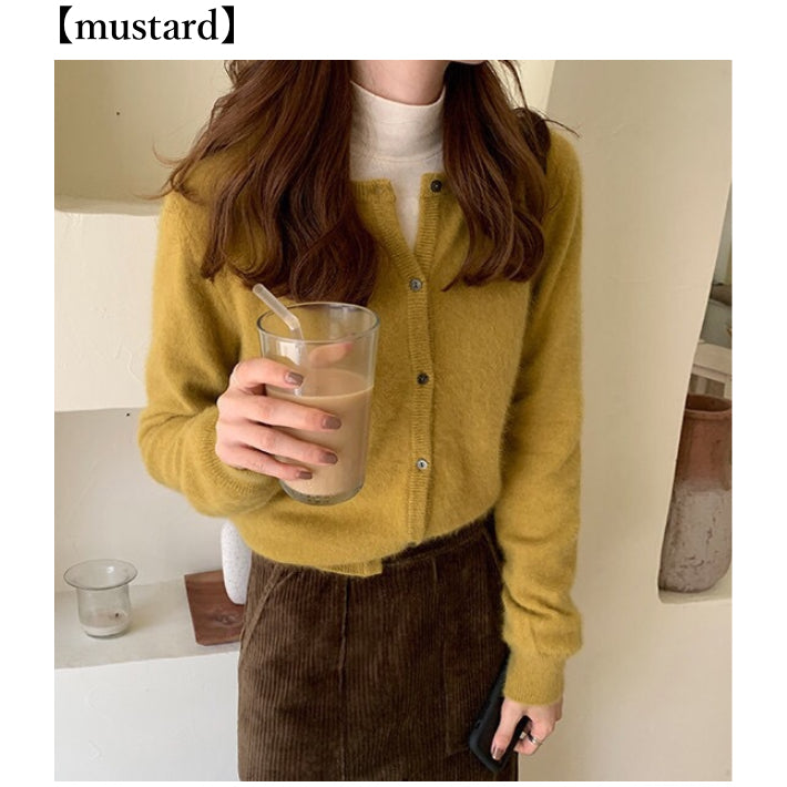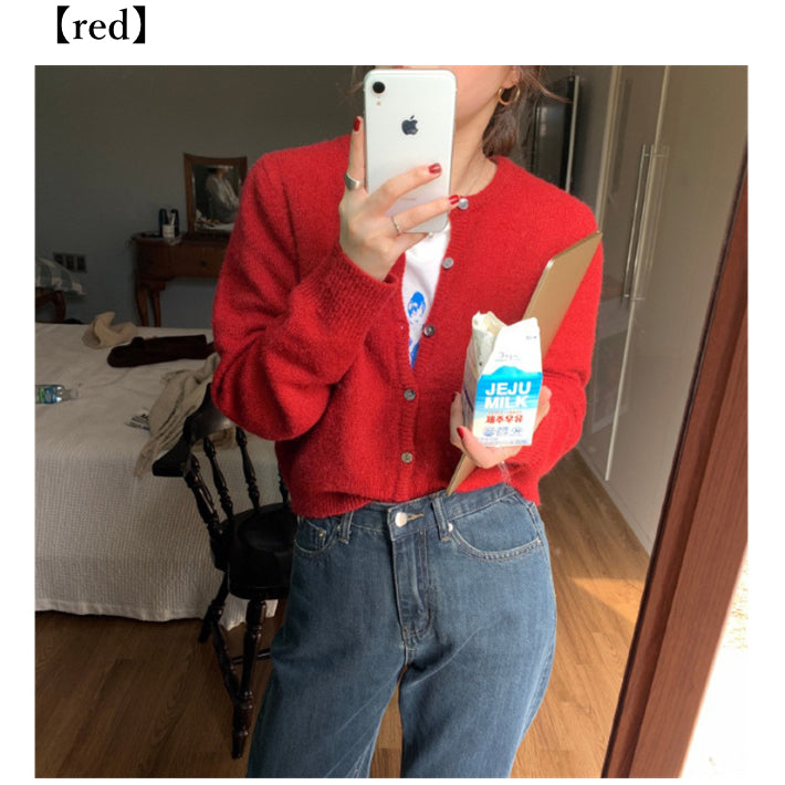・A simple design that is versatile for styling, a basic short knit cardigan.
