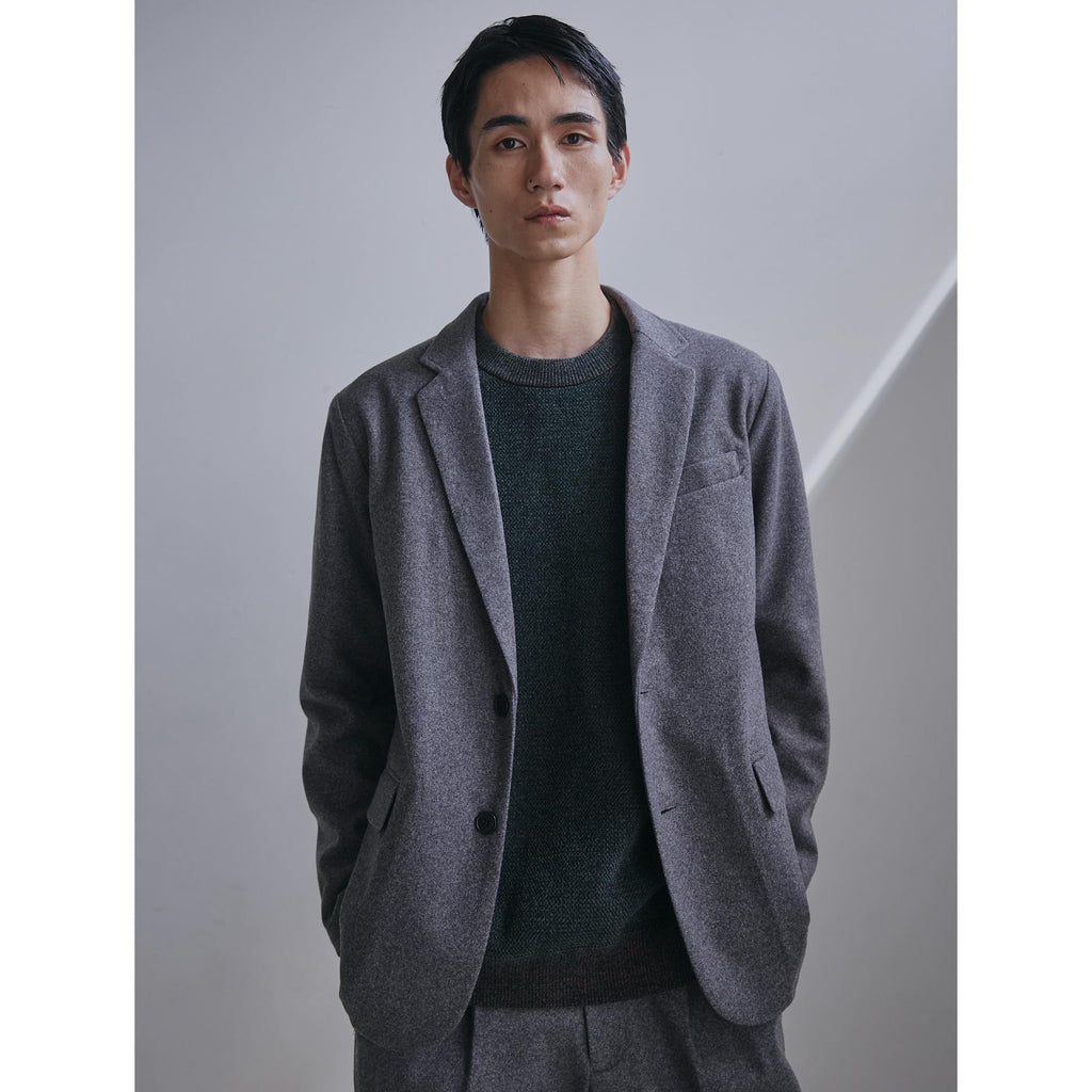 A jacket that combines an elegant appearance like wool with the lightness and stretch unique to jersey material.