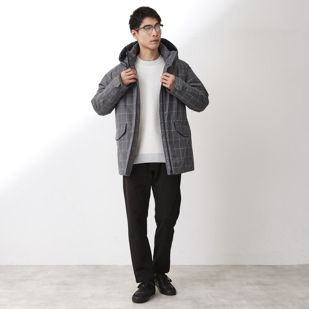 Outer Materialは上品な mix調のチェック柄と無地の blackをラインナップし、シーンに応じた着こなしが可能です。